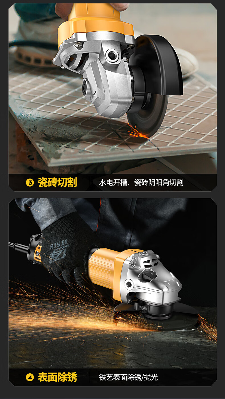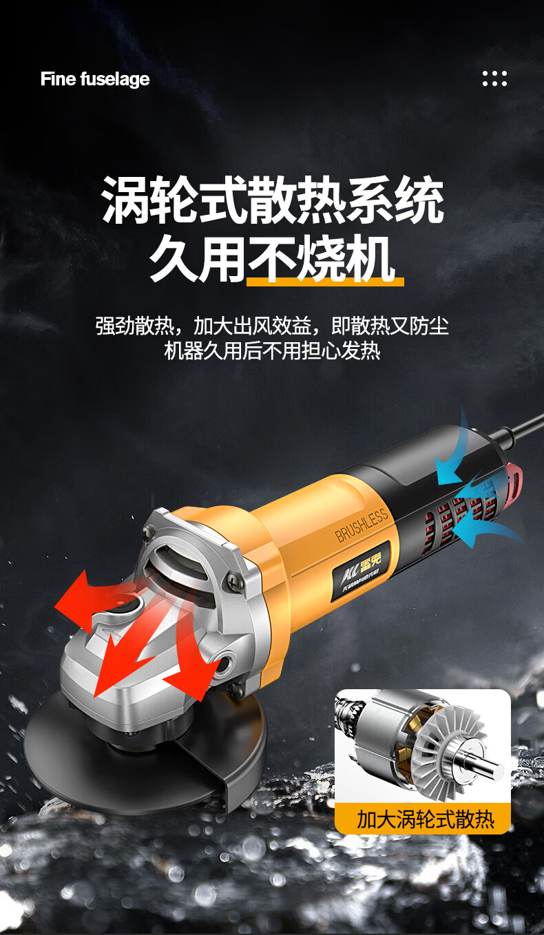 Lake brushless angle grinder 220V cutting machine household hand polishing machine polishing machine hand grinding wheel copper brushless motor 830W side switch standard