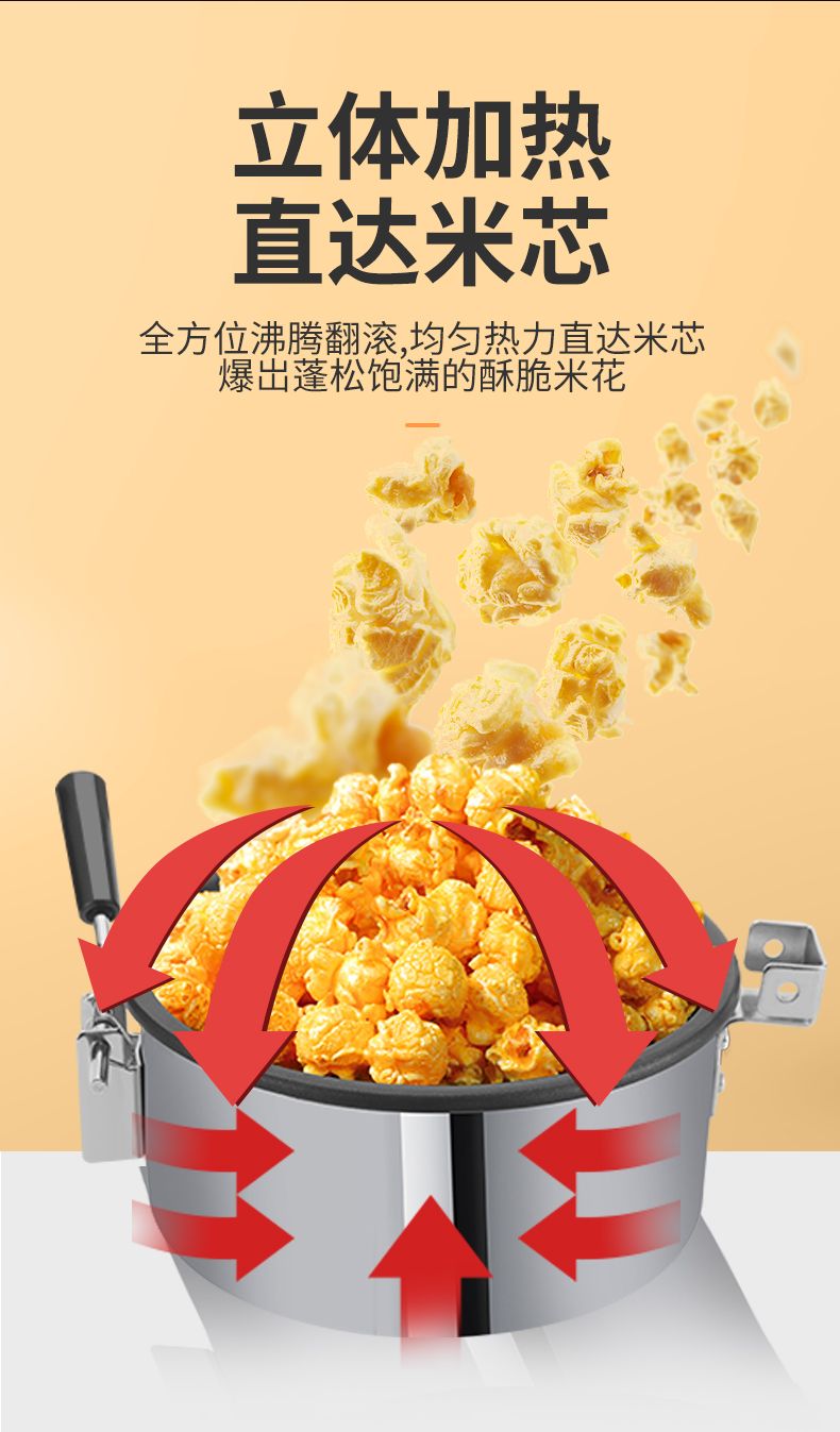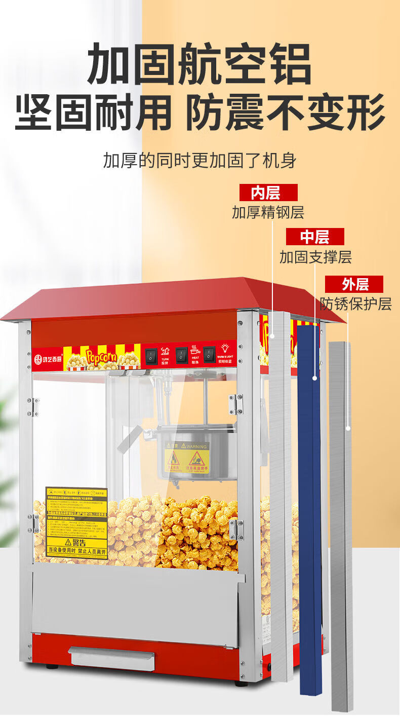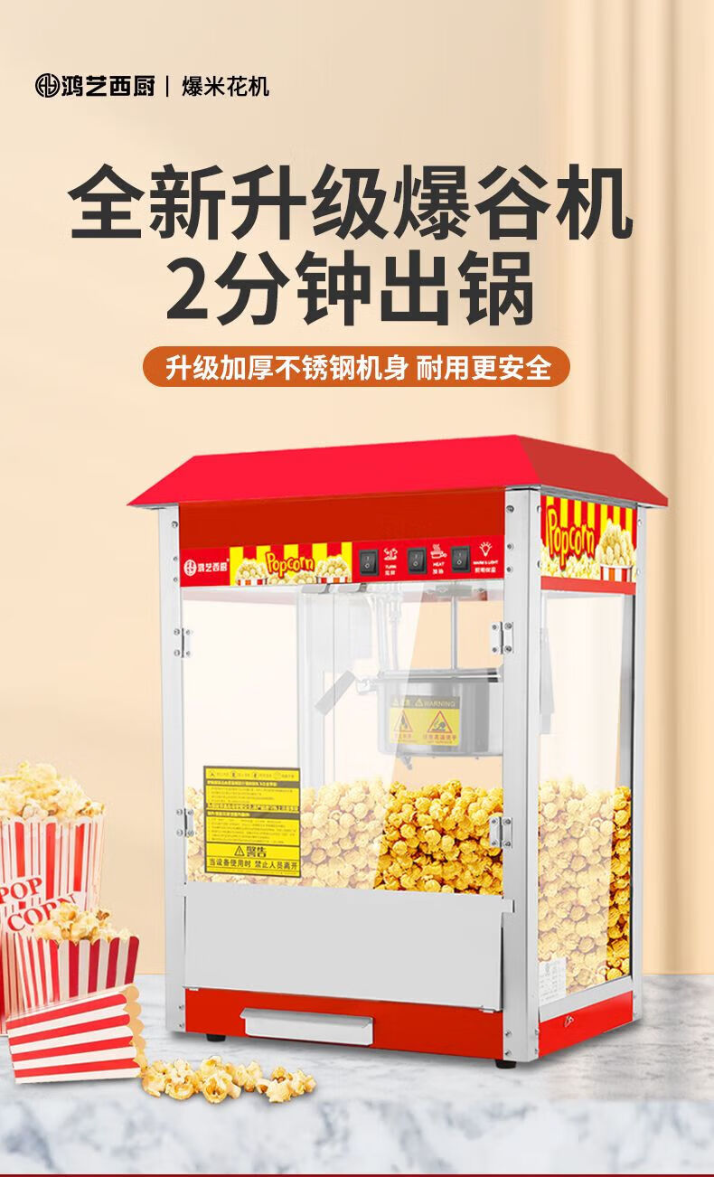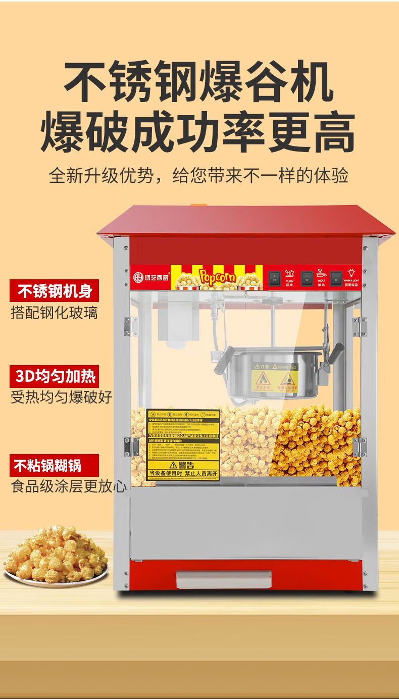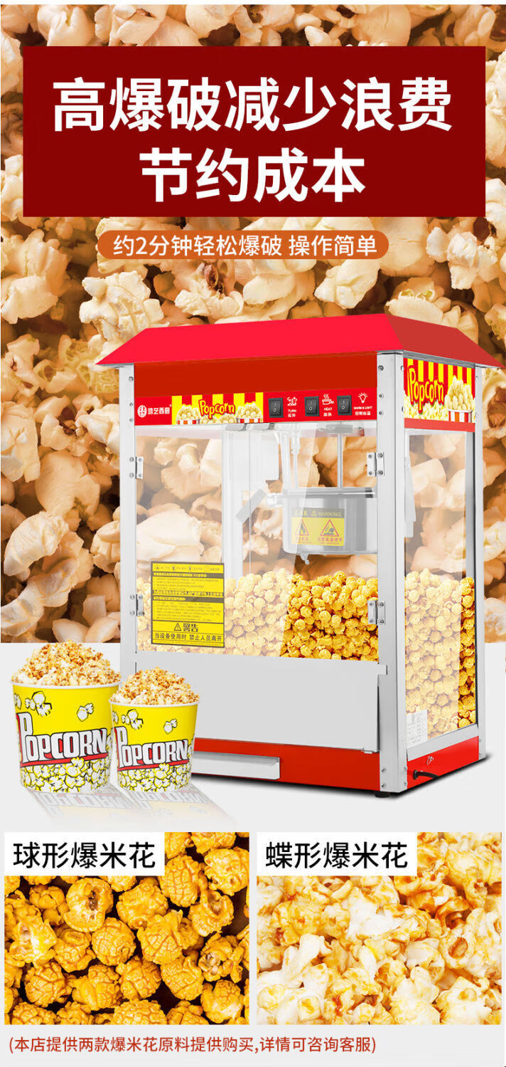 Hongyi Western Kitchen Hongyi Popcorn Machine Commercial Fully Automatic Stall Home Popcorn Machine New Fried Corn Pot Popcorn Machine Red Crown Flat Top Popcorn Machine + Butterfly Three