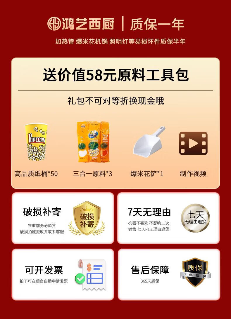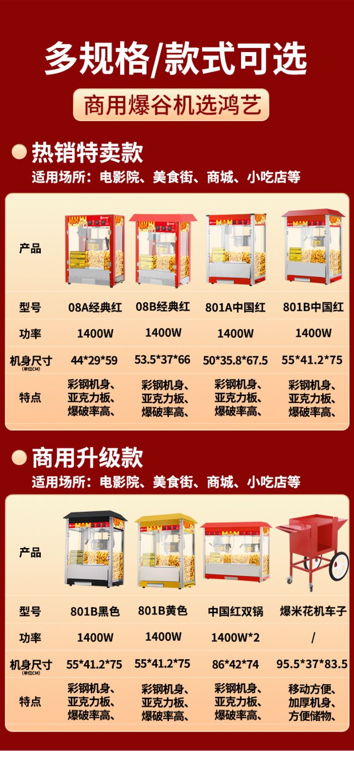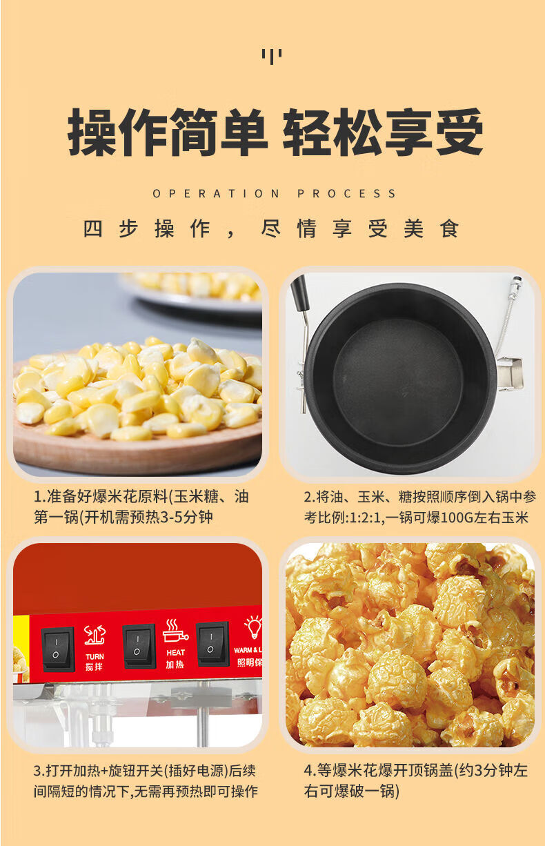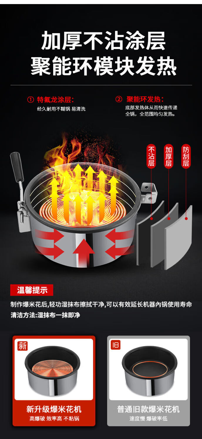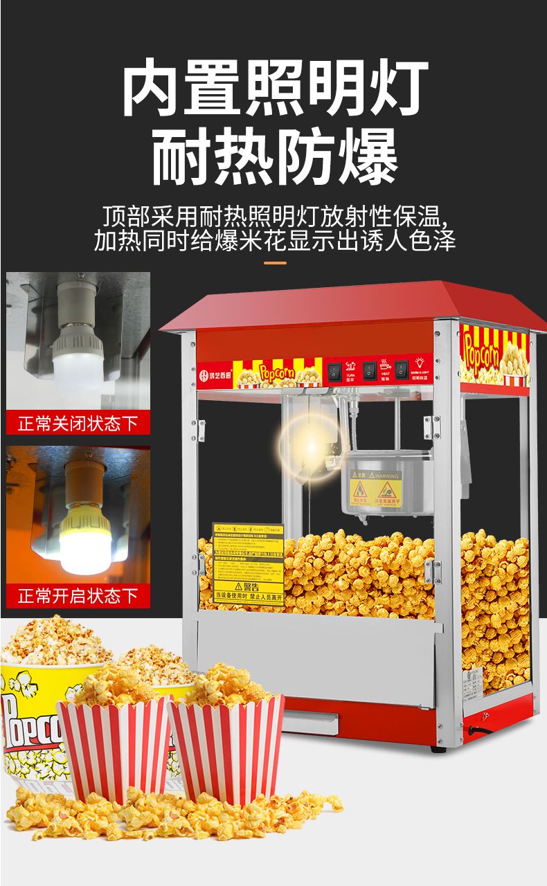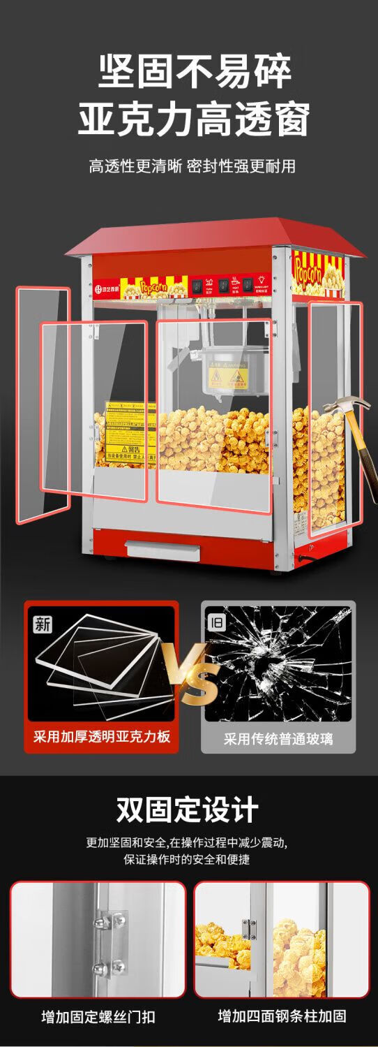 Hongyi Western Kitchen Hongyi Popcorn Machine Commercial Fully Automatic Stall Home Popcorn Machine New Fried Corn Pot Popcorn Machine Red Crown Flat Top Popcorn Machine + Butterfly Three
