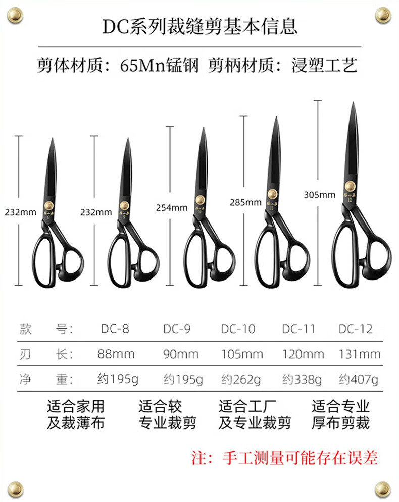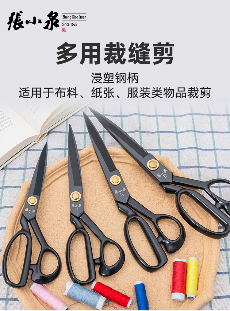 Zhang Xiaoquan Tailor Scissors Large Sewing Scissors Industrial Cloth Cutting Special Cutting Knife Household Handmade Clothing Scissors DC-9 Inch Black Blade