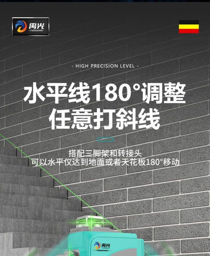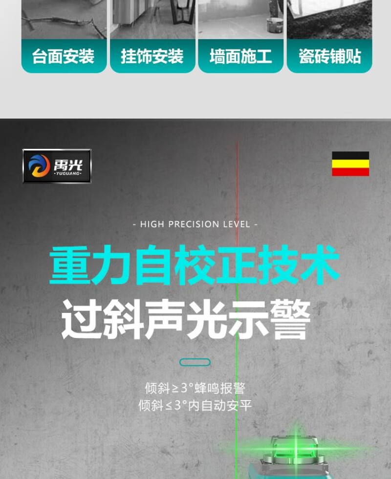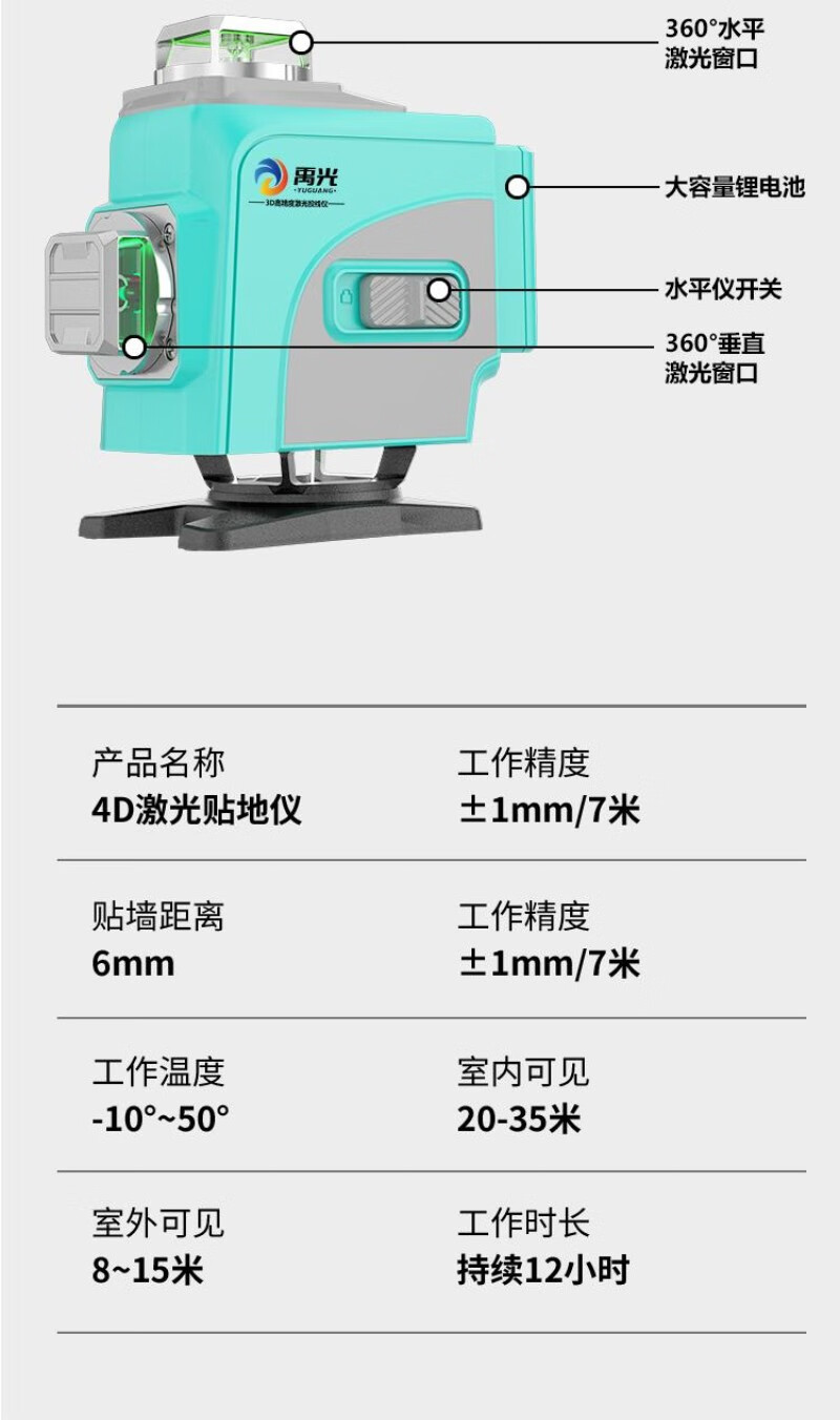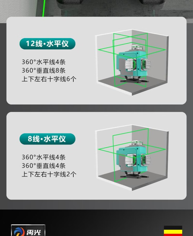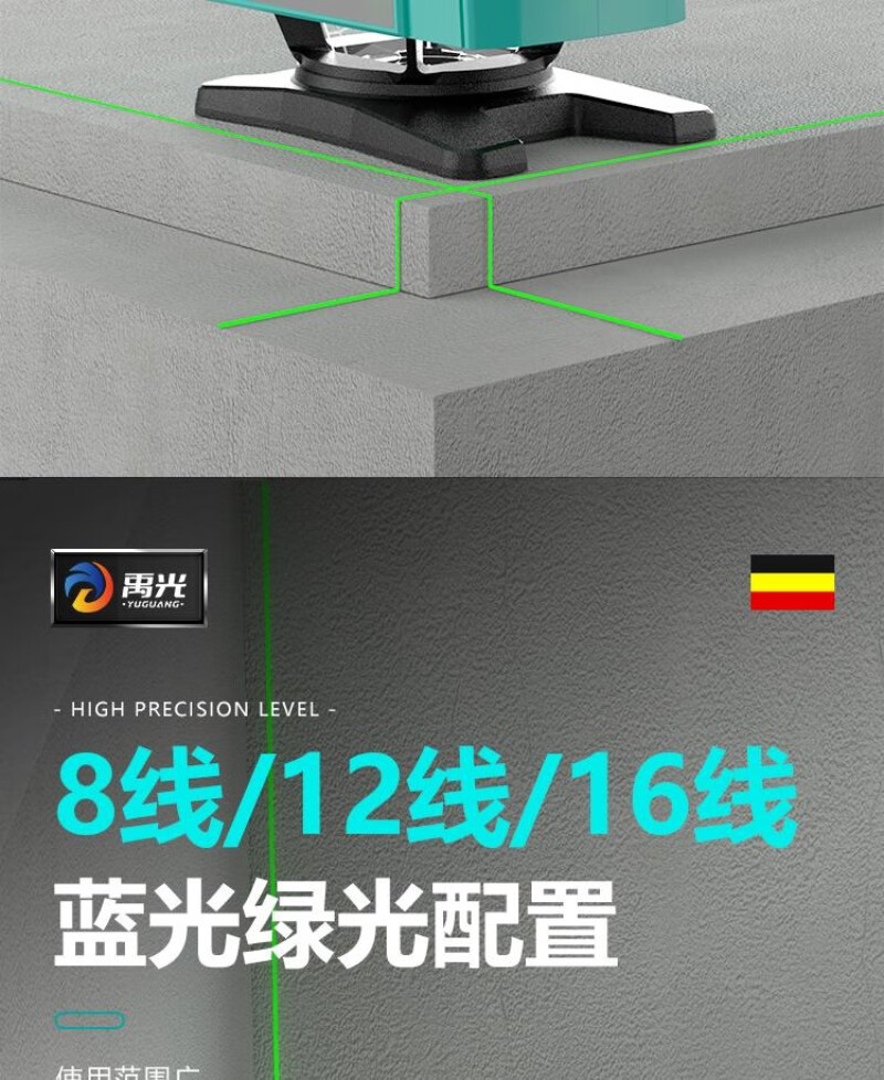 Yuguang outdoor ultra-bright imported green light 12-line horizontal infrared laser level for mud and woodworking upper level 12-line ultra-bright green light - standard configuration