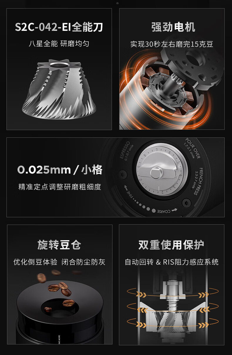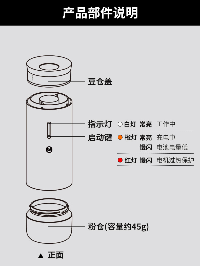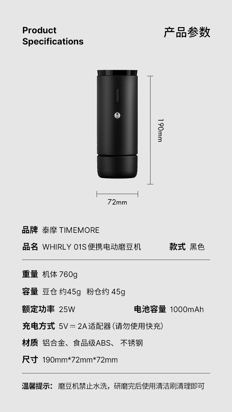 Taimo Small Tornado Portable Electric Coffee Grinder Compatible with Hand Brewed Italian Outdoor Camping Coffee Machine Grinder Small Tornado 01S Portable Electric Grinder | Black