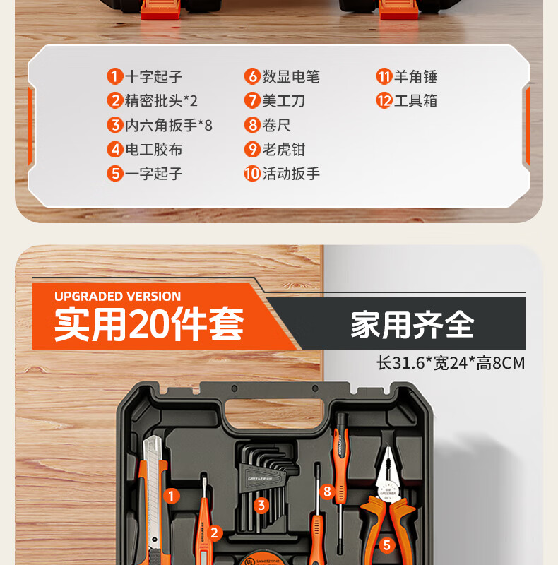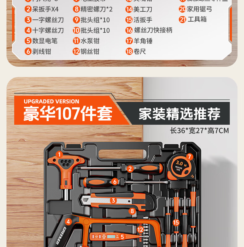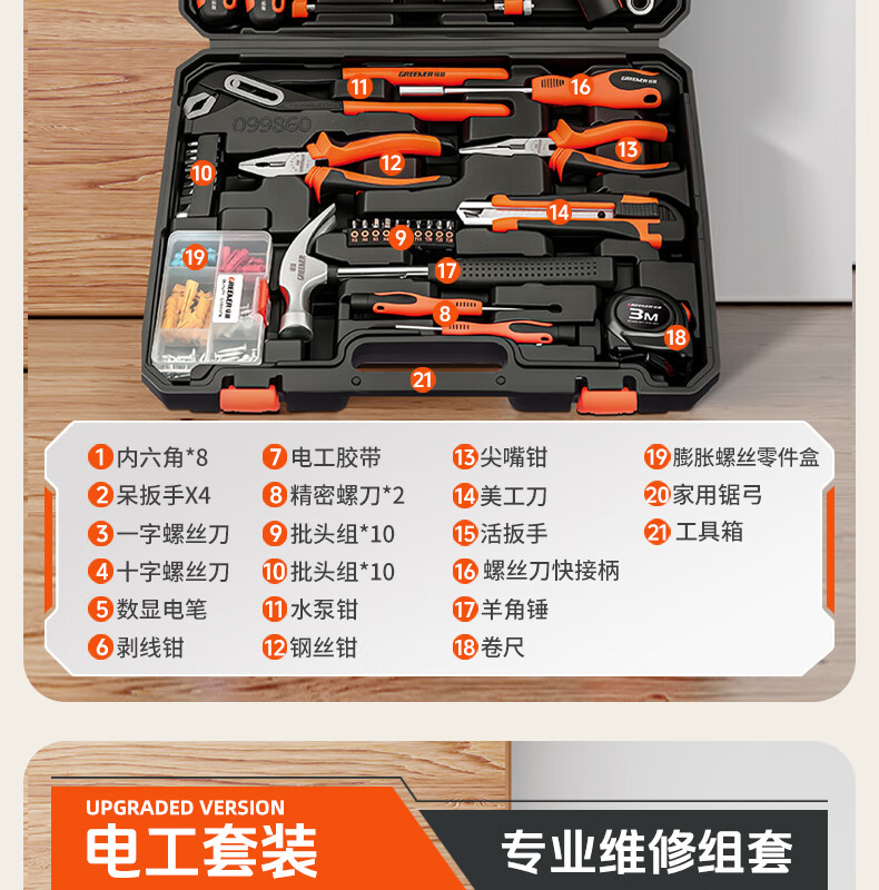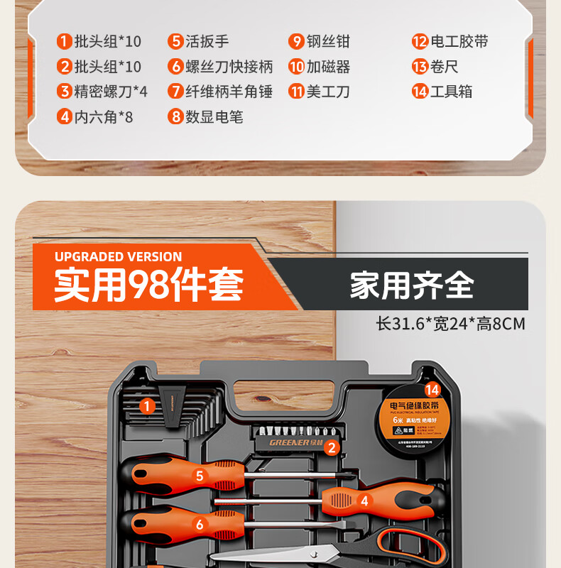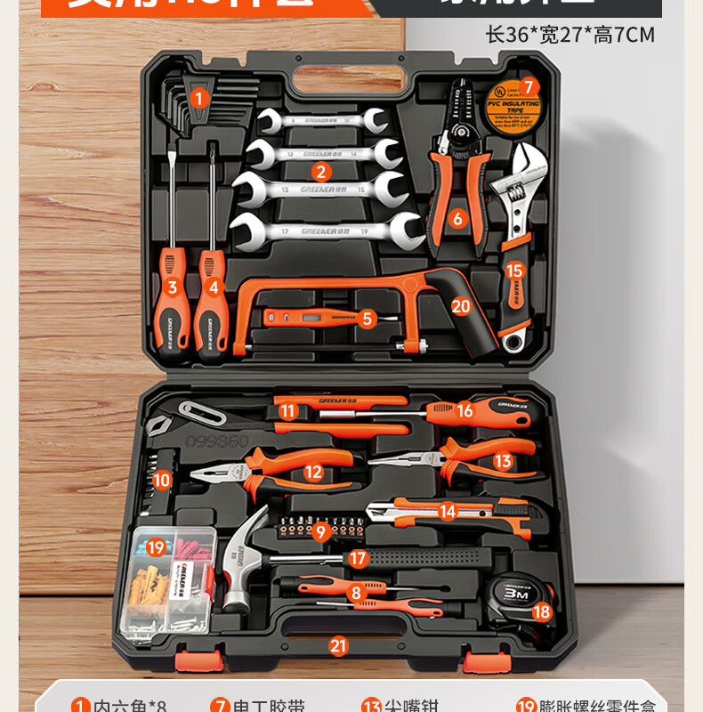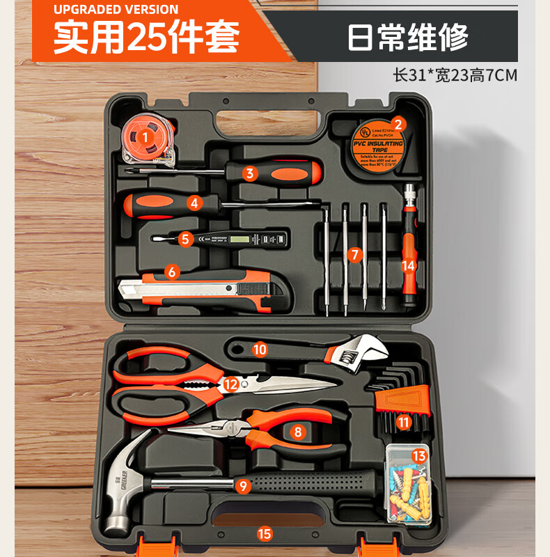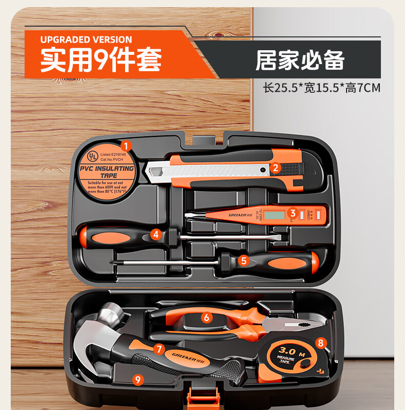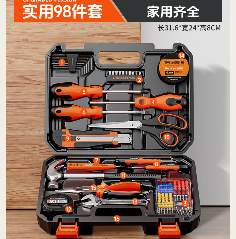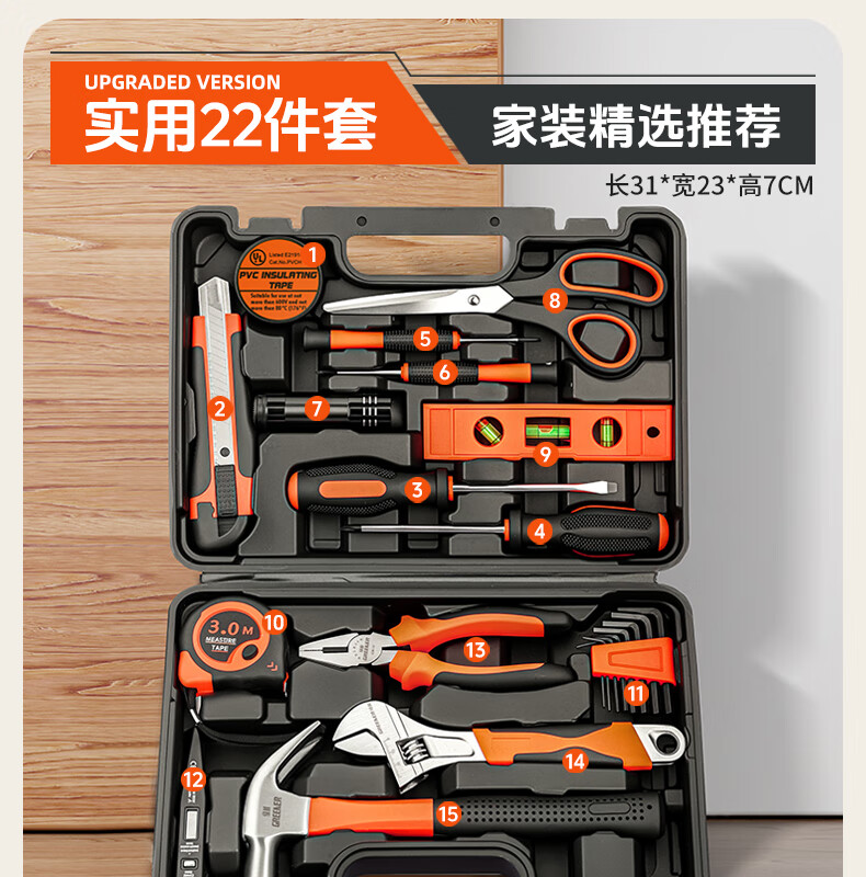Green Forest Household Tool Set Multifunctional Toolbox Electrician Repair Combination Hardware Complete Family Complete Set Practical 22-piece Set Home Decoration Selection