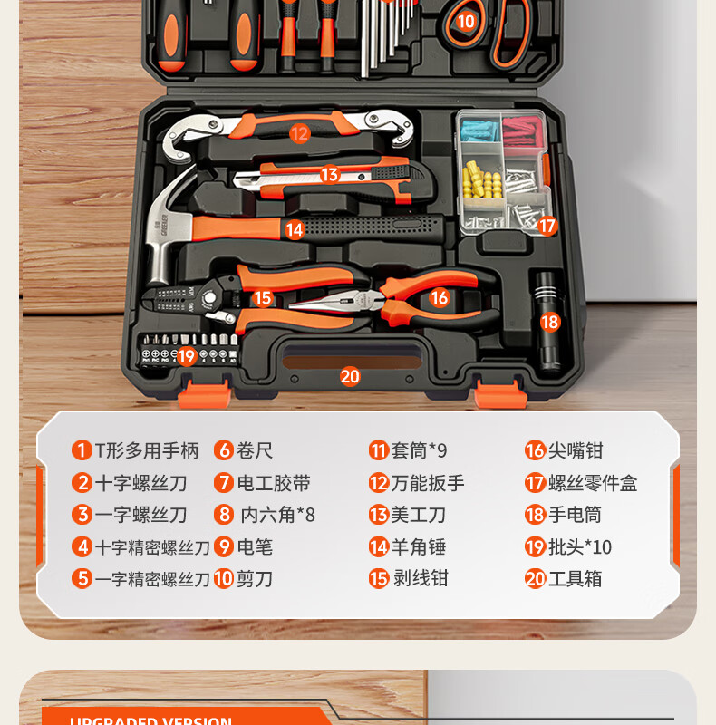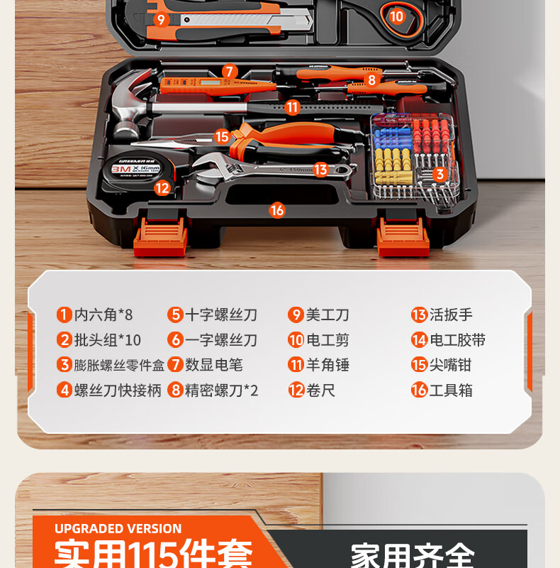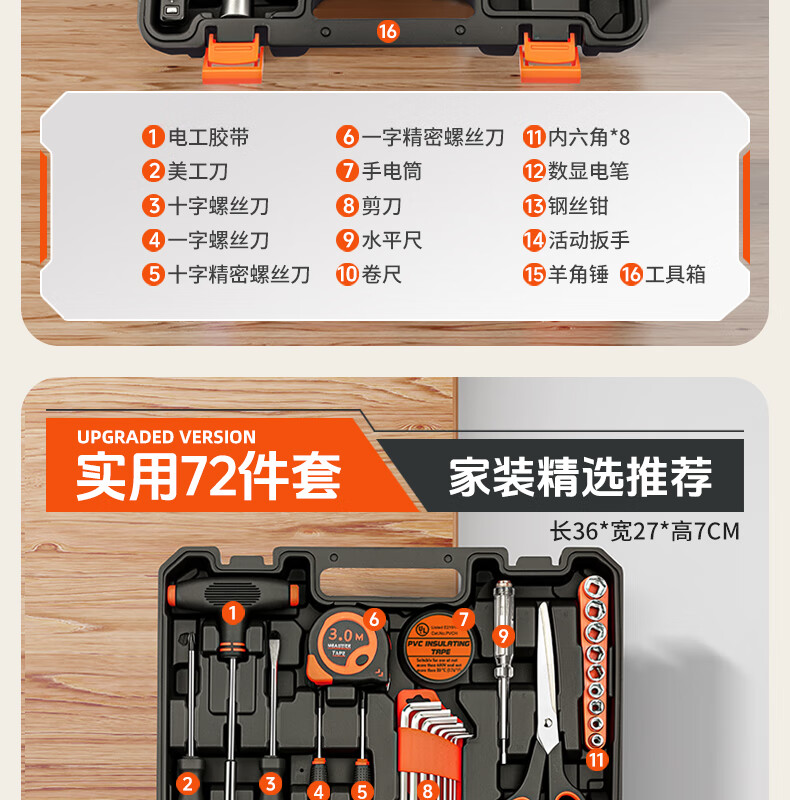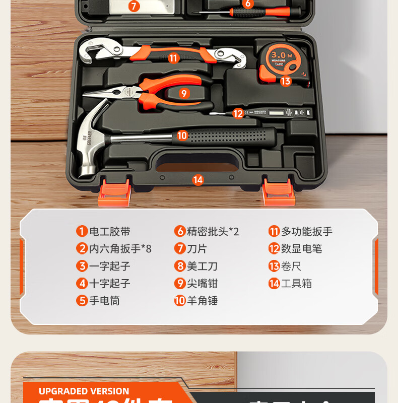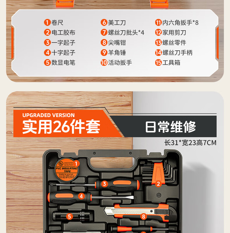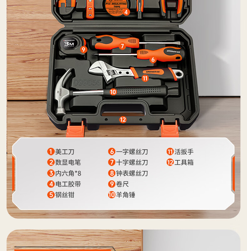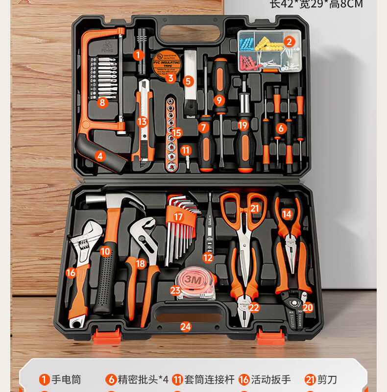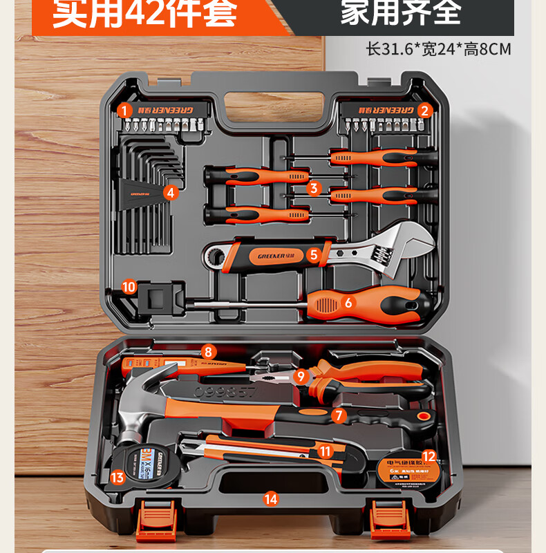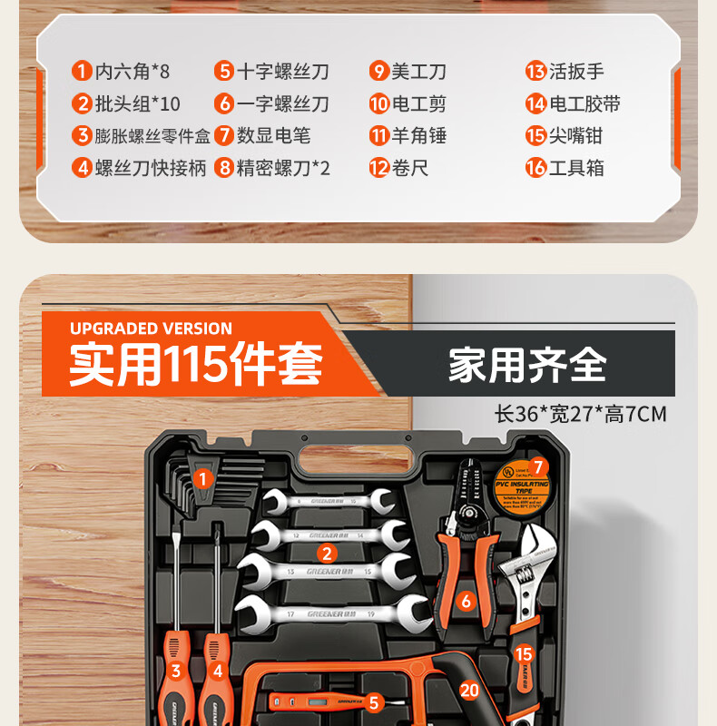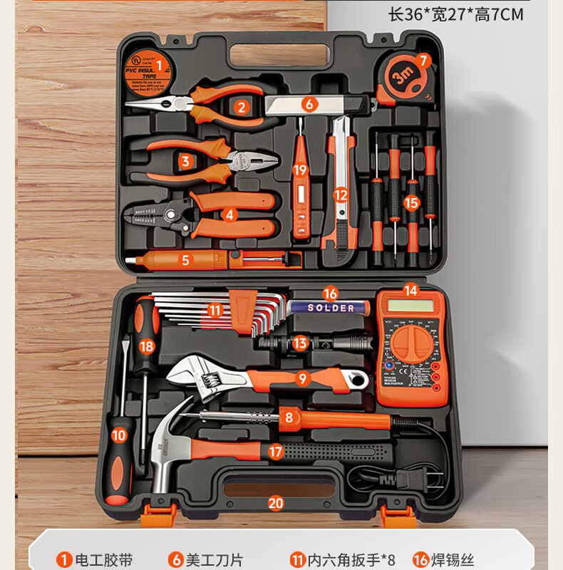 Green Forest Household Tool Set Multifunctional Toolbox Electrician Repair Combination Hardware Complete Family Complete Set Practical 22-piece Set Home Decoration Selection