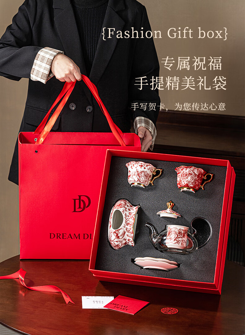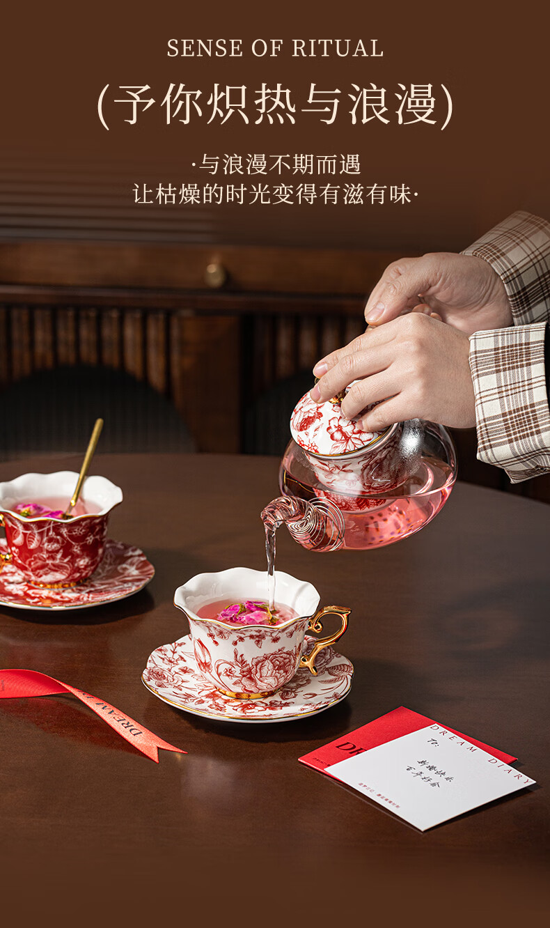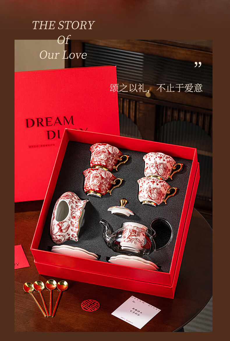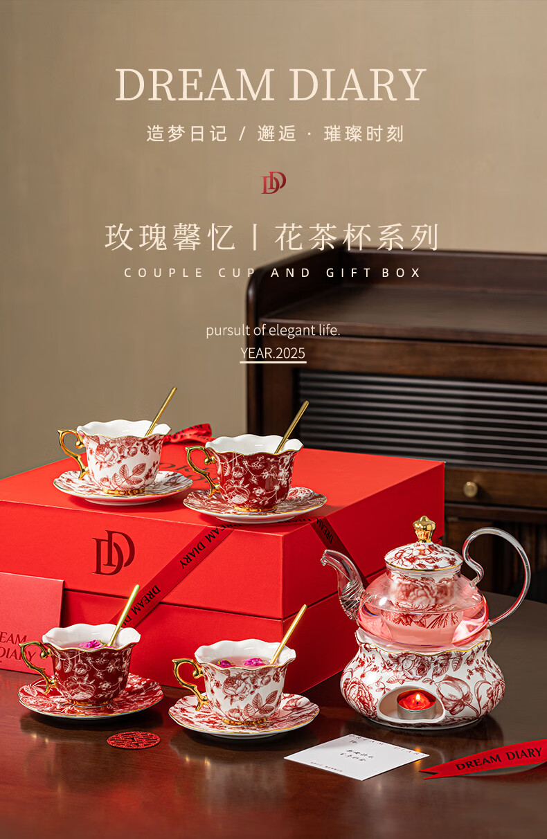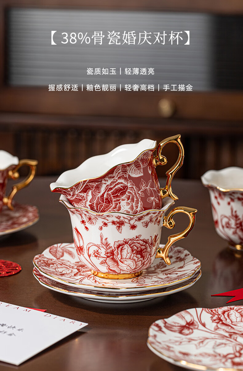 Dream Diary Real Bone China Rose Xinyi Engagement Wedding Gift for the Bride to Wedding Best Friend Flower Teapot Four Cups Haute Couture Gift Box-Rose Xinyi Pair of Cups