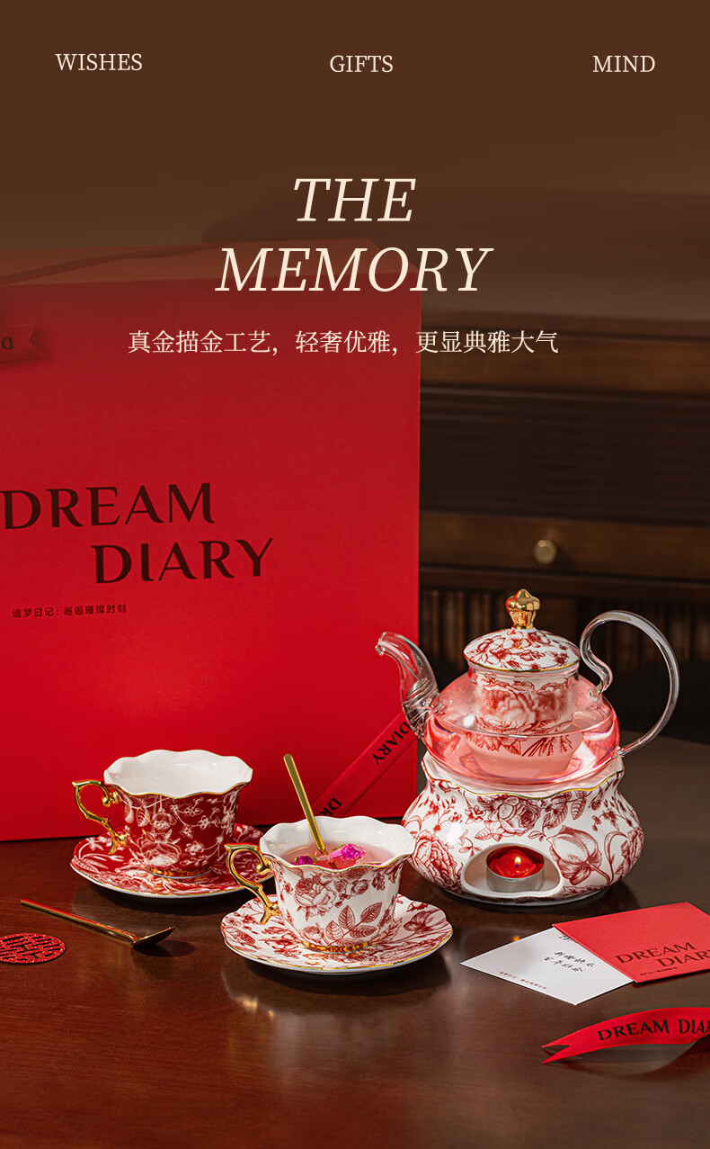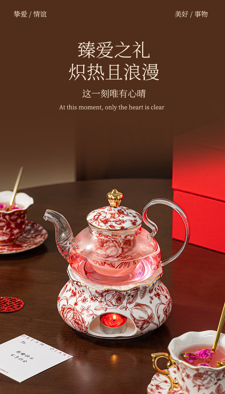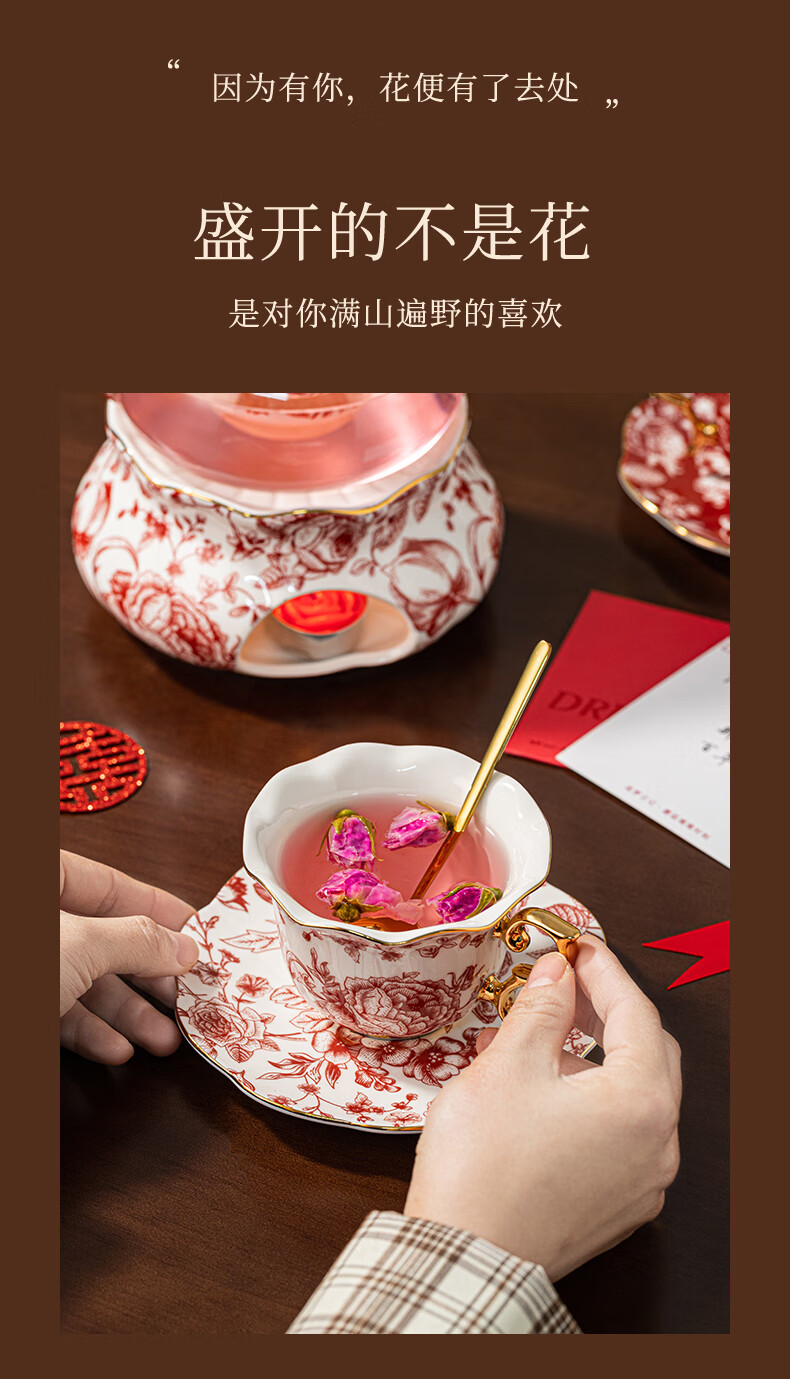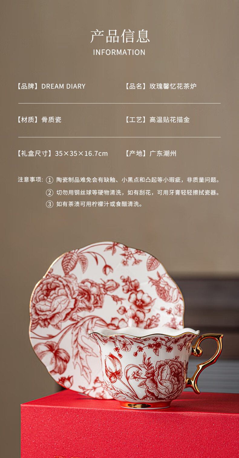 Dream Diary Real Bone China Rose Xinyi Engagement Wedding Gift for the Bride to Wedding Best Friend Flower Teapot Four Cups Haute Couture Gift Box-Rose Xinyi Pair of Cups