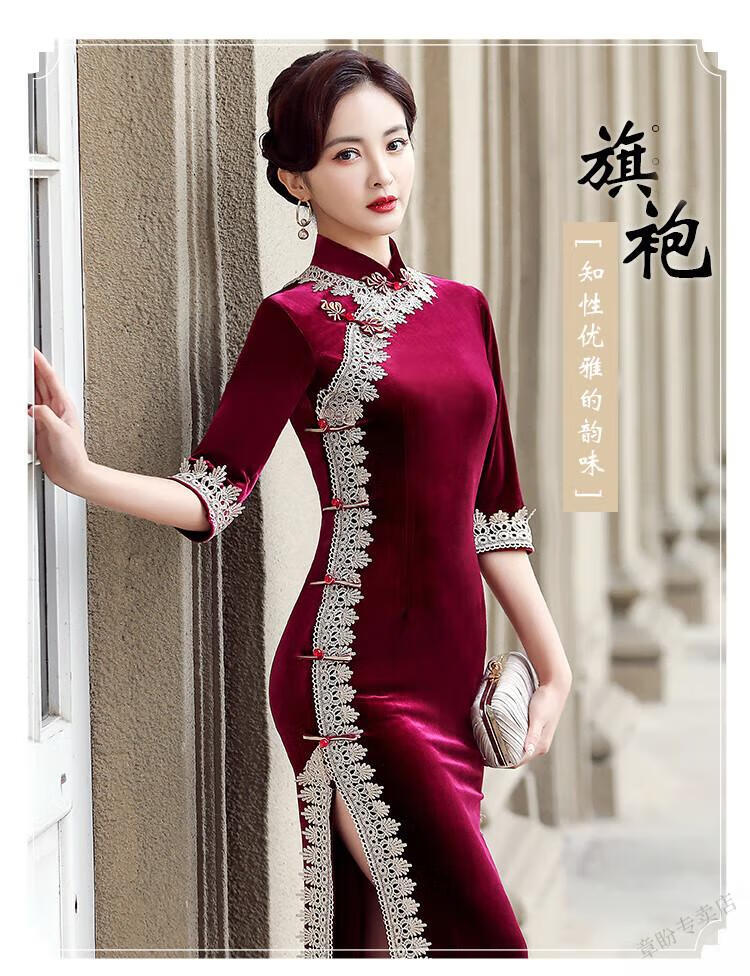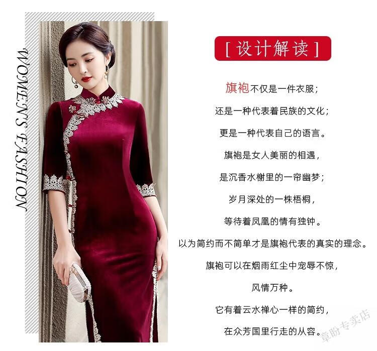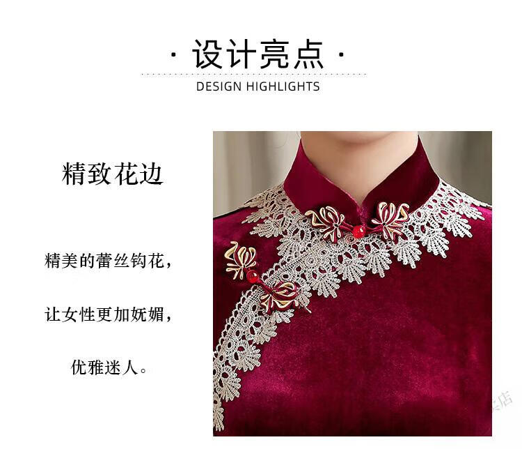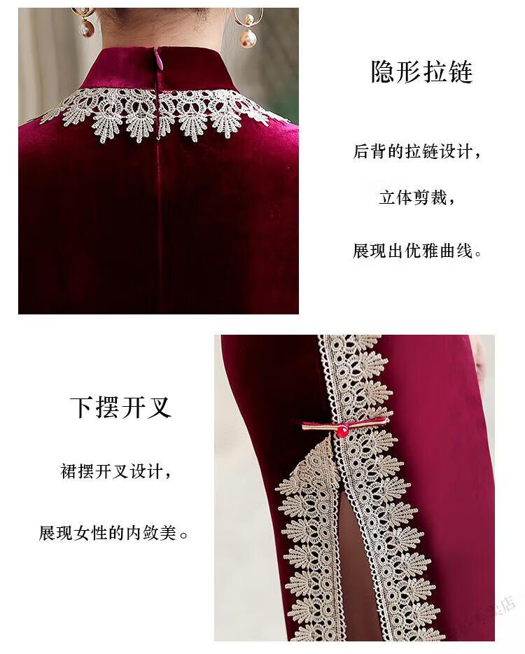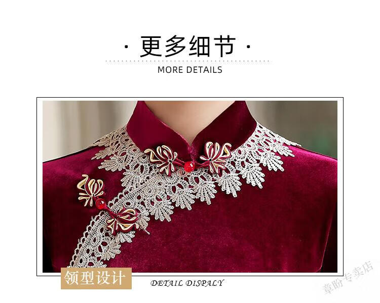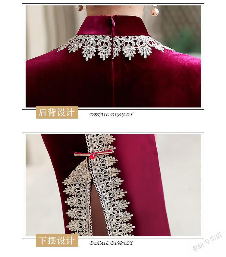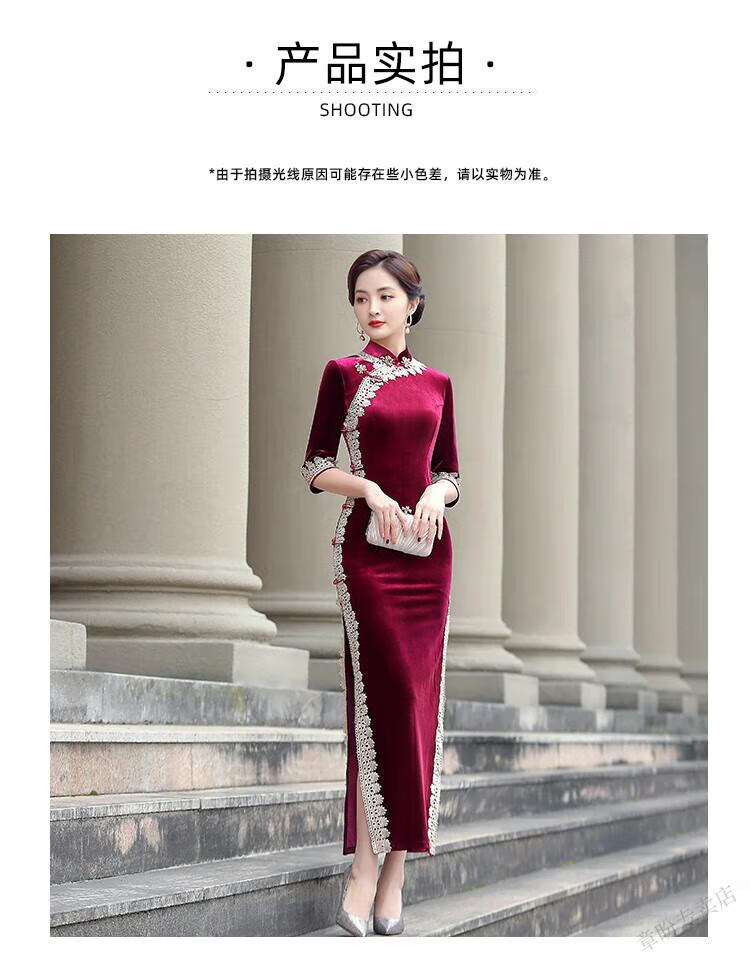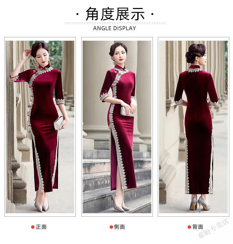 Hengyuanxiang gold velvet cheongsam burgundy 2025 new improved Chinese style women's long mother's dress wedding banquet autumn burgundy gold velvet L 103-113 catties