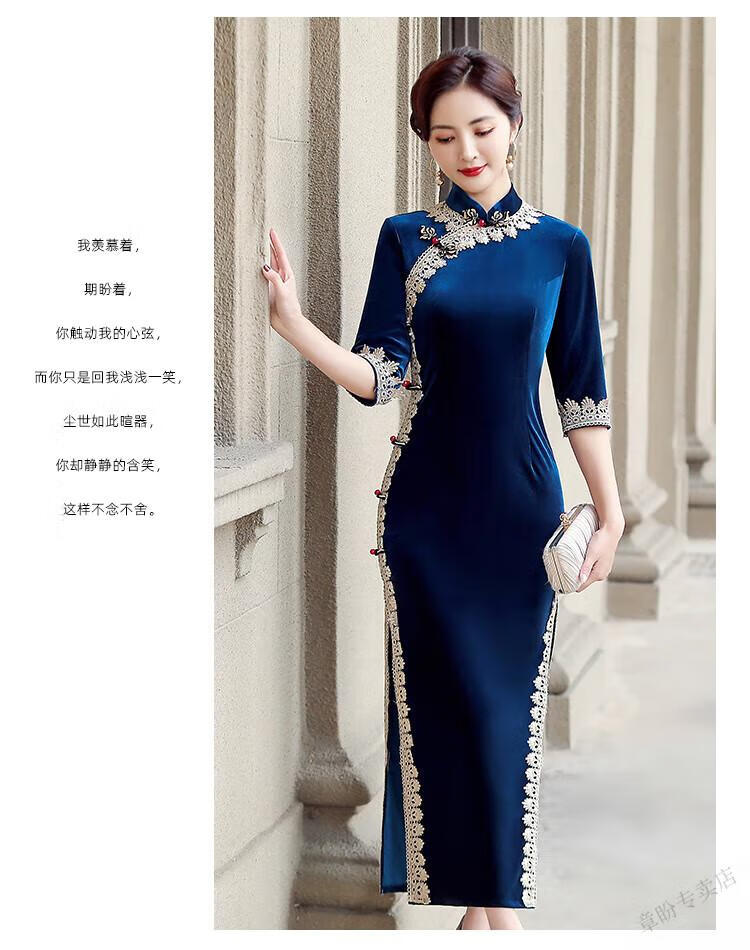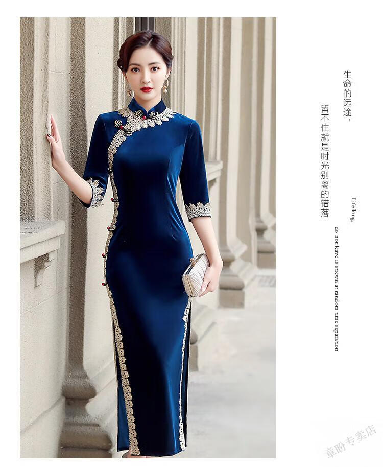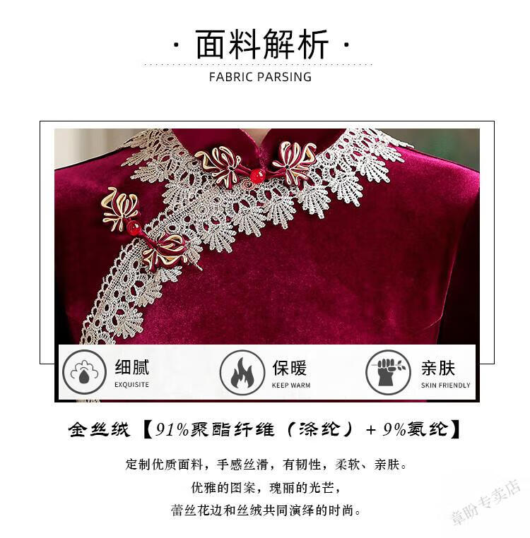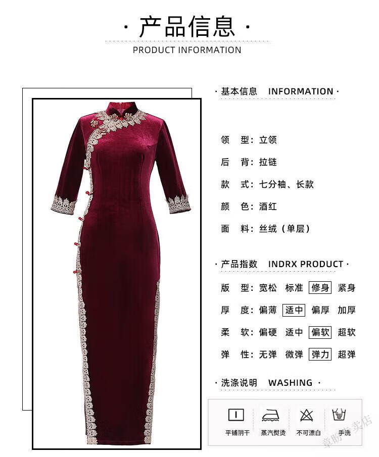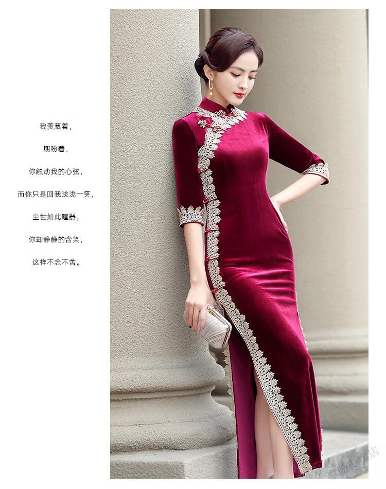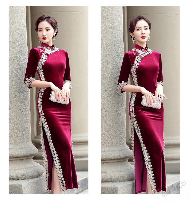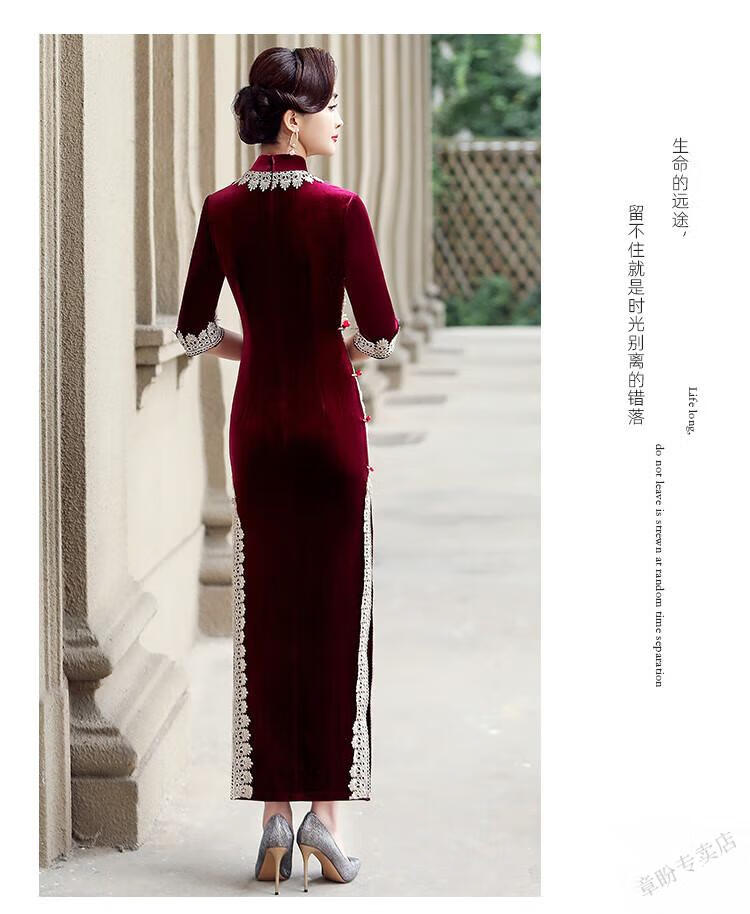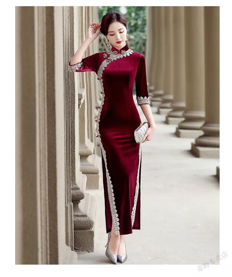 Hengyuanxiang gold velvet cheongsam burgundy 2025 new improved Chinese style women's long mother's dress wedding banquet autumn burgundy gold velvet L 103-113 catties