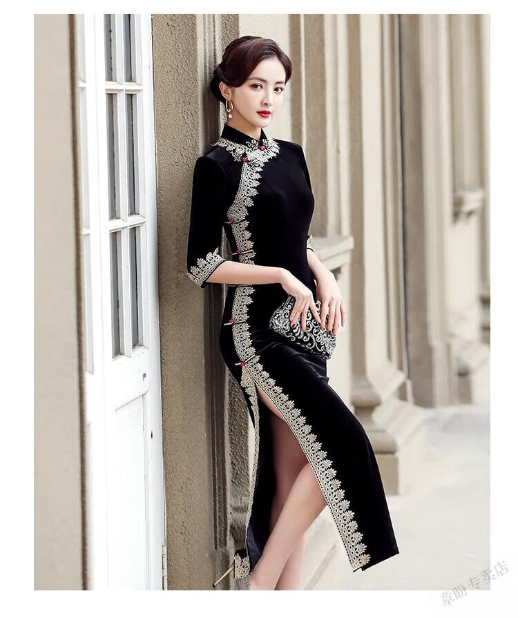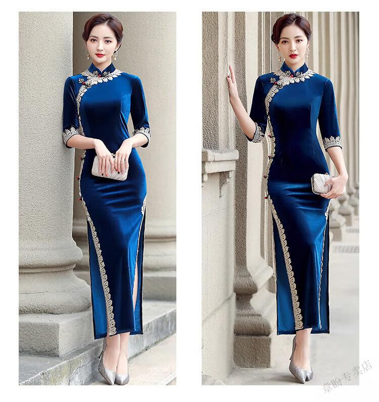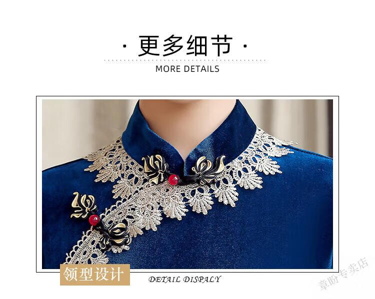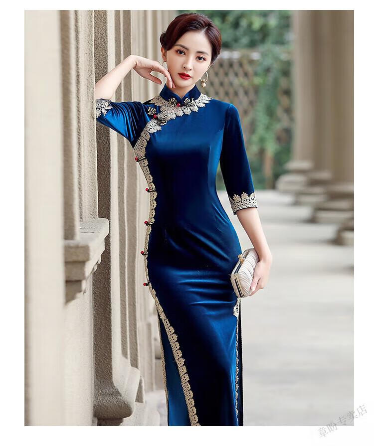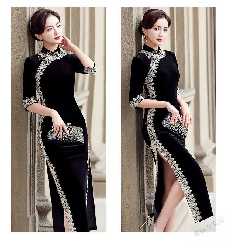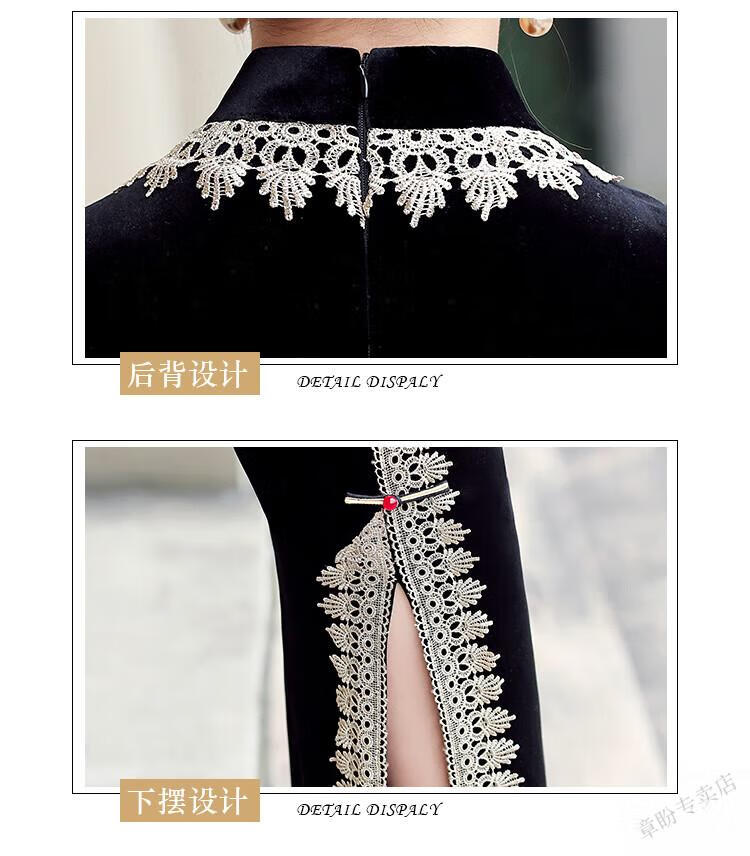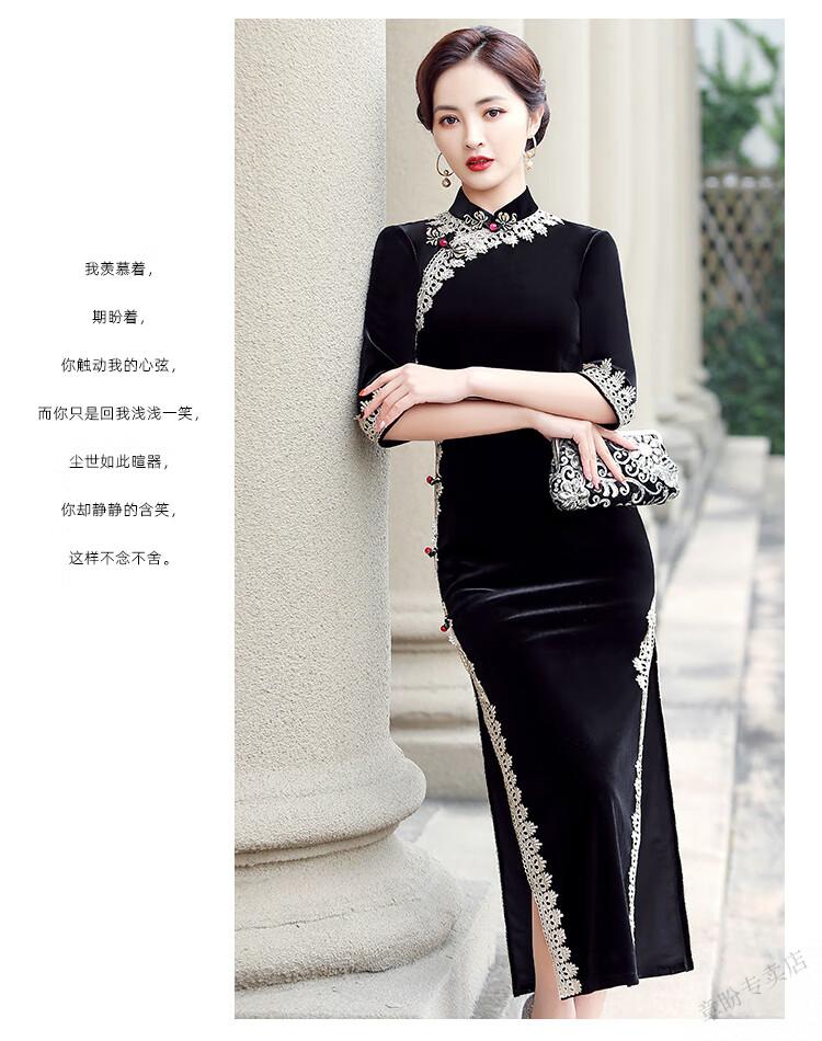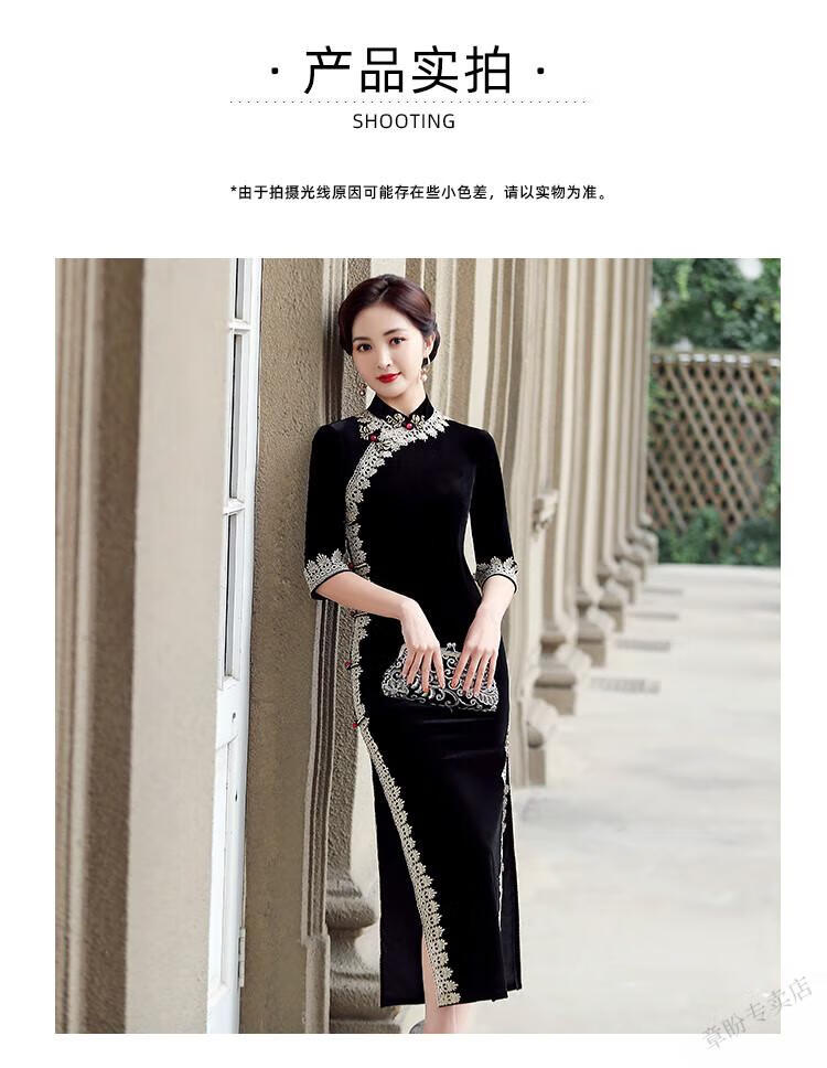 Hengyuanxiang gold velvet cheongsam burgundy 2025 new improved Chinese style women's long mother's dress wedding banquet autumn burgundy gold velvet L 103-113 catties