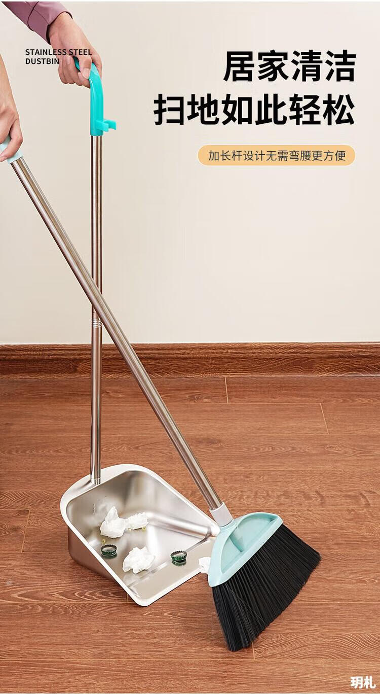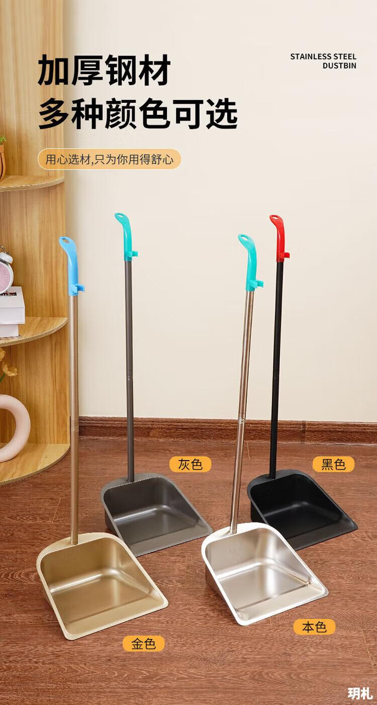 Poke household thickened stainless steel large and small dustpan single garbage shovel bucket broom can be hung with dustpan integrated stainless steel garbage bucket gray