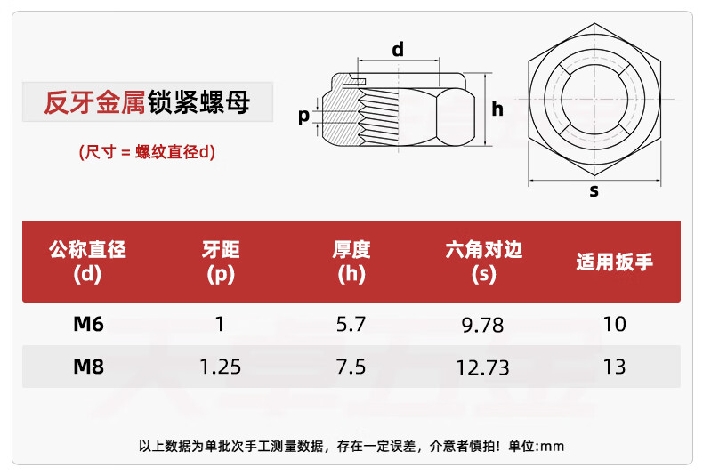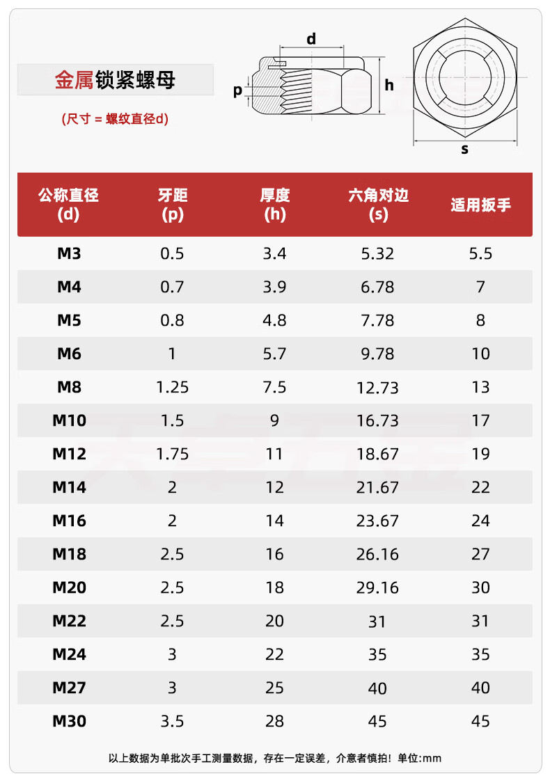 Tianzhuo Hardware 304/201/316 stainless steel metal locking nut all-metal hexagonal self-locking anti-loosening anti-removal nut 304 material-M8-5 pieces