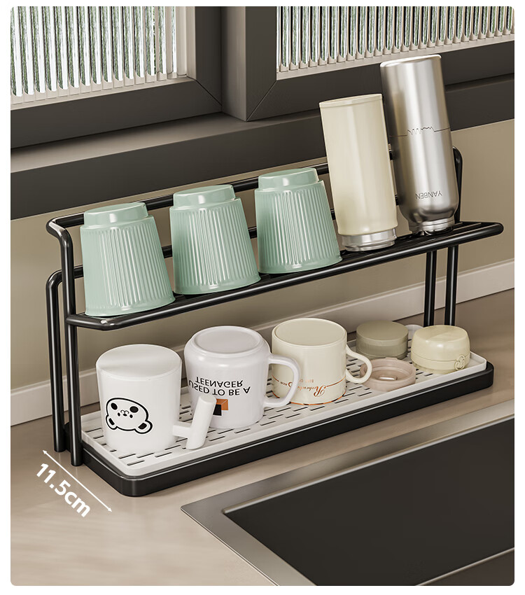 Olevo cup holder kitchen countertop layered cup storage rack thermos bottle tea cup coffee storage rack double-layer drain tray rack drain cup holder black