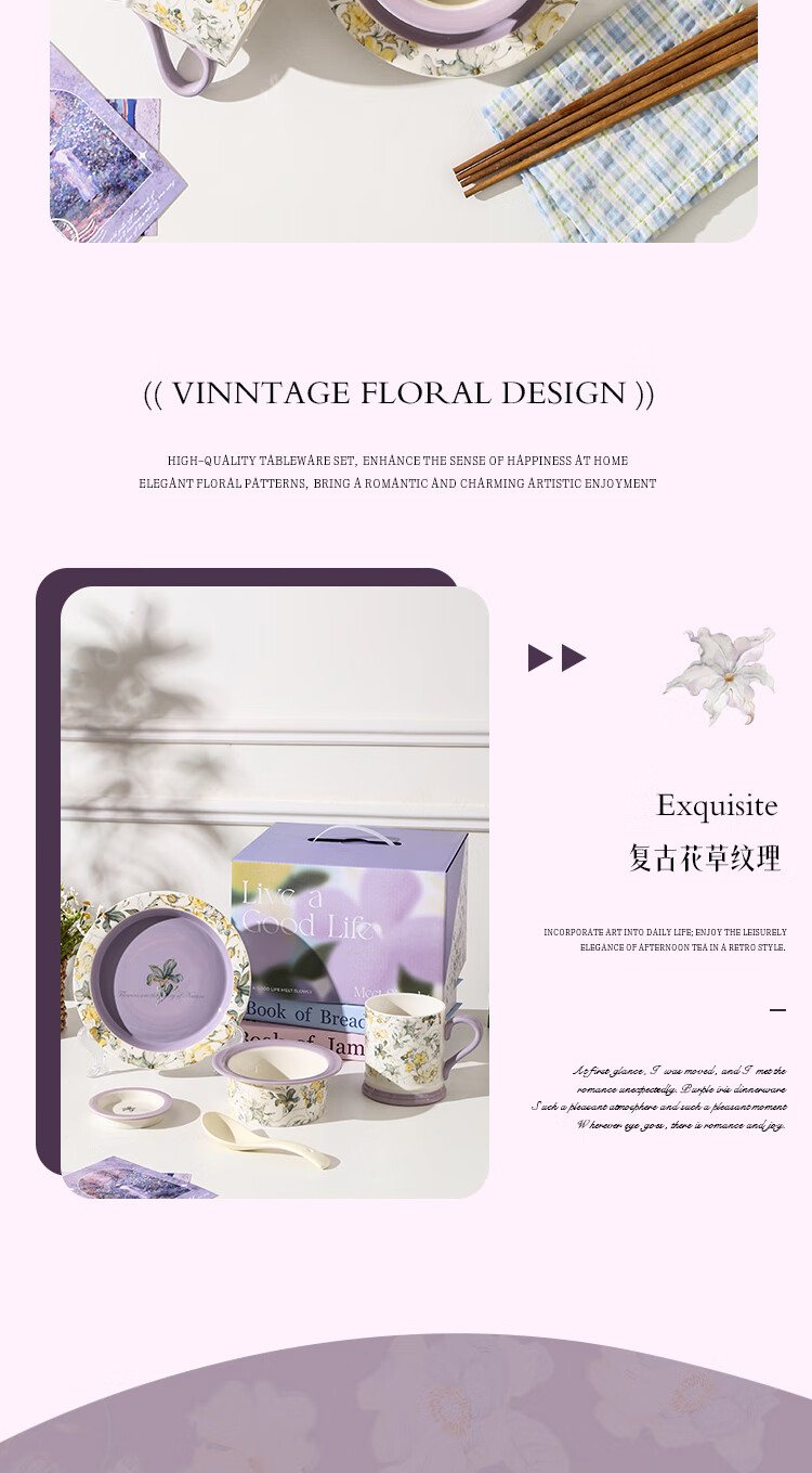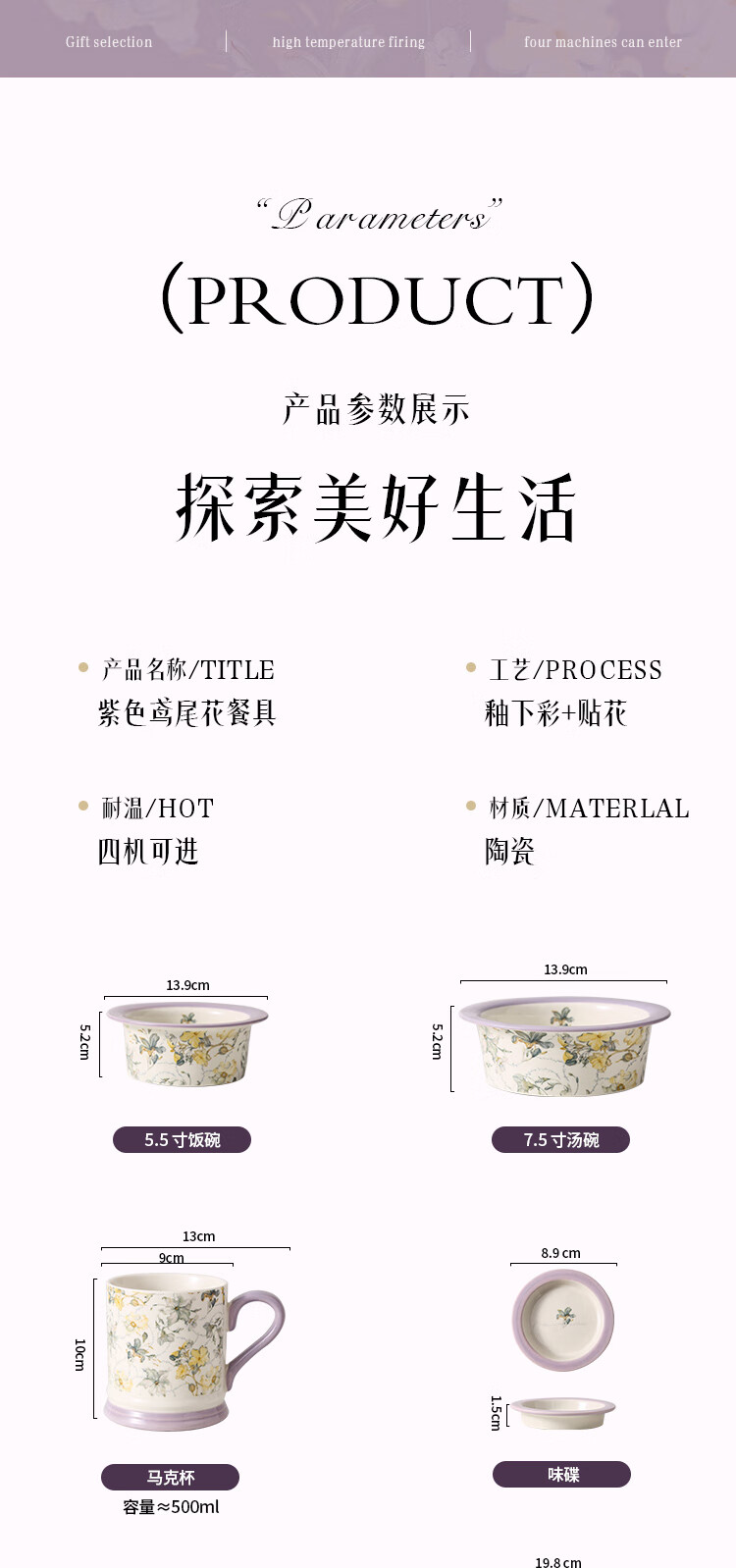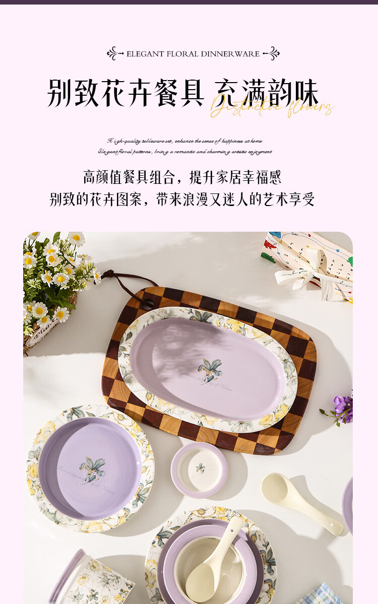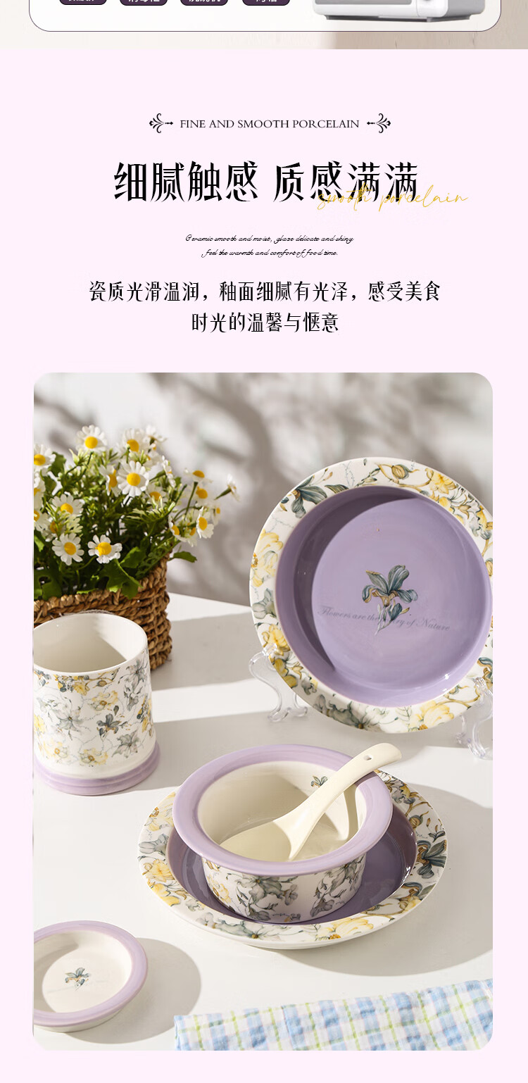 Xiderun underglaze colored iris flower bowl and plate set for home move-in, new home bowl and plate, wedding gift tableware, chopsticks and bowls gift box, 6-piece set for one person - iris flower