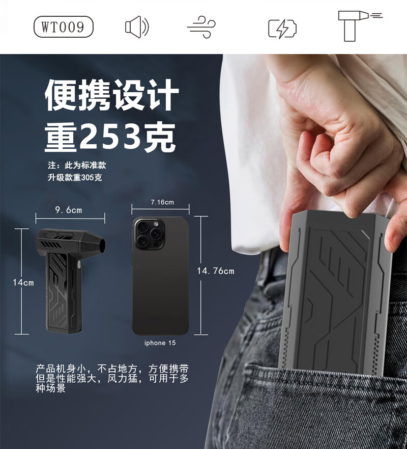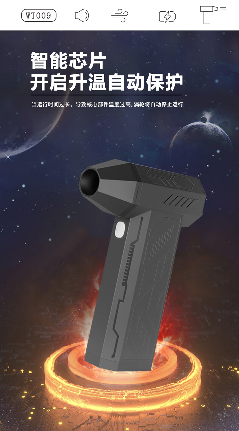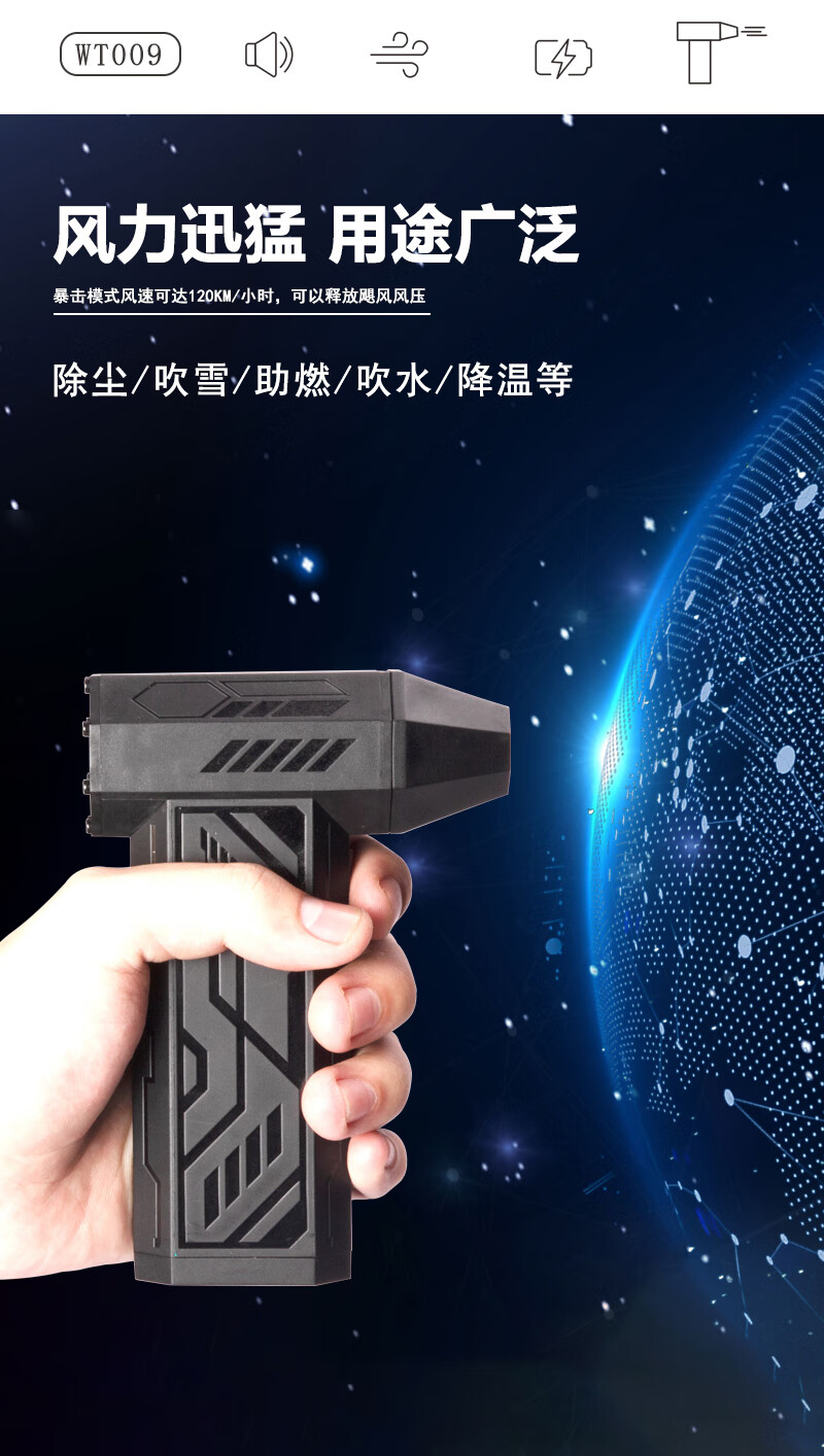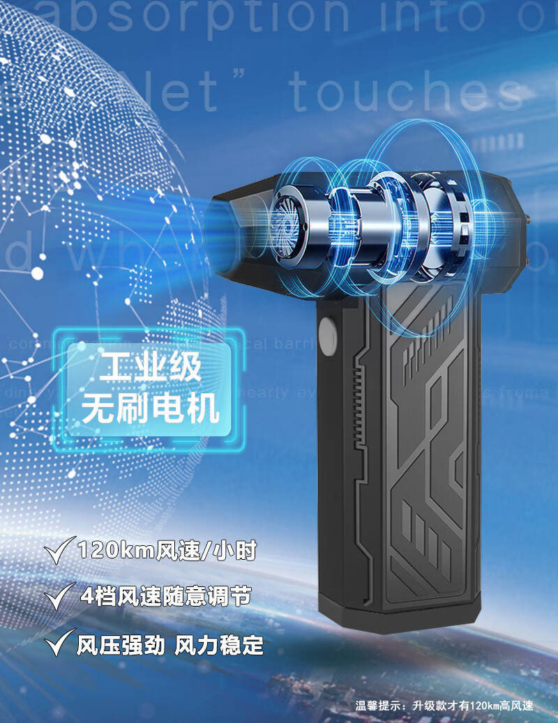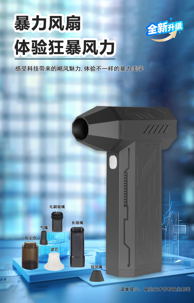 Jingxi Selection Portable handheld small fan violent fan dust removal turbine brushless motor snow blower black basic model 200,000 rpm single blowing function