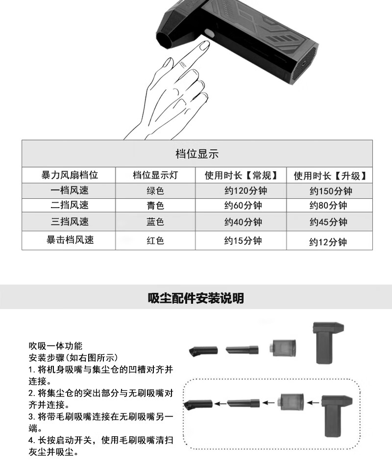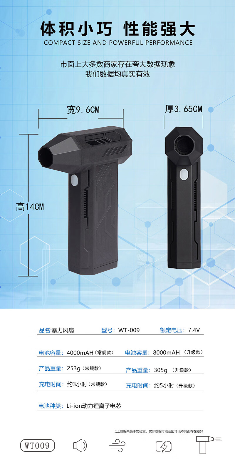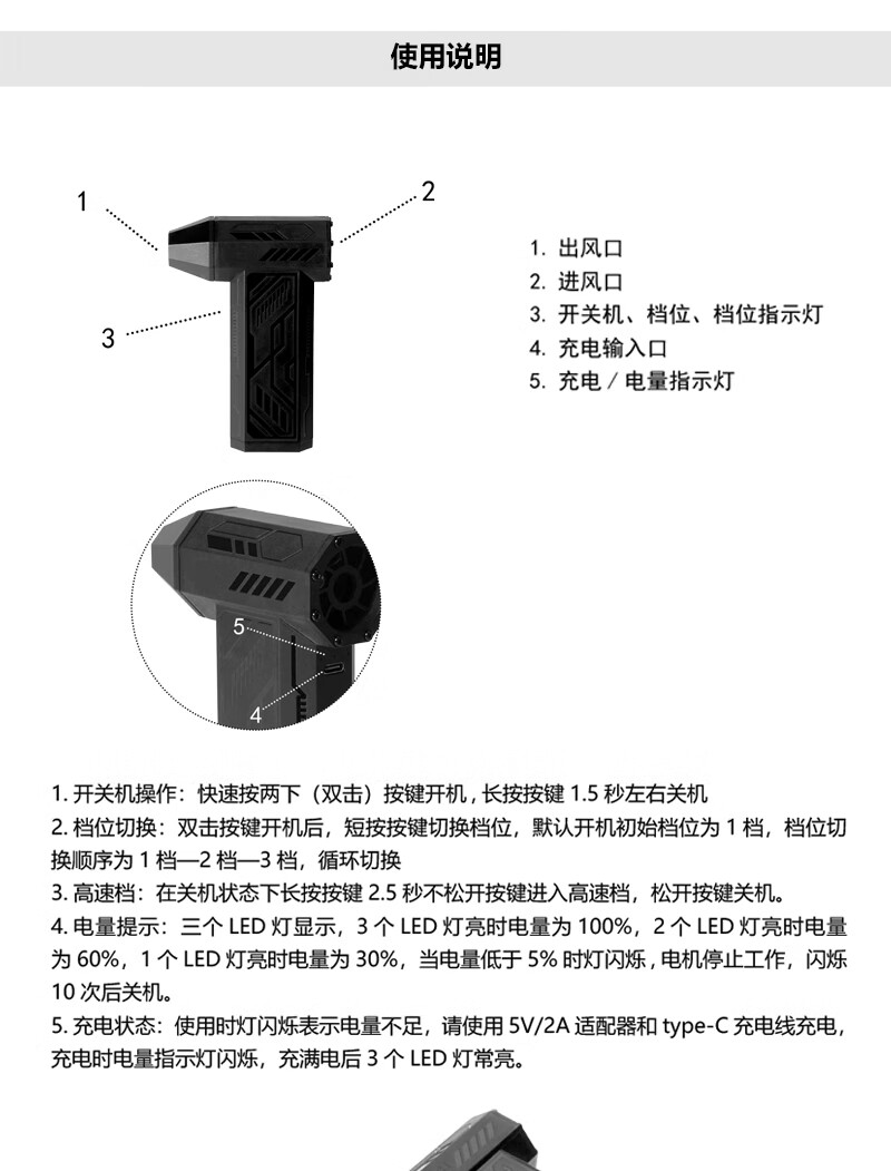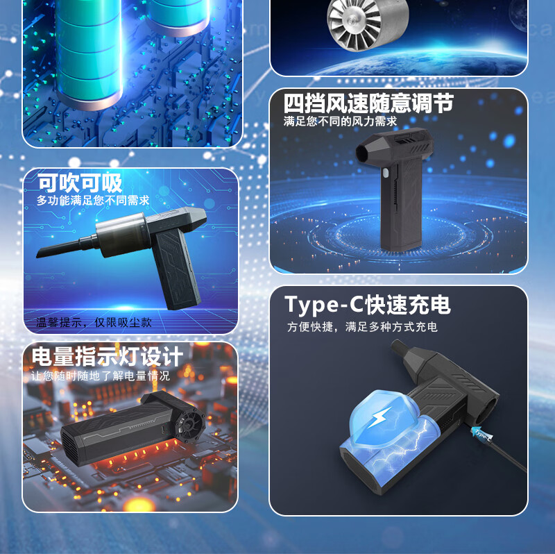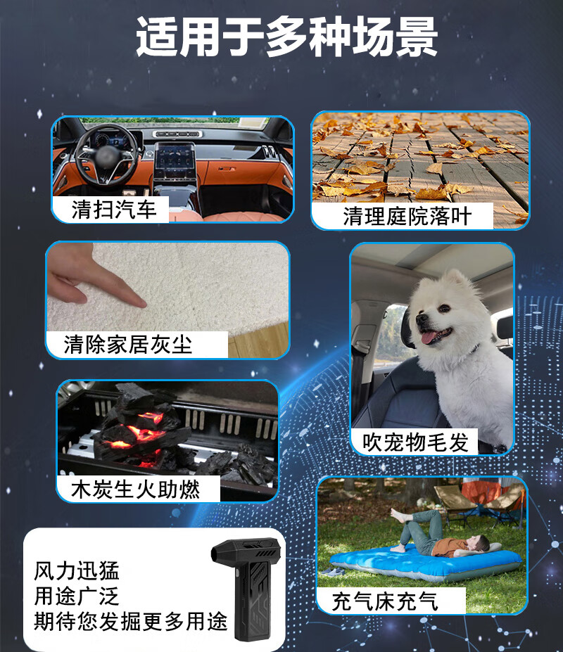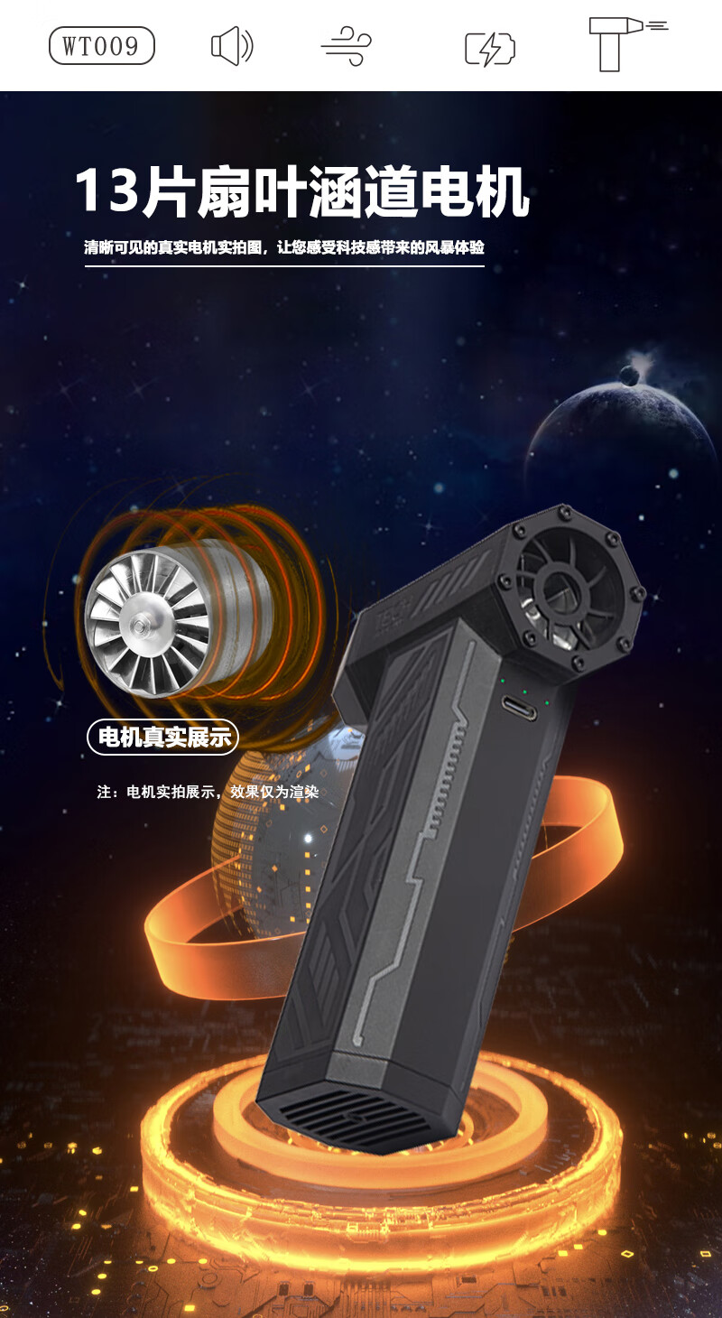 Jingxi Selection Portable handheld small fan violent fan dust removal turbine brushless motor snow blower black basic model 200,000 rpm single blowing function