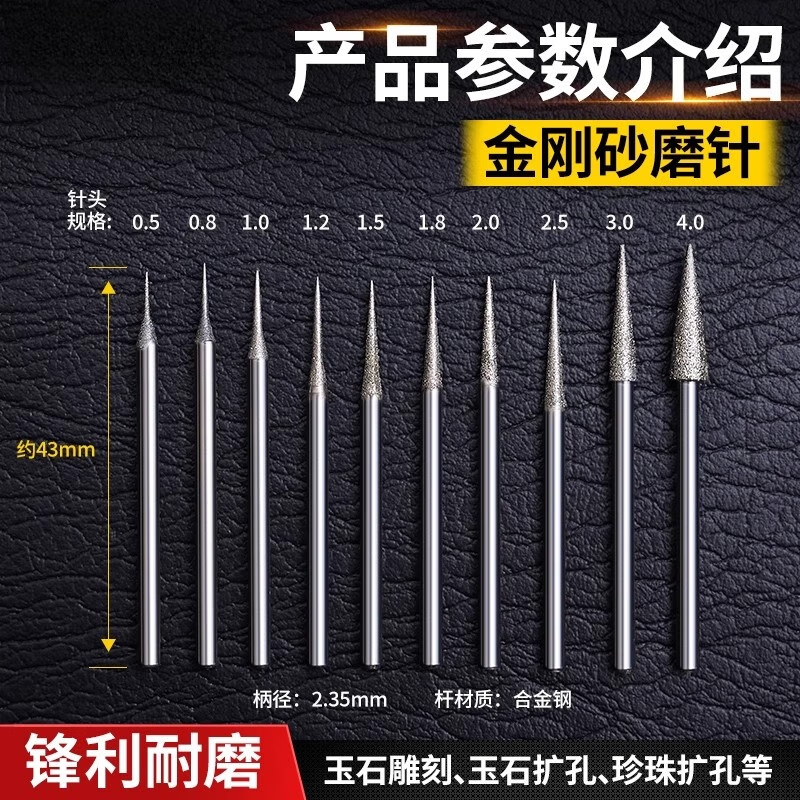 Suizhiyu emery grinding needle jade jade agate pearl tooth machine engraving tool reaming drill bit electric grinder D needle grinding head 10 pieces 0.5~4.0mm each 2.35 rod