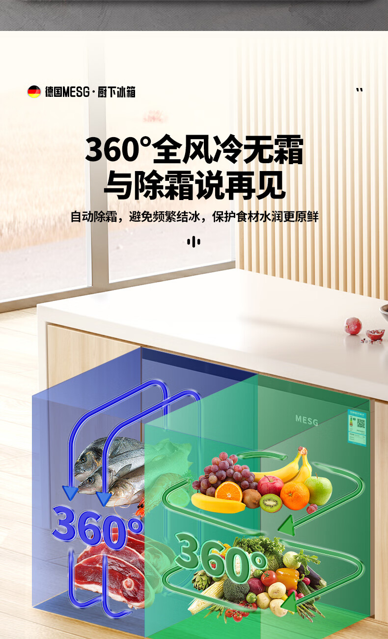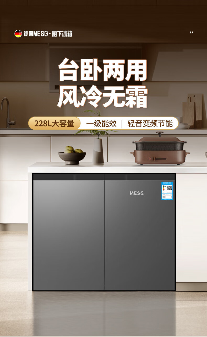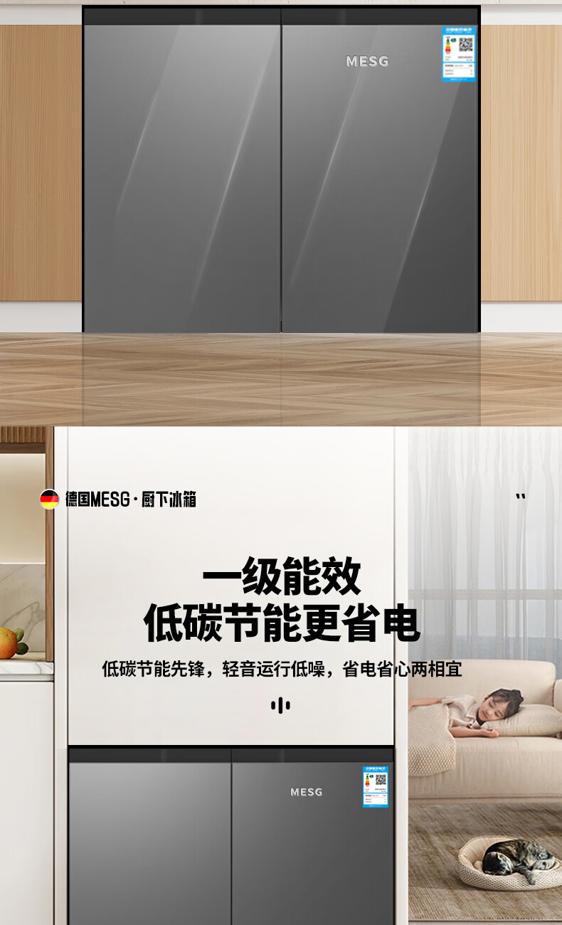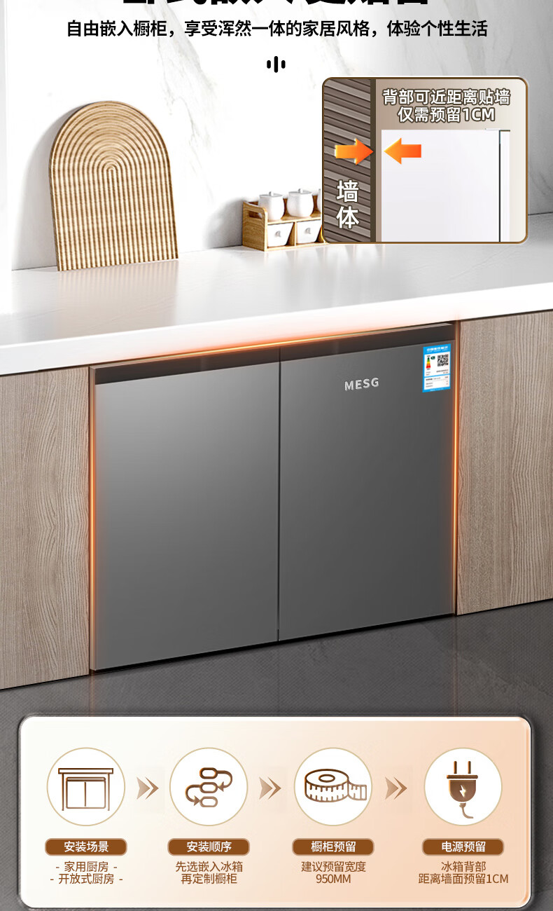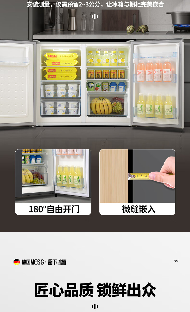 MESG horizontal refrigerator double-door household fully embedded frequency conversion first-level energy efficiency computer temperature control air-cooled frost-free undercounter kitchen cabinet 228 liters household large capacity short refrigerator high-end model/interstellar gray/ultra-thin table embedded dual-use/deep cooling quick freezing/first-level frequency conversion