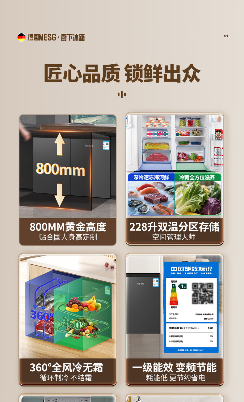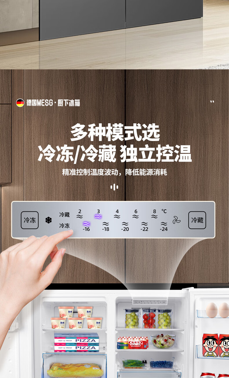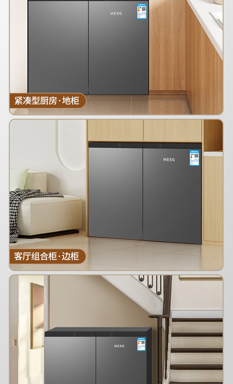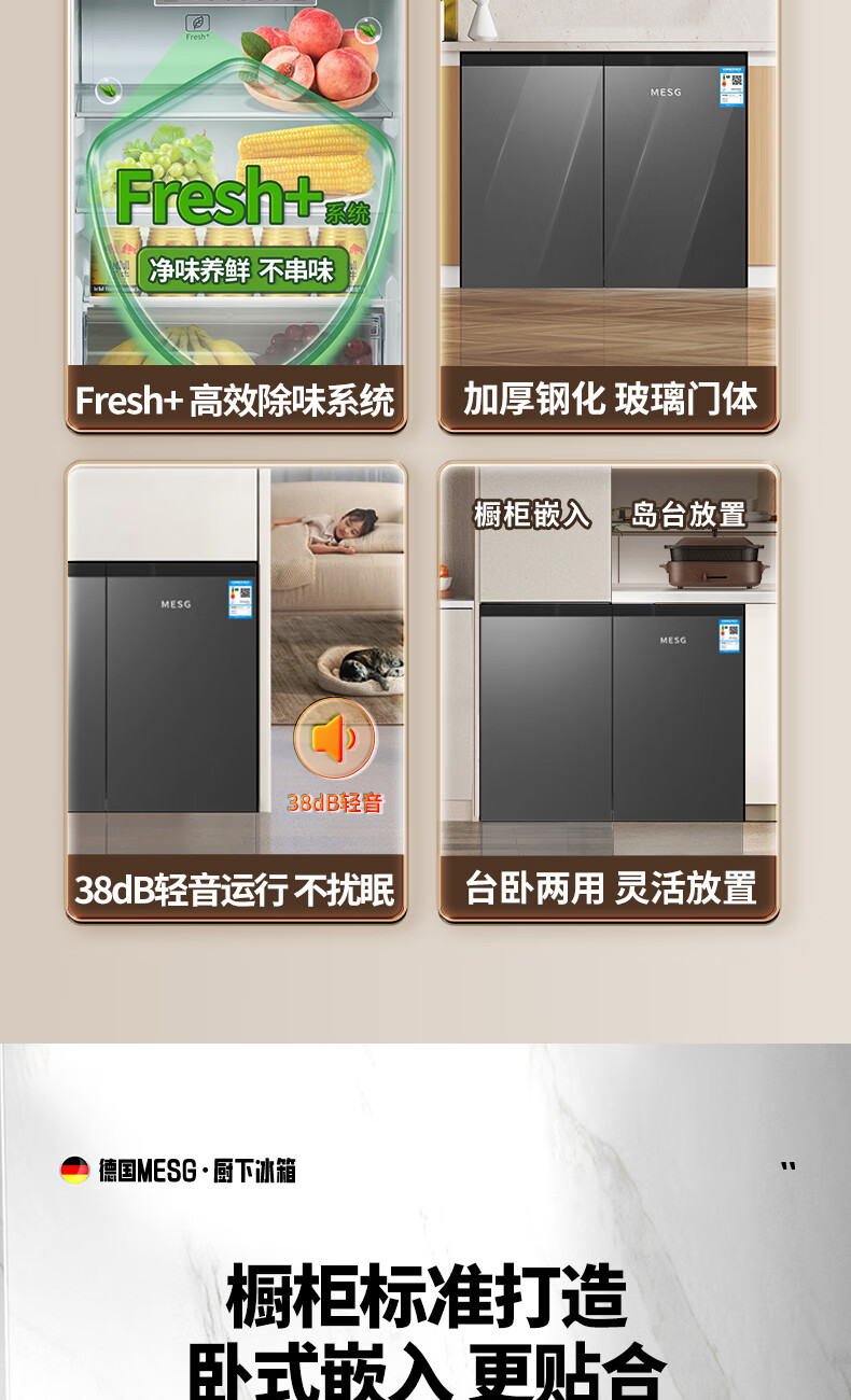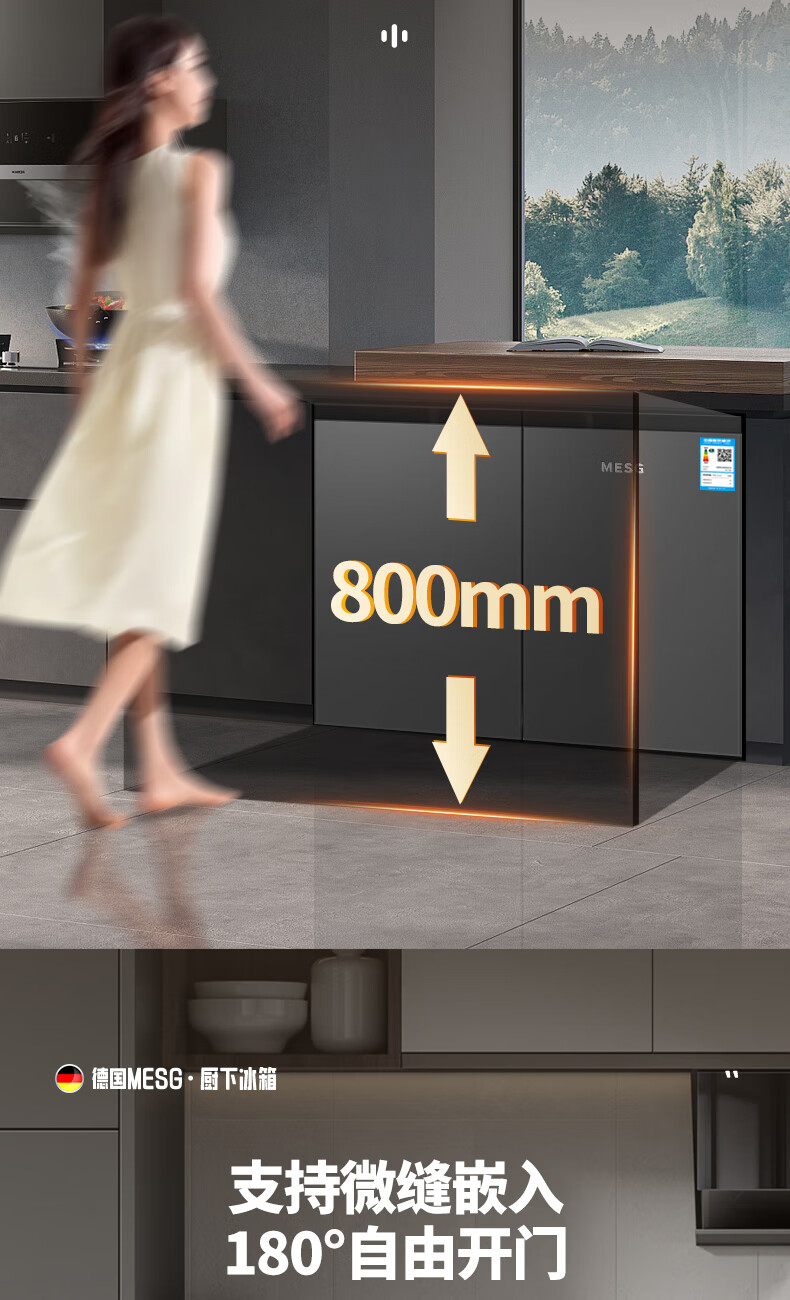 MESG horizontal refrigerator double-door household fully embedded frequency conversion first-level energy efficiency computer temperature control air-cooled frost-free undercounter kitchen cabinet 228 liters household large capacity short refrigerator high-end model/interstellar gray/ultra-thin table embedded dual-use/deep cooling quick freezing/first-level frequency conversion