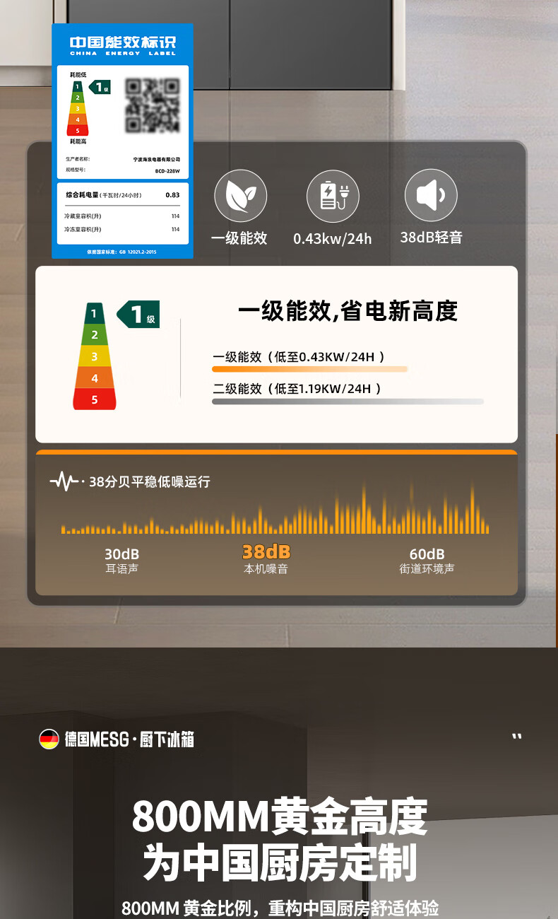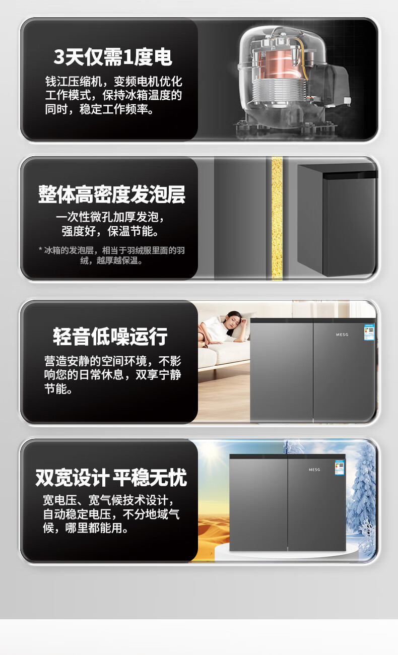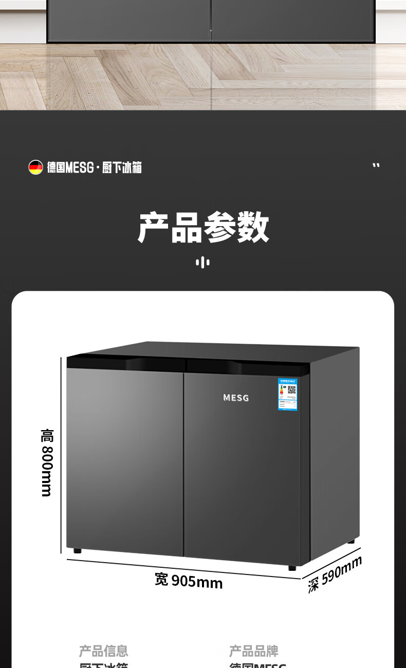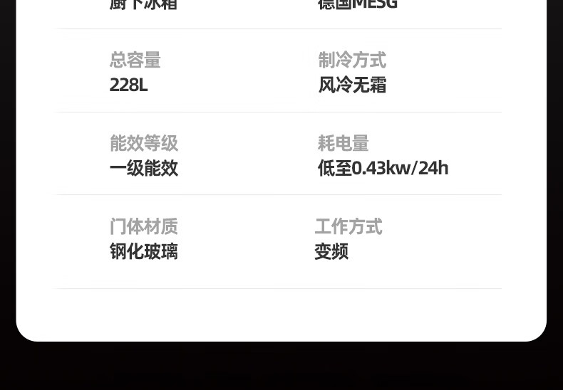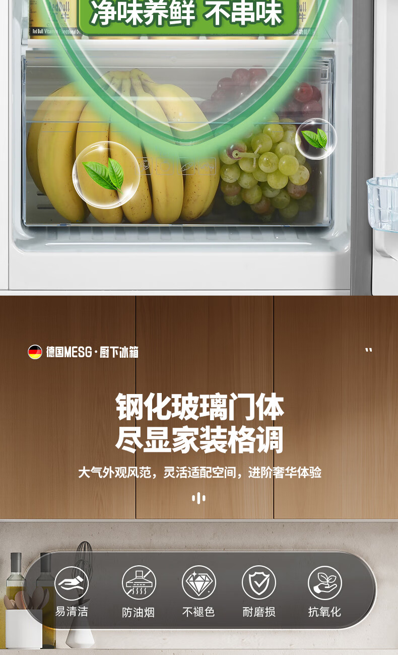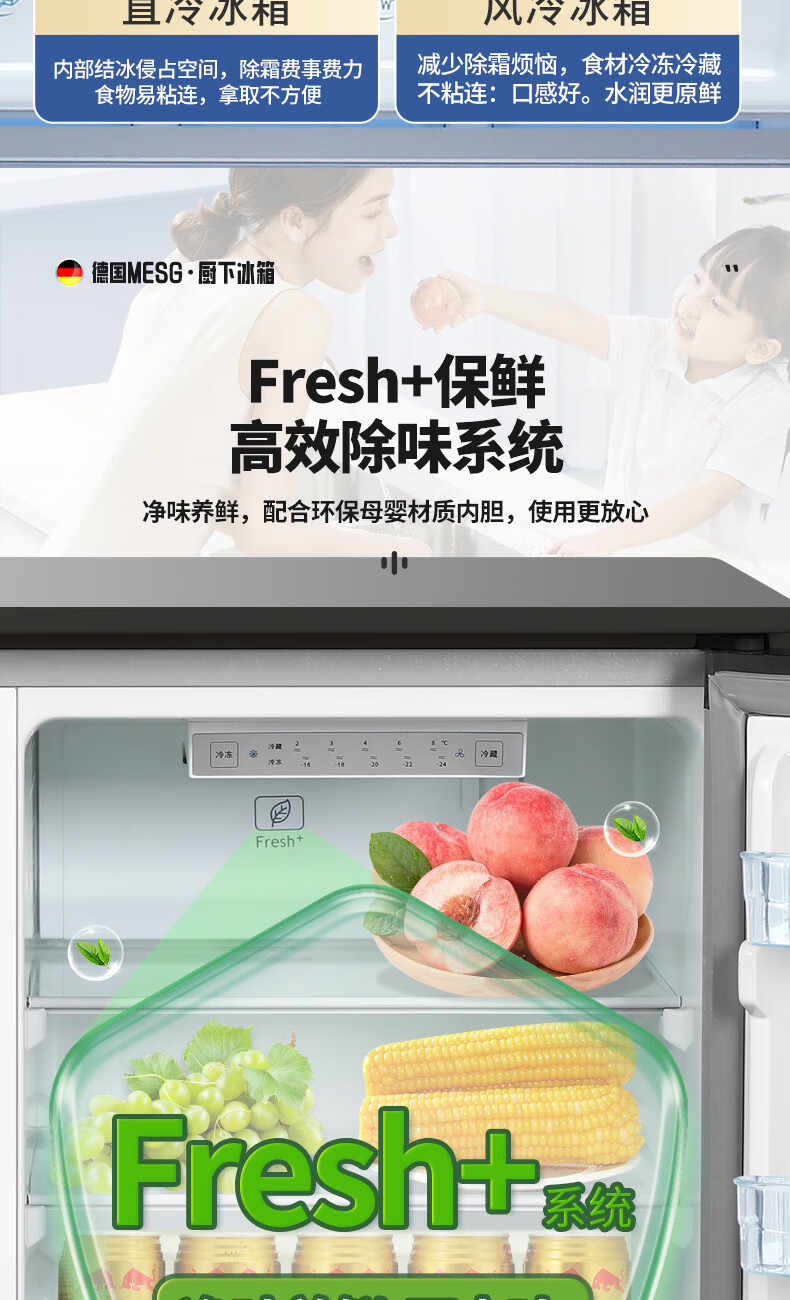 MESG horizontal refrigerator double-door household fully embedded frequency conversion first-level energy efficiency computer temperature control air-cooled frost-free undercounter kitchen cabinet 228 liters household large capacity short refrigerator high-end model/interstellar gray/ultra-thin table embedded dual-use/deep cooling quick freezing/first-level frequency conversion