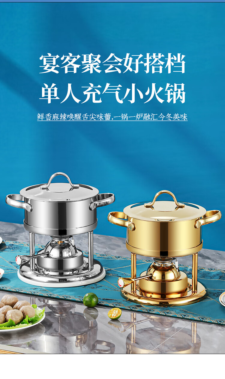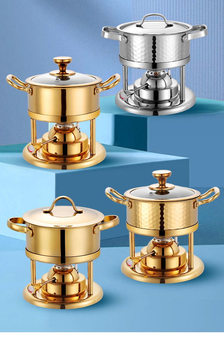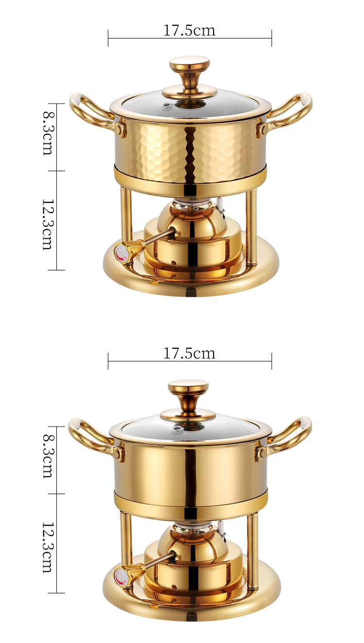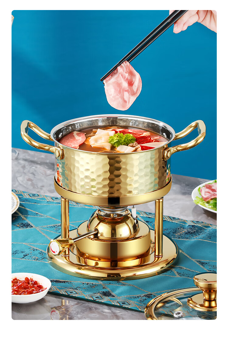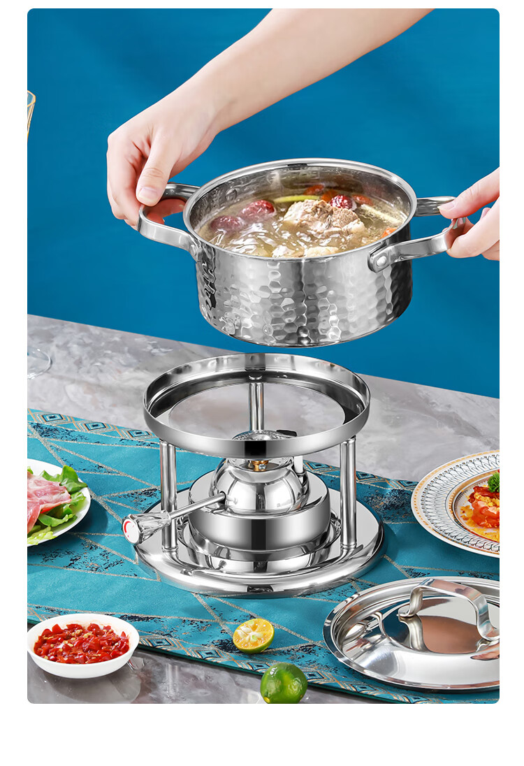 FIREQL high-end hotel club commercial stainless steel single-person small hot pot inflatable gas stove for one person and one pot shabu soup pot silver hammer pattern-environmentally friendly oil type 70-90 minutes 16cm