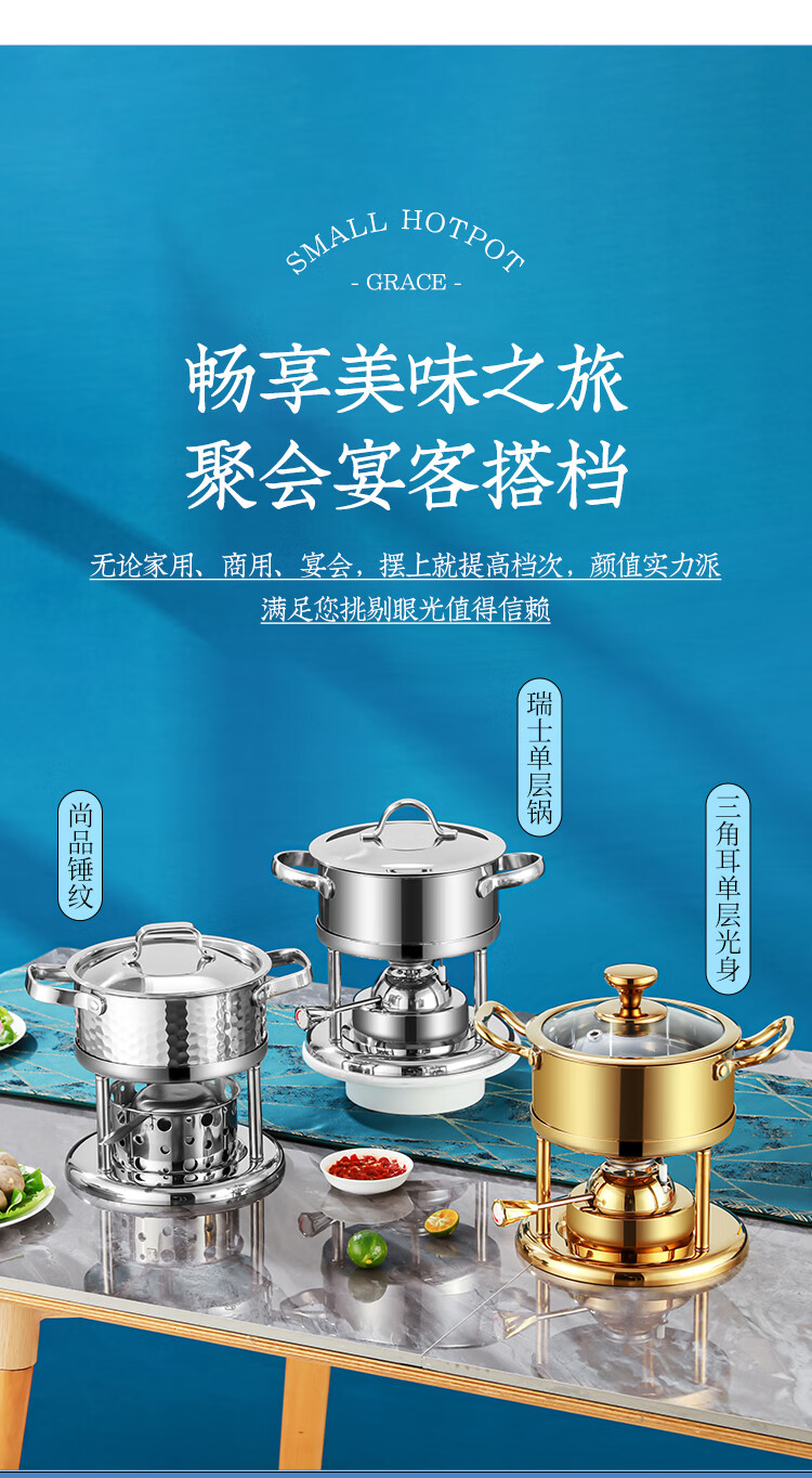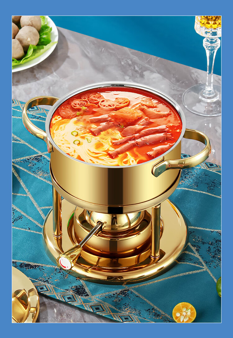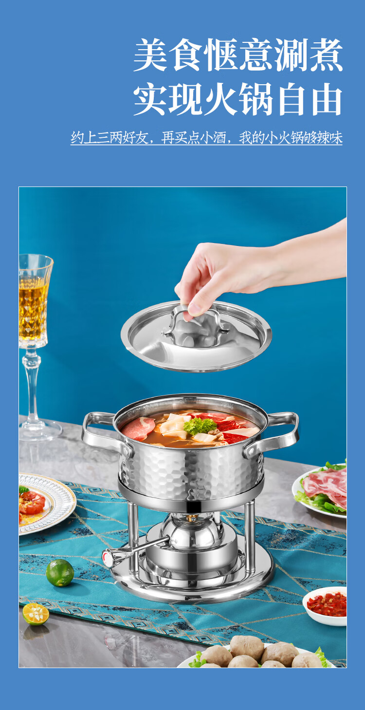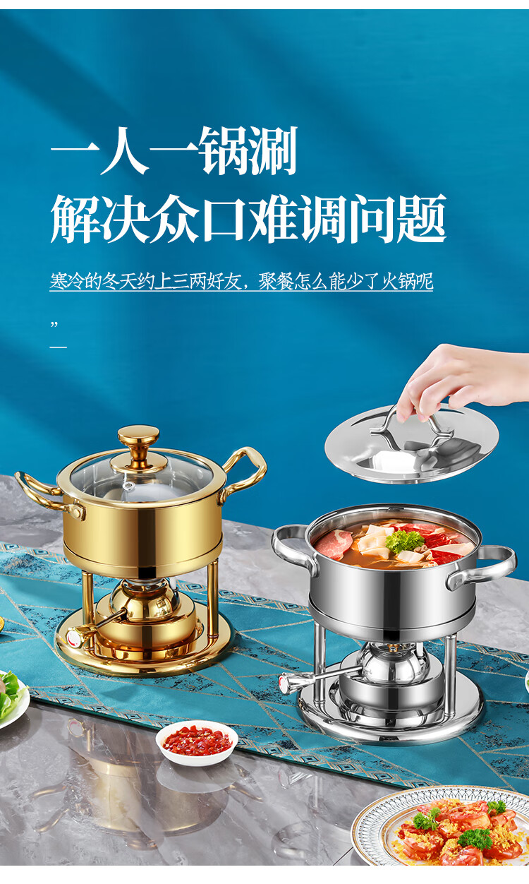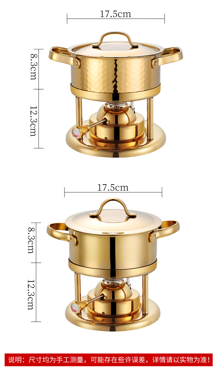 FIREQL high-end hotel club commercial stainless steel single-person small hot pot inflatable gas stove for one person and one pot shabu soup pot silver hammer pattern-environmentally friendly oil type 70-90 minutes 16cm
