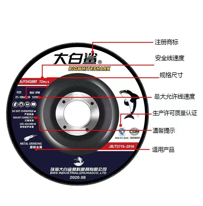BIGWHITESHARK whole piece of 100 industrial polishing discs, grinding wheel discs, cutting discs, grinder angle grinder discs, angle grinder grinding discs, BIGWHITESHARK 100*6*16 (200 pieces per piece)