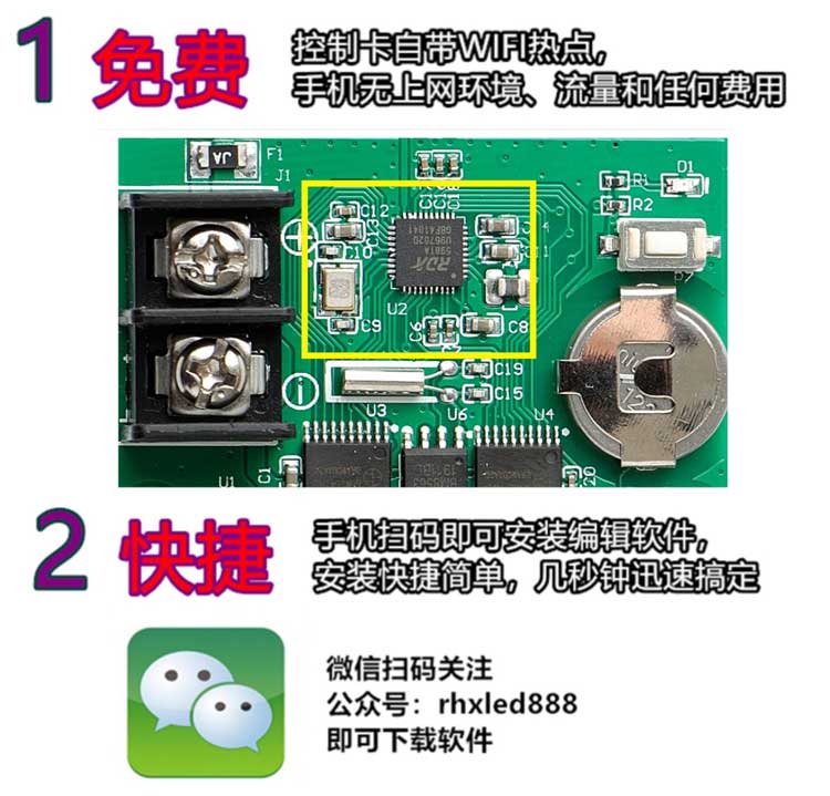 Ruihexin RHX8-Q8B Q10 door head full-color LED display bar screen control card Android Apple mobile phone WIFI RHX8-Q10
