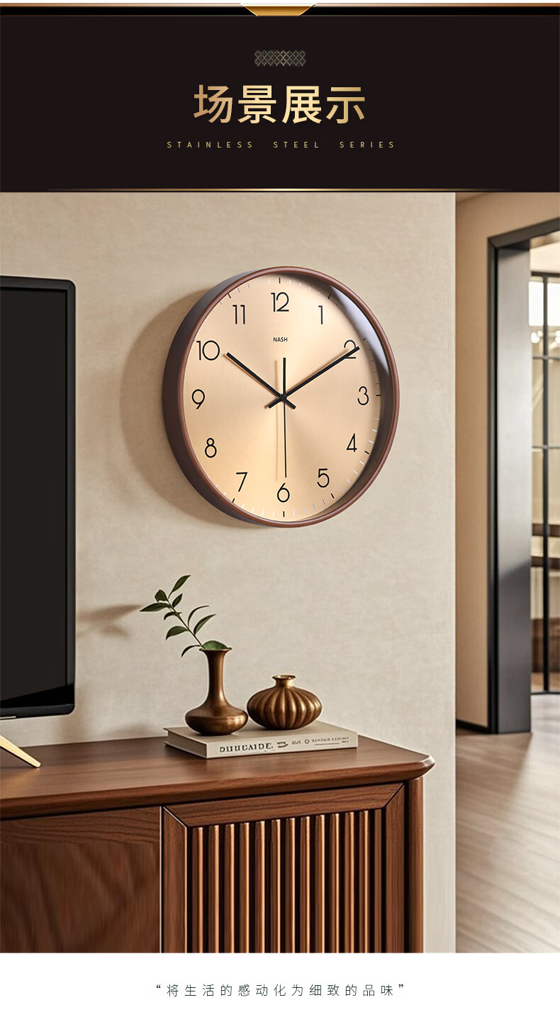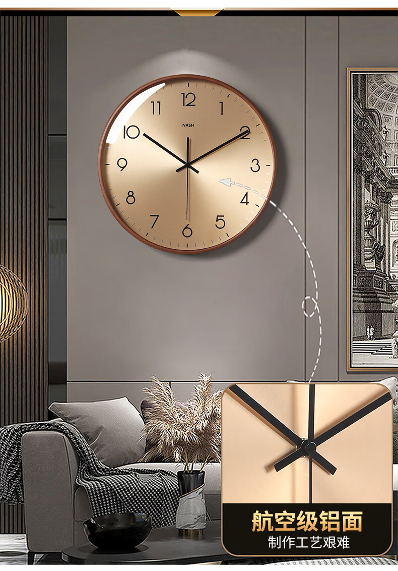 Nash wall clock living room 2026 new simple modern light luxury high-end atmosphere home high-end restaurant clock wall hanging medium size