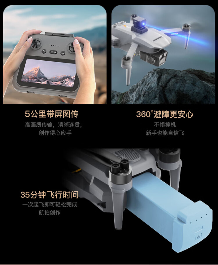 Keerhang P20 obstacle avoidance drone aerial photography HD 8K professional adult 10km endurance GPS return brushless touch screen remote control aircraft 5.5-inch touch screen-8K HD-GPS smart return-obstacle avoidance three-electric version 105 minutes of battery life + free replacement