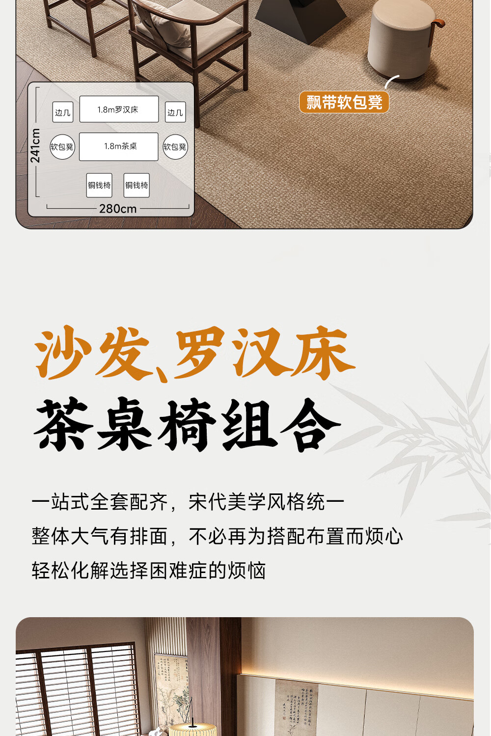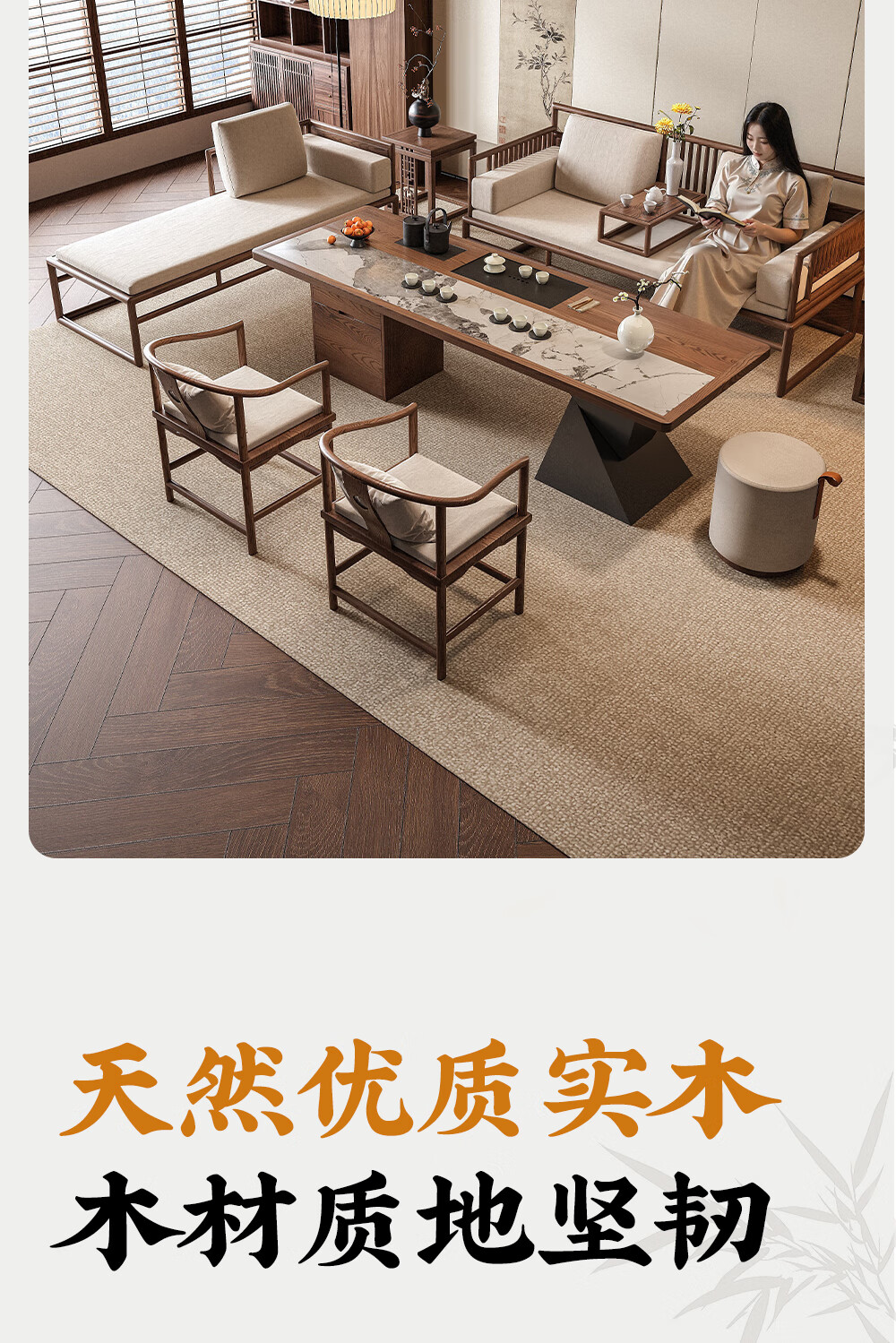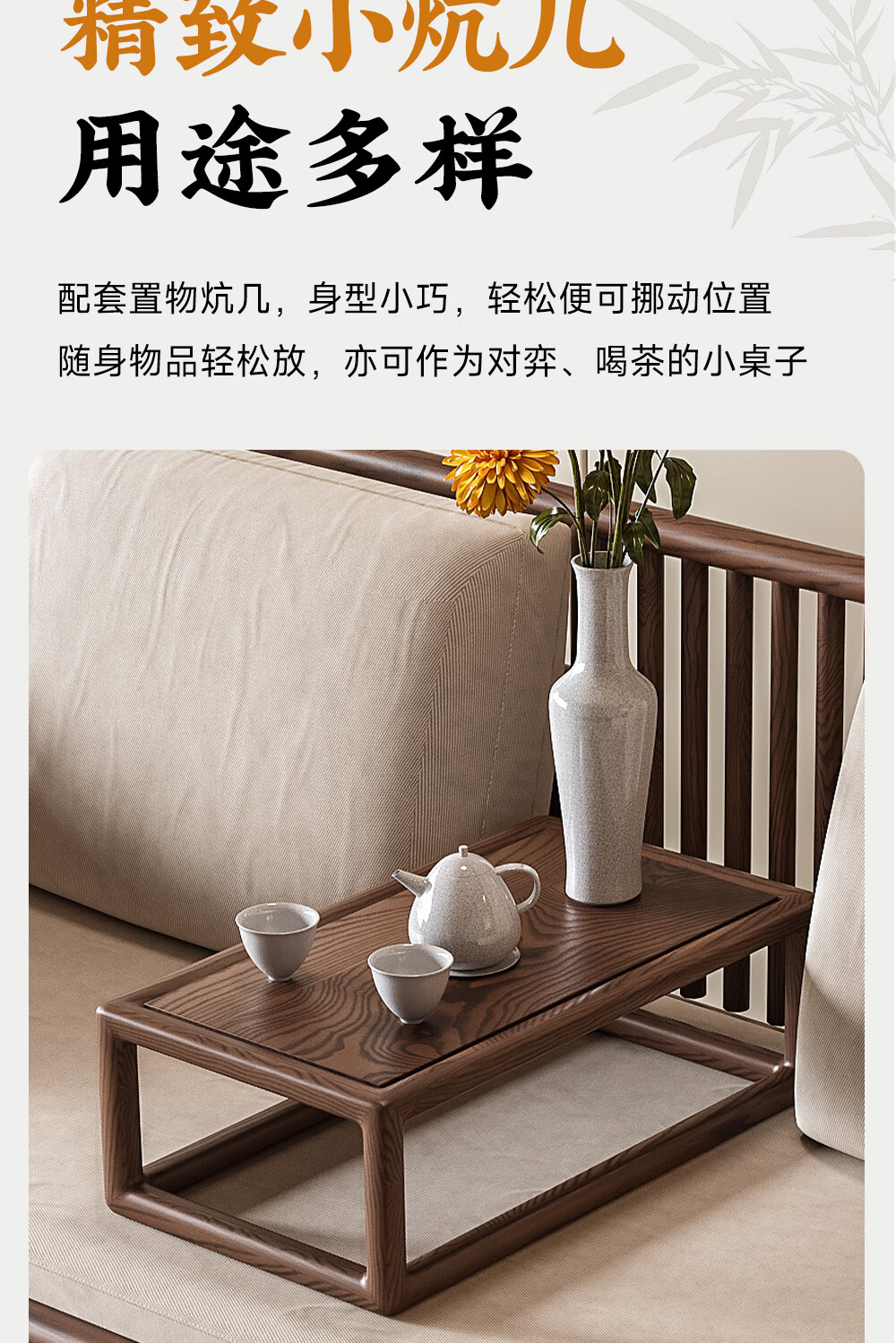 Ji gift Song Dynasty aesthetic ash wood Arhat bed tea table and chair combination new Chinese style solid wood sofa coffee table set 2026 new style ash wood 1.8m tea table + 1.8m Arhat bed + 1.6m imperial concubine couch + 2 main chairs + stool