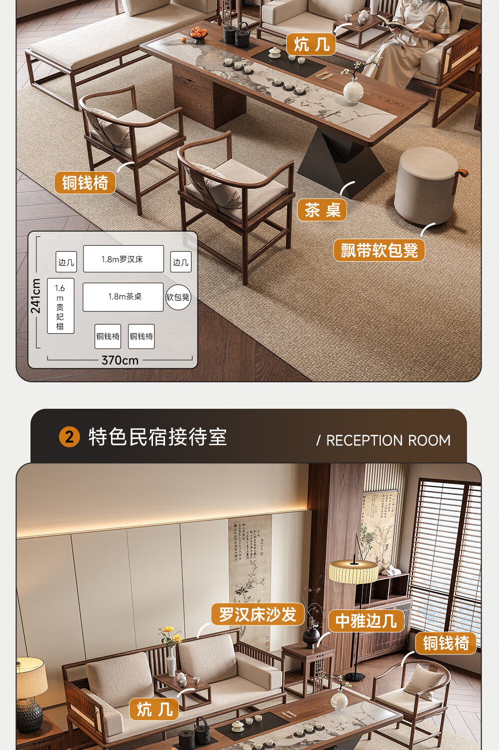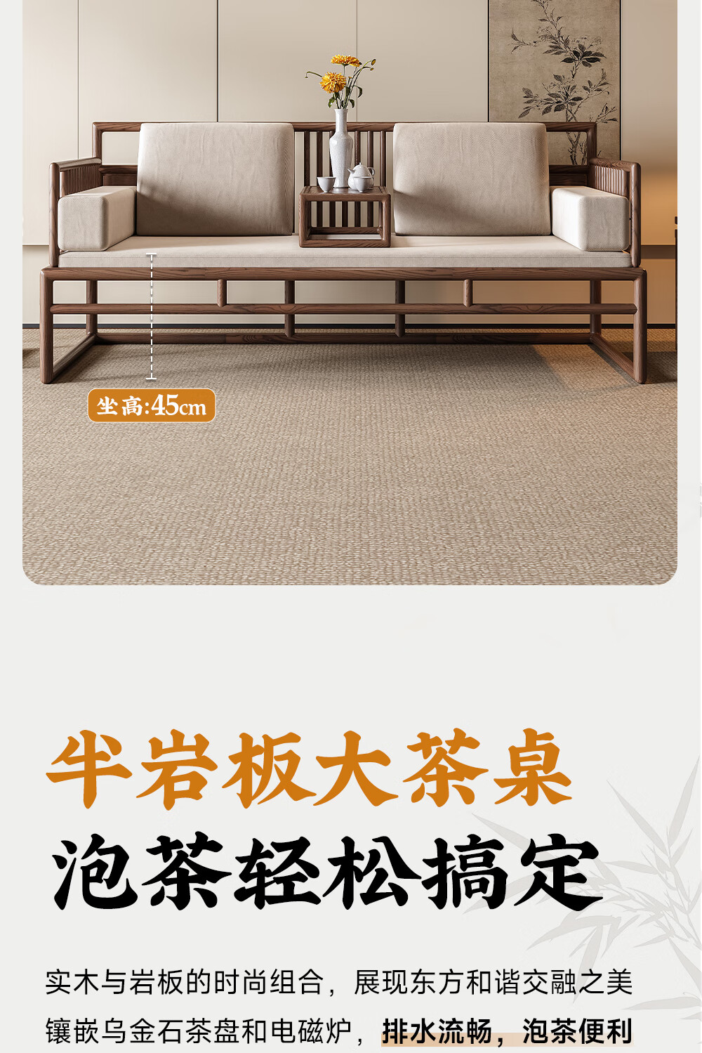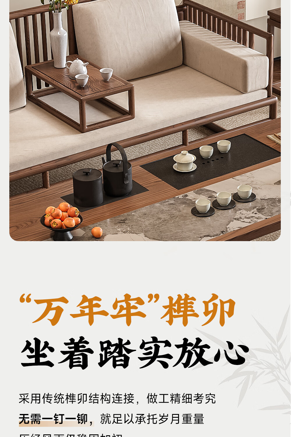 Ji gift Song Dynasty aesthetic ash wood Arhat bed tea table and chair combination new Chinese style solid wood sofa coffee table set 2026 new style ash wood 1.8m tea table + 1.8m Arhat bed + 1.6m imperial concubine couch + 2 main chairs + stool