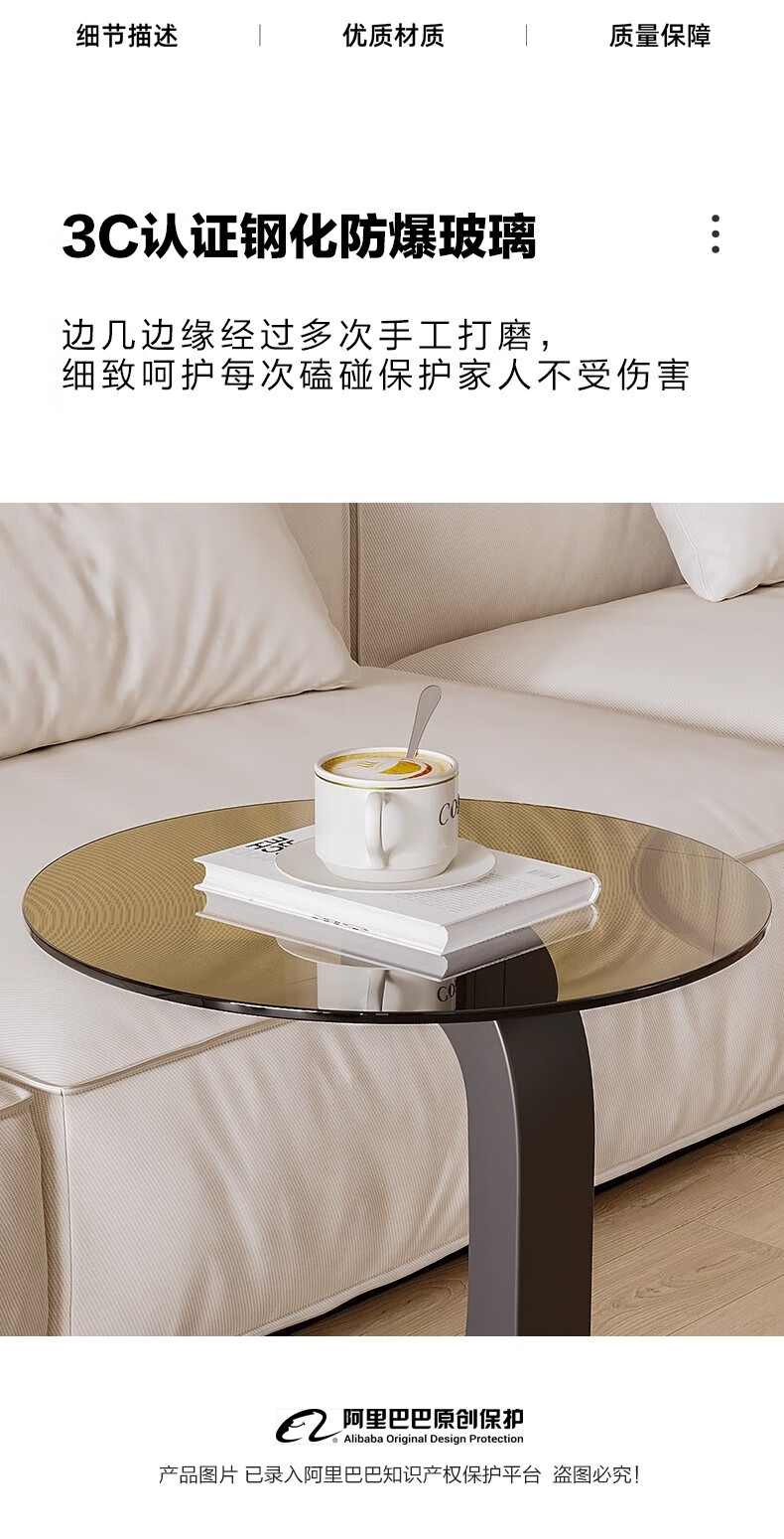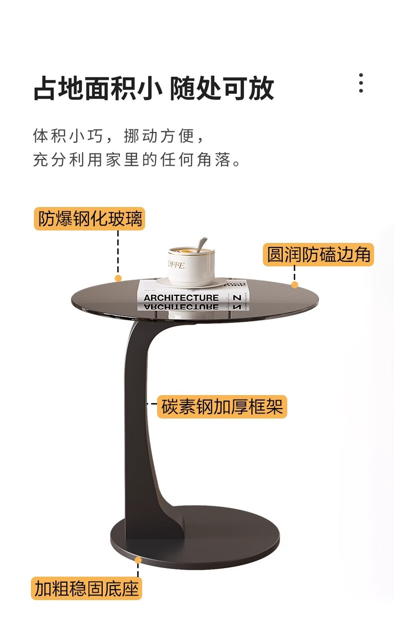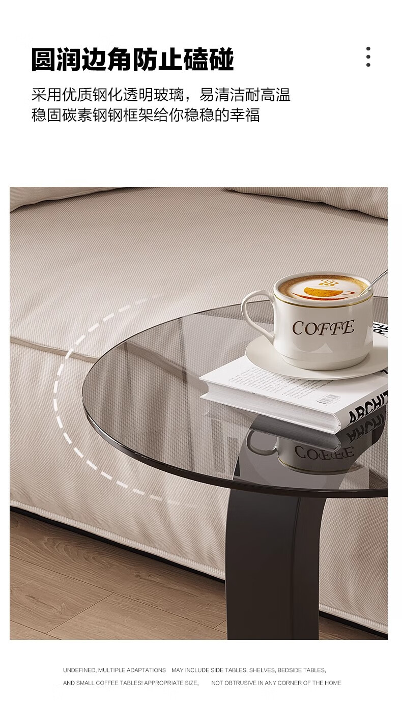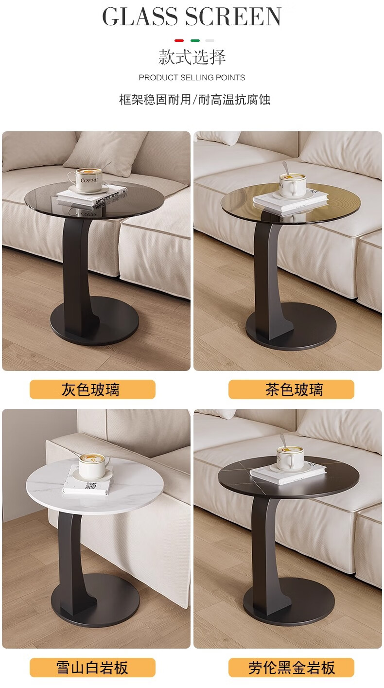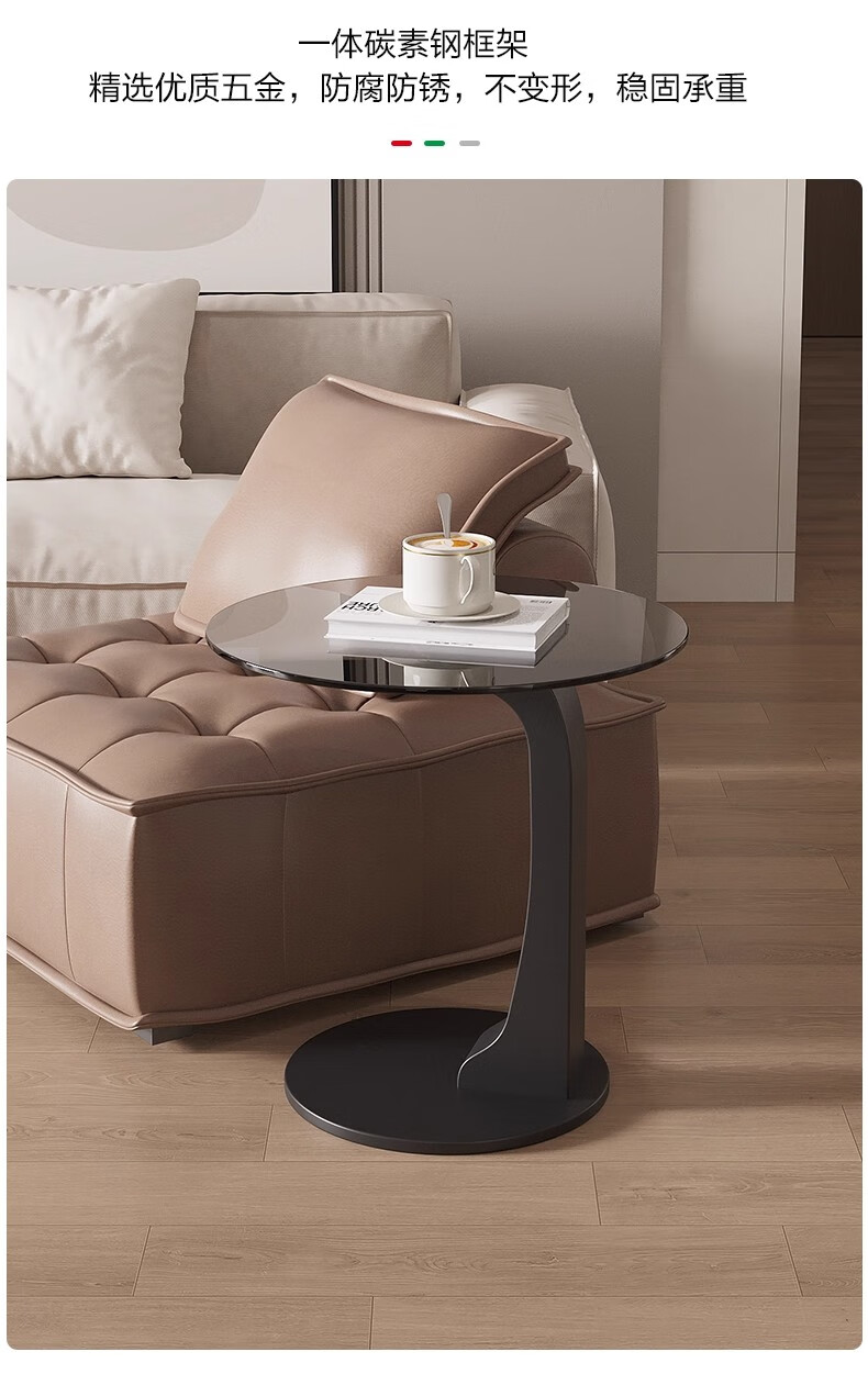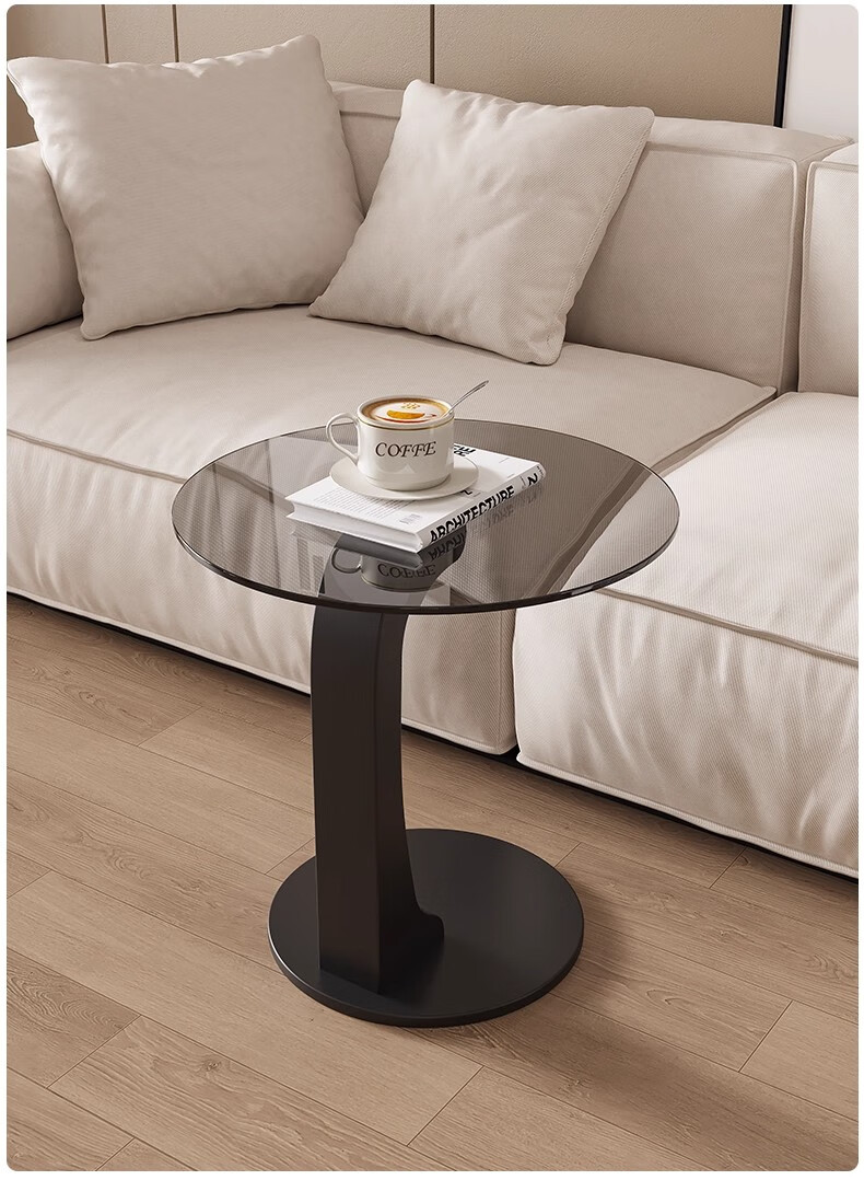 Sofa side table living room coffee table small table creative minimalist small round table glass corner table light luxury high-end side table black - diameter 60 height 50cm explosion-proof glass