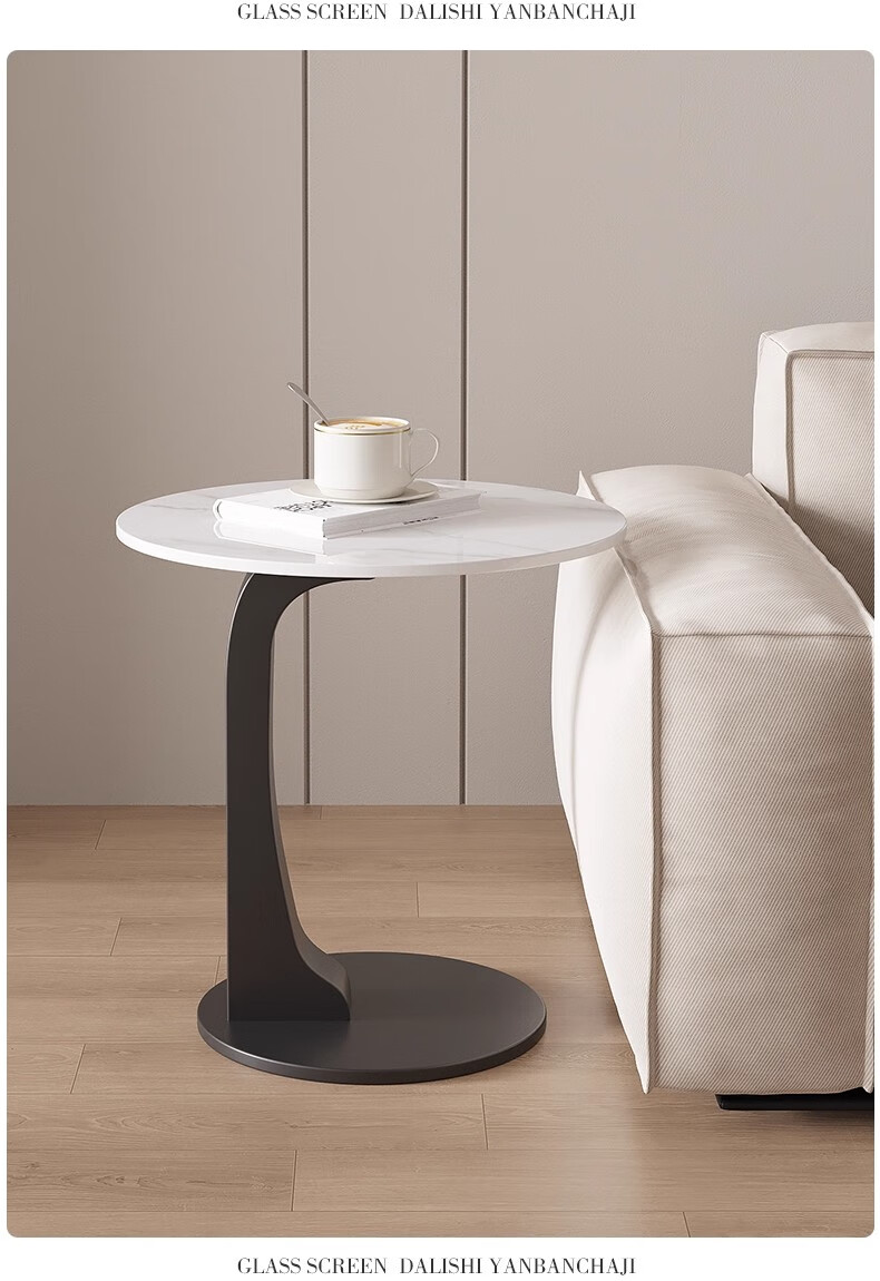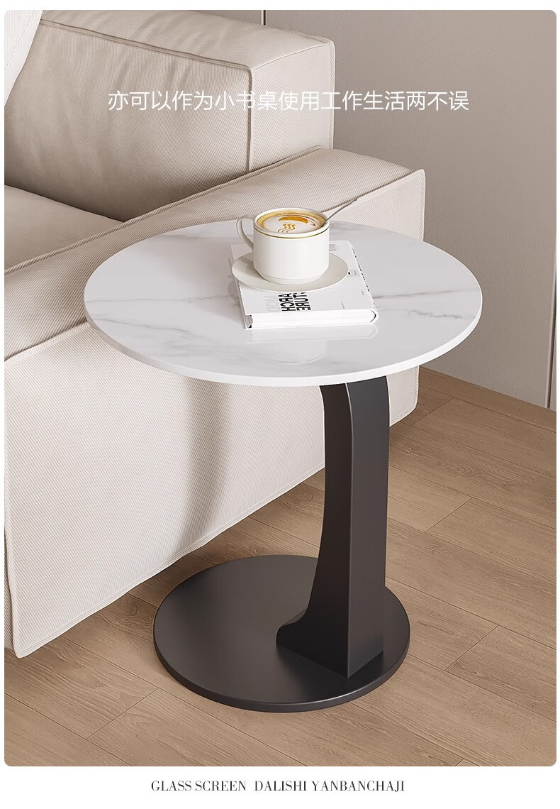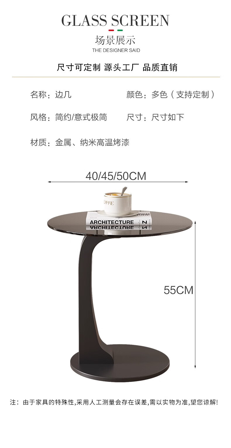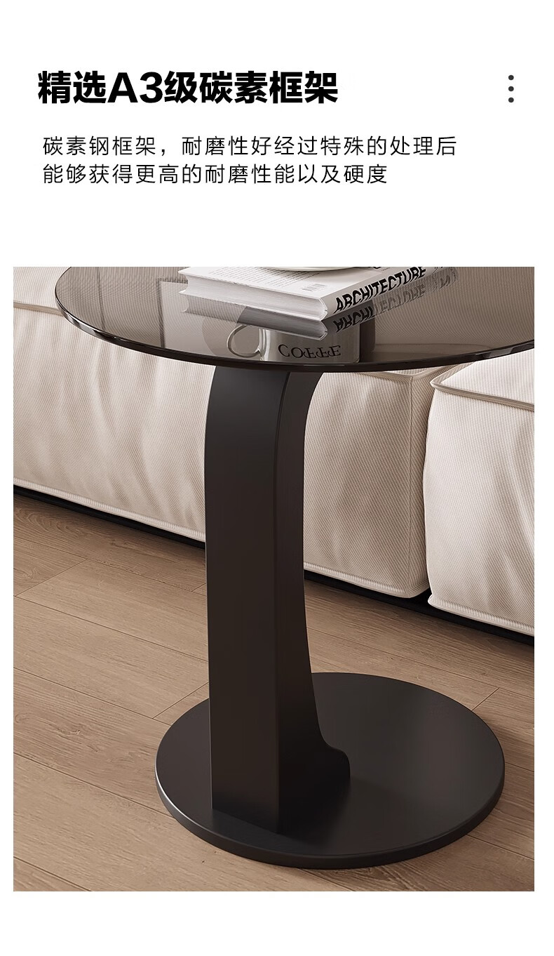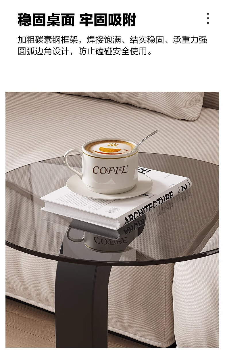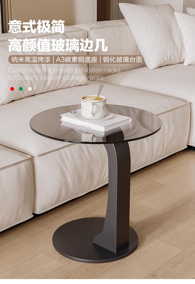 Sofa side table living room coffee table small table creative minimalist small round table glass corner table light luxury high-end side table black - diameter 60 height 50cm explosion-proof glass