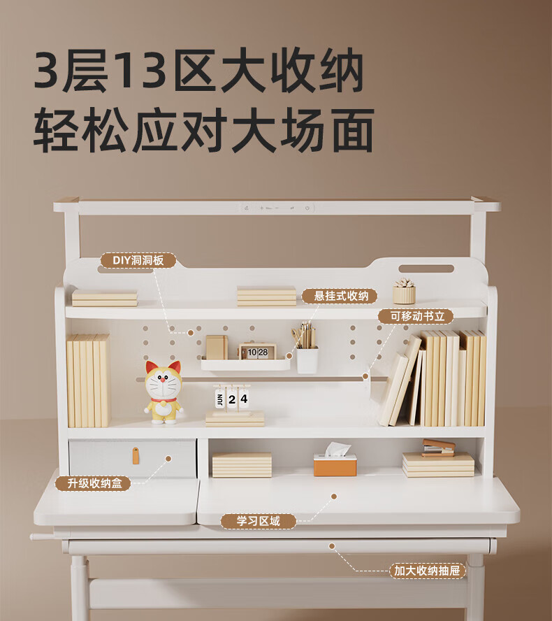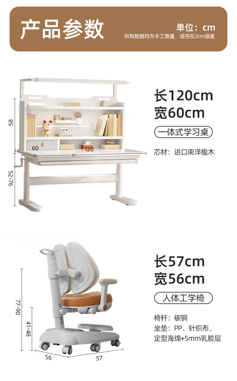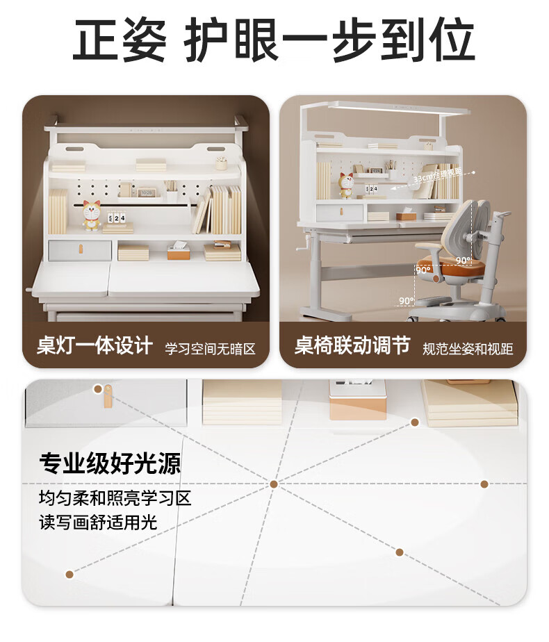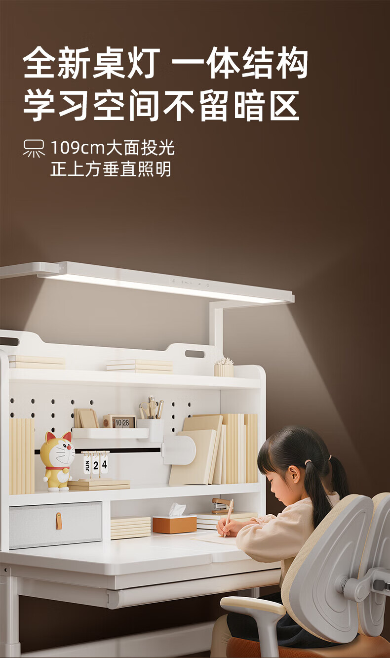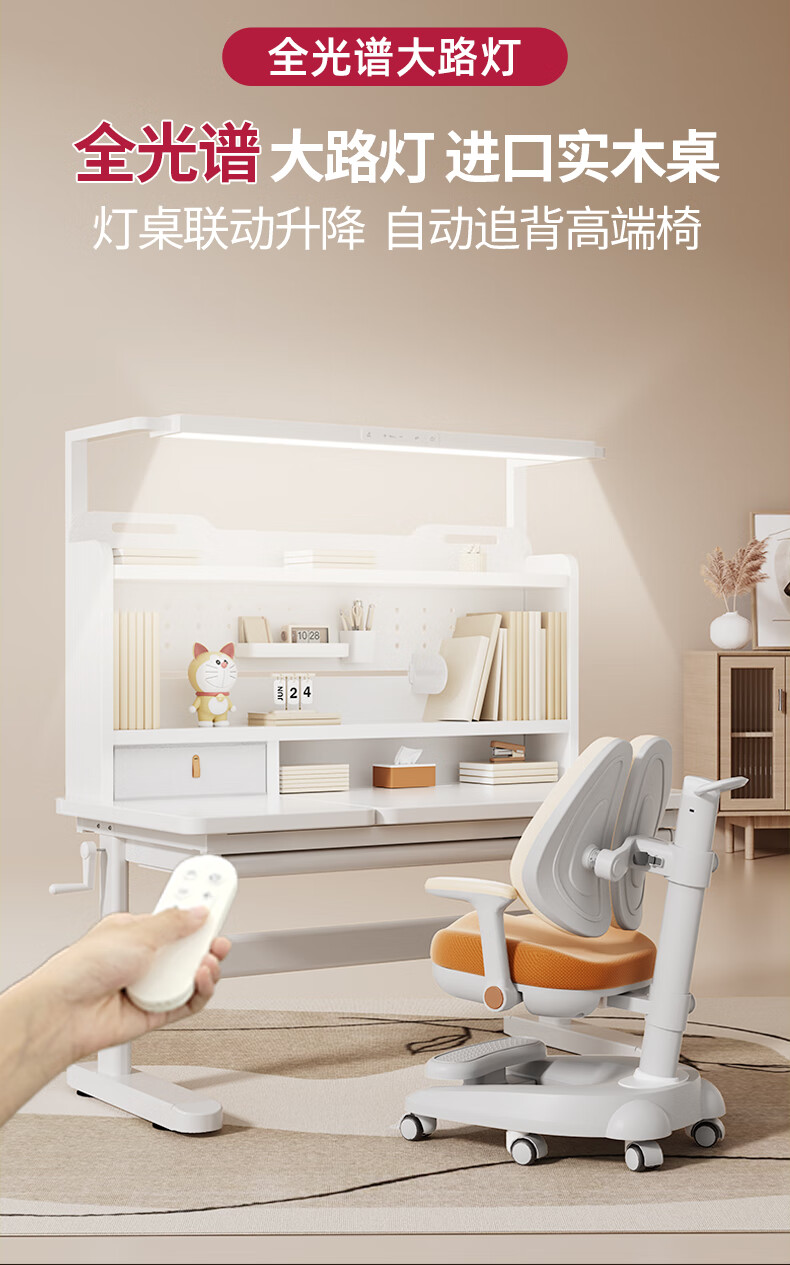 Tongzhuangyuan children's solid wood study desk and chair k120 set multi-functional writing desk for high school students and primary school students 3-18 years old 1.2 meters solid wood table + spectrum street lamp + back chair Free learning gift package