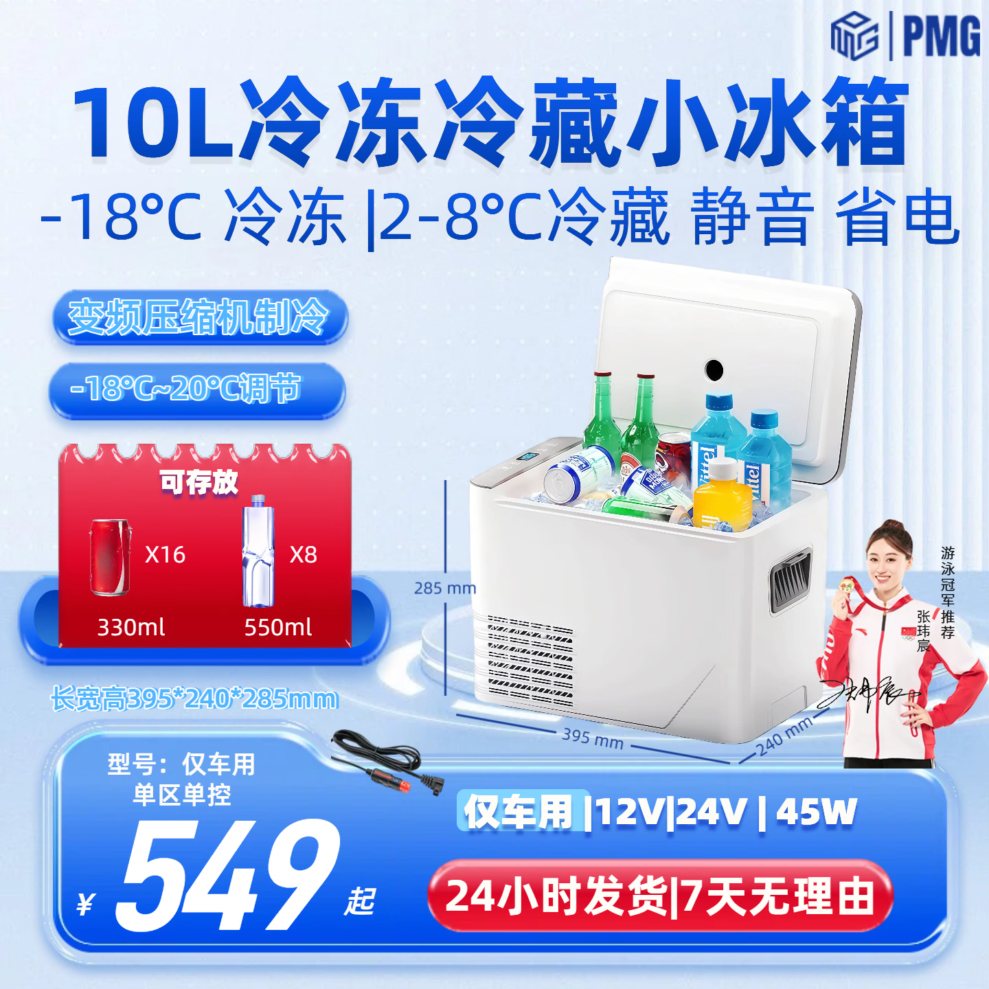 PMG Car Refrigerator Car Home Dual-Purpose Refrigeration and Freezing Fresh Milk Storage Breast Milk Ice Cream Compressor Small Refrigerator Cloud White (-18~20 C) Car Home Dual-Purpose Refrigeration and Freezing Breast Milk Storage Refrigerator 10L