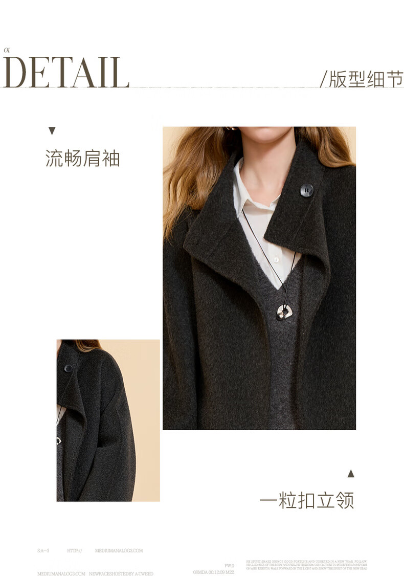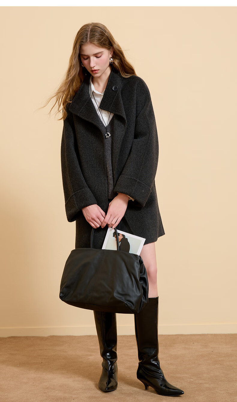 Tricolor Sheep Wool 2025 Winter New Stand Collar Double-sided Wool Coat Mid-Length Loose Coat M Dark Gray M 160/84A