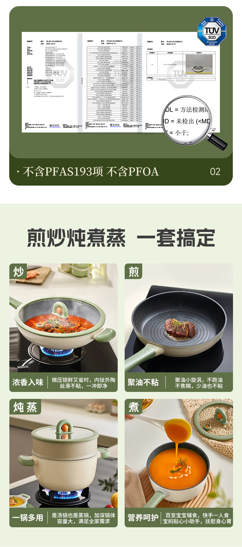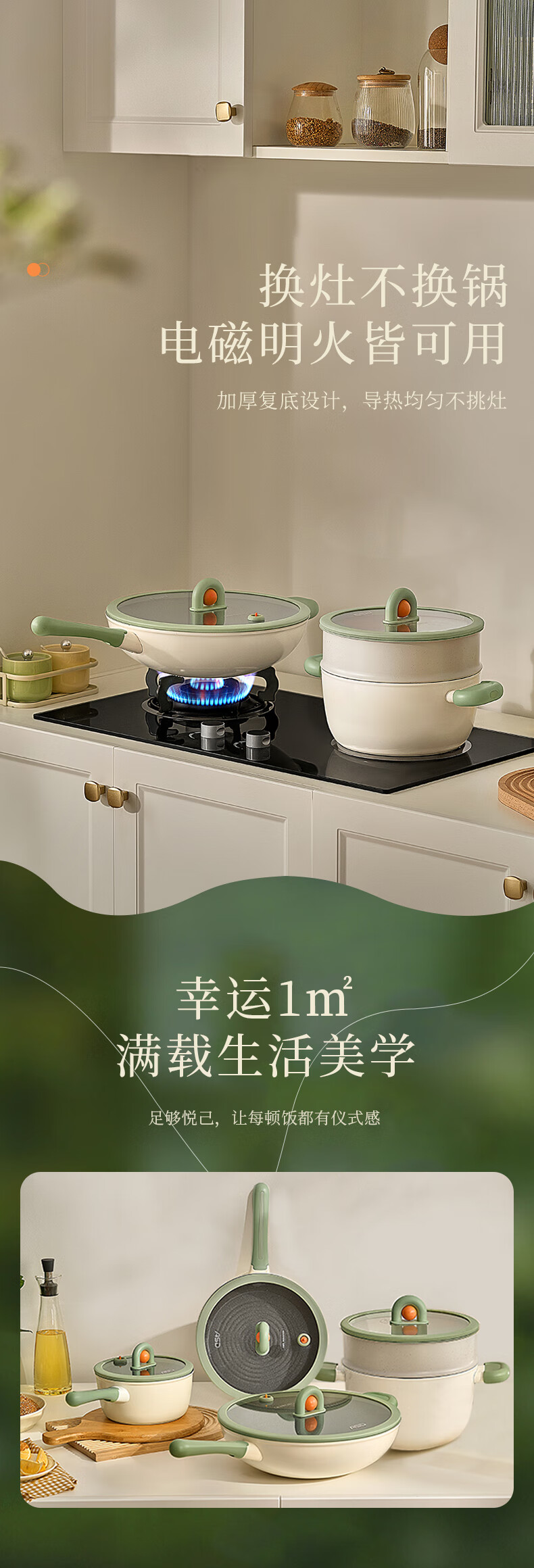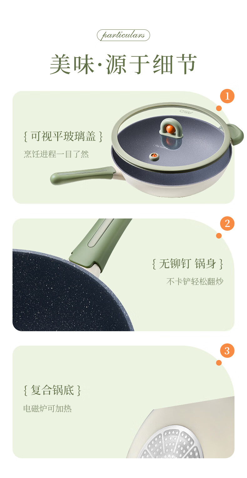 ASD's new micro-pressure titanium non-stick pan household full set of pots and pans, frying, soup, steamer, suitable for induction cooker exclusive set-kitchen 9-piece set_Kitchen Exclusive