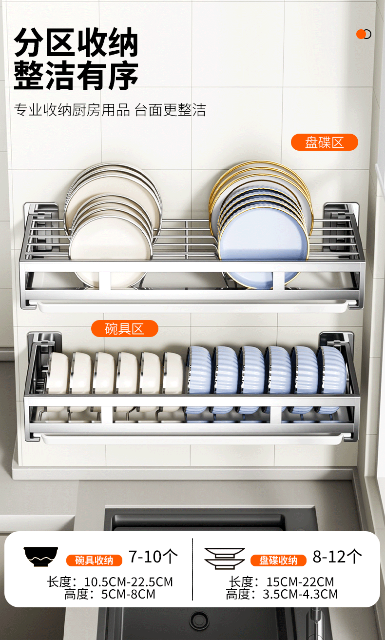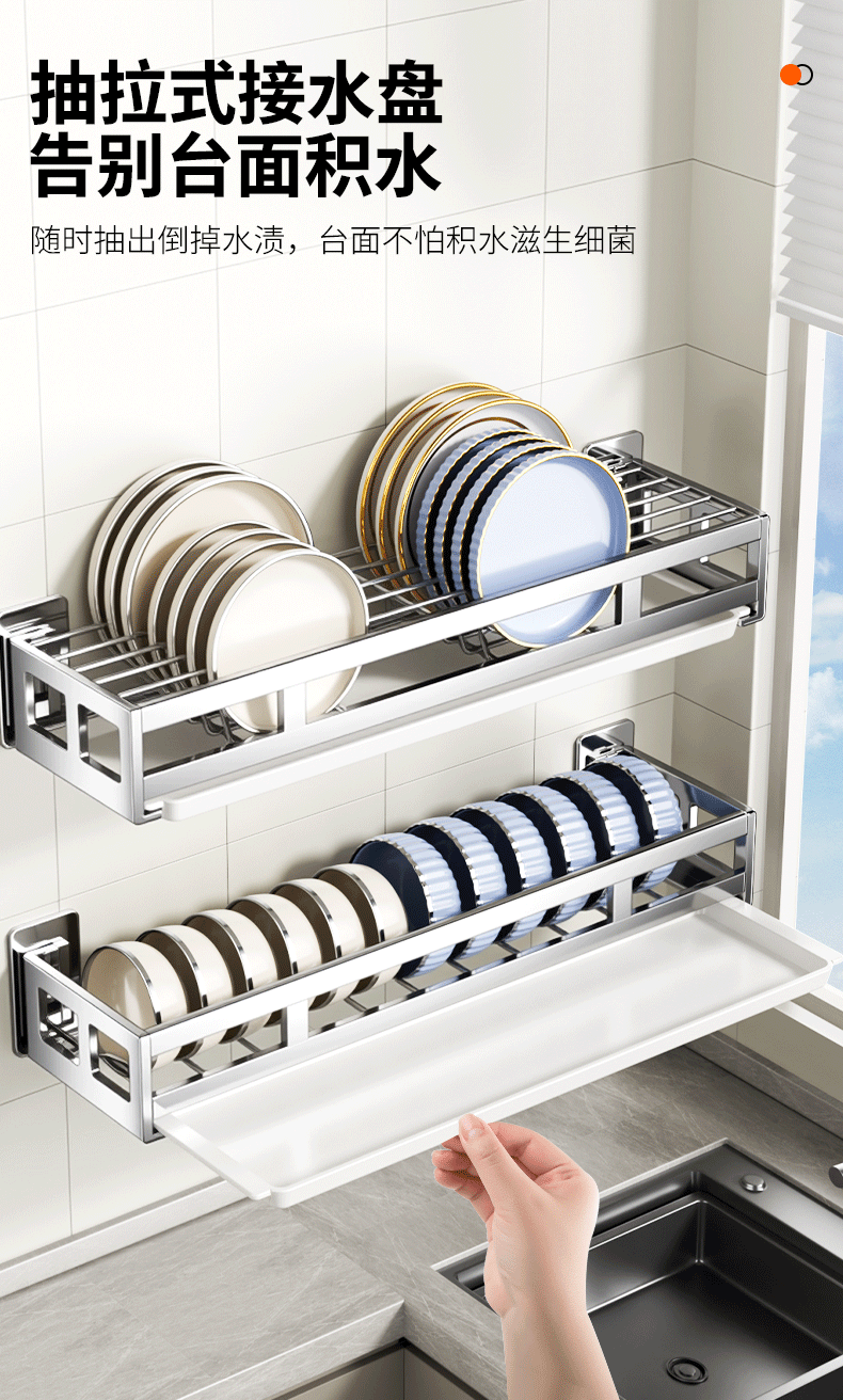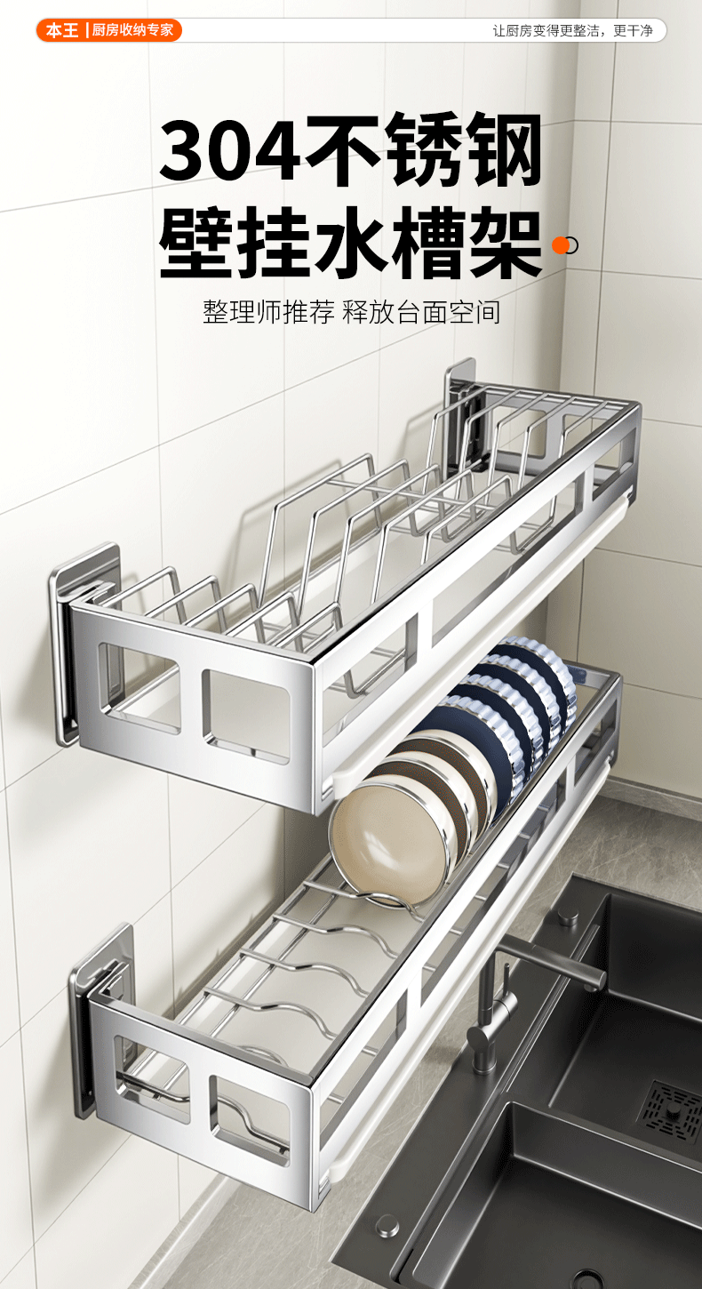 Benwang (BW) 304 stainless steel kitchen dish storage rack drain bowl rack wall-mounted bowl storage rack household drain rack new product special offer wall-mounted dish rack - free drain tray