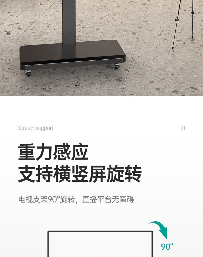 Complete universal horizontal and vertical screen rotating TV bracket live broadcast advertising hanger floor-standing wheeled cart black model 26-55 inches universal horizontal screen or vertical screen installation (cannot be rotated