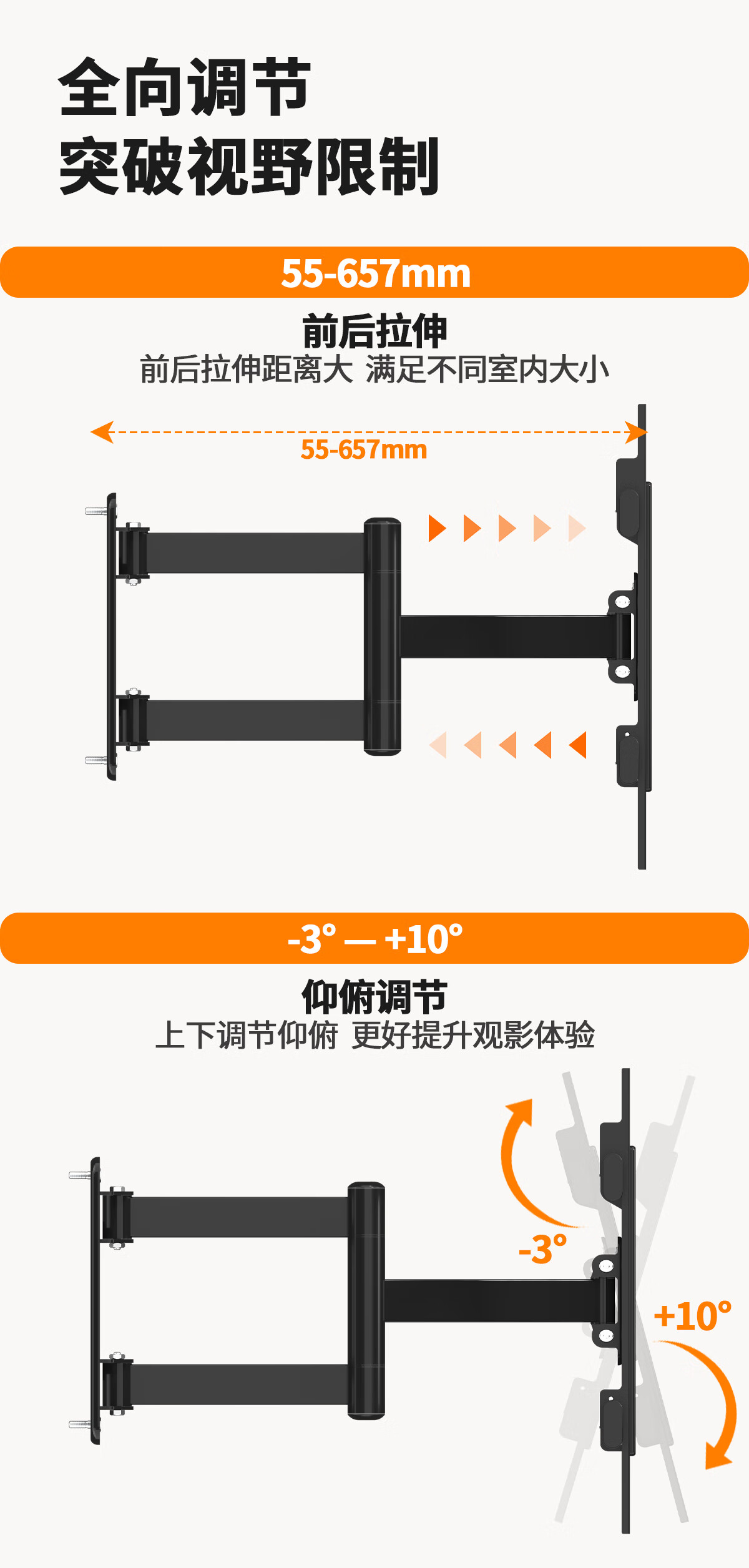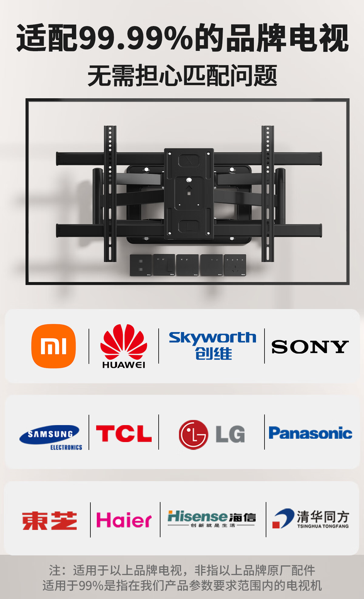 Xingkaishi TV Mount TV Stand Telescopic Rotating Wall Mount Suitable for Skyworth Hisense TCL Konka Huawei Smart Screen and other TV stands fixed wall-mounted load-bearing 200kg, universal for all brands 32-50 inches, load-bearing 60 catties