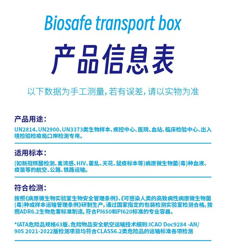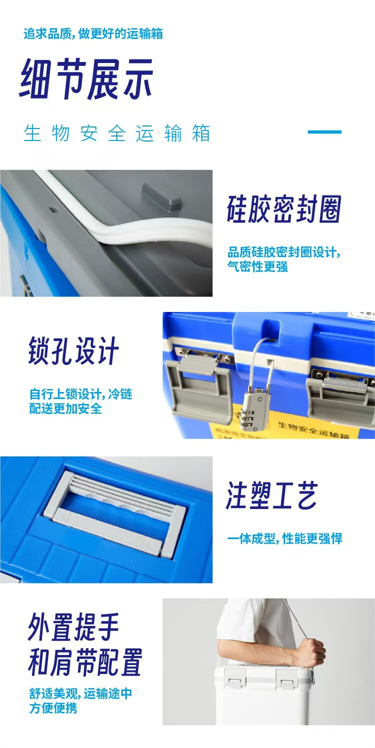 Shiji Cold Chain Biosafety Transport Box UN2814 Special Insulated Refrigerator for Inspection Medical Blood Sample Transfer Box 12L Biosafety Transport Box Light Blue
