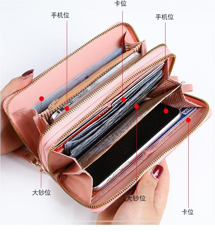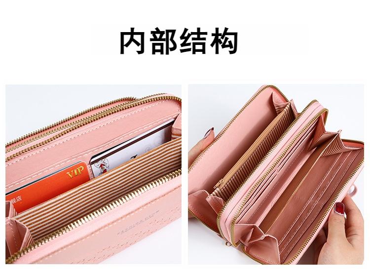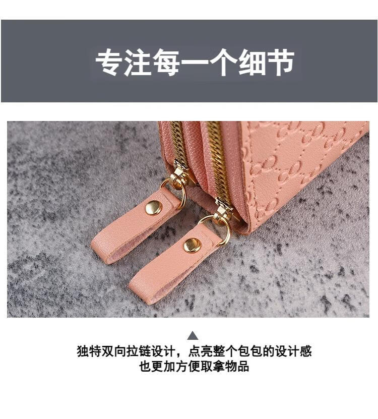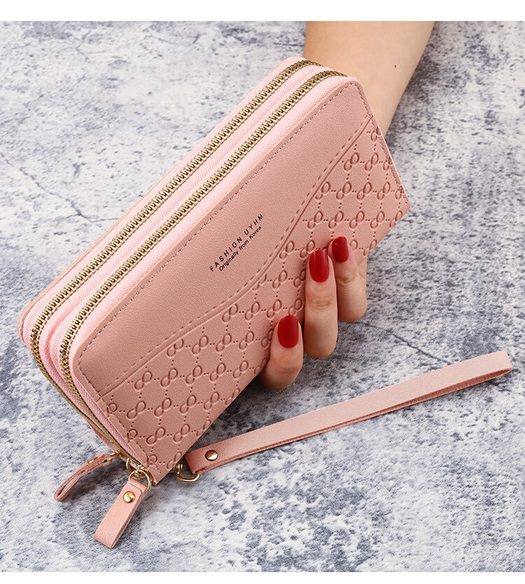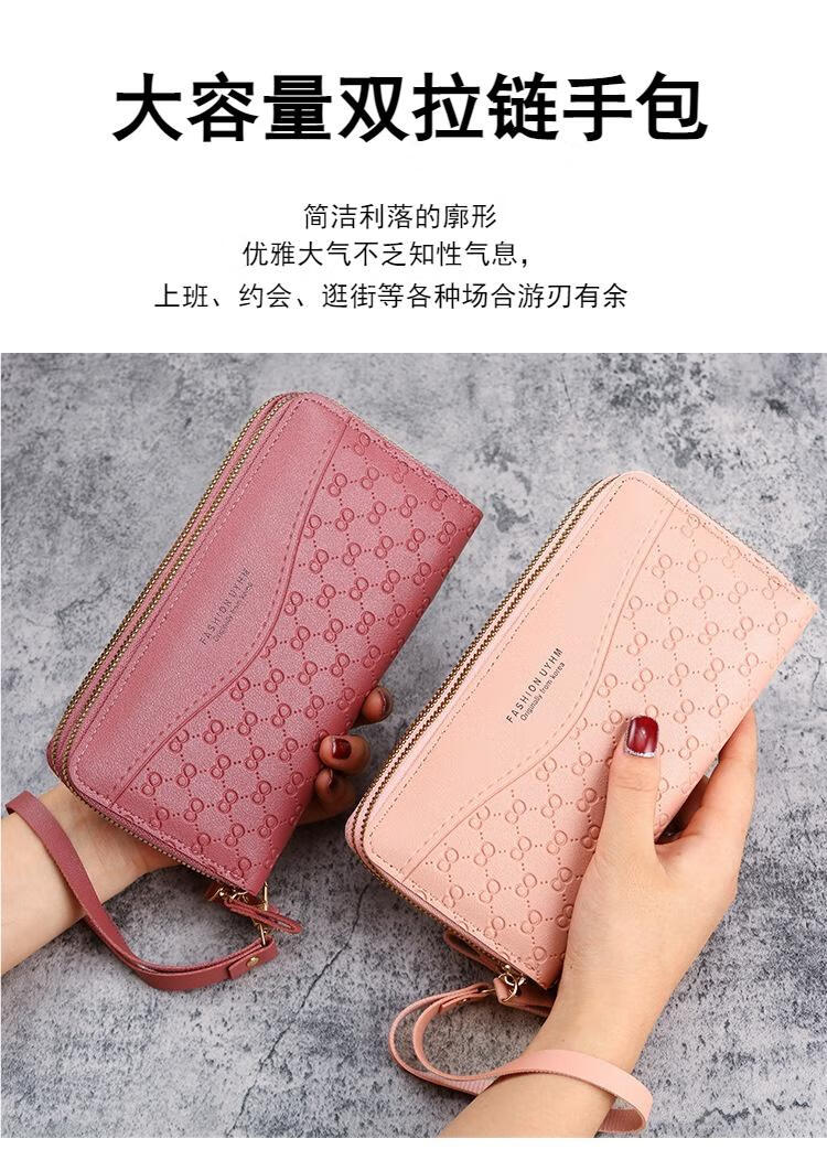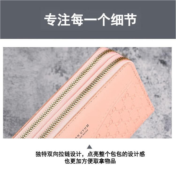 Muni 2026 New Wallet Women's Long Zipper Wallet Embossed Large Capacity Mom Mobile Phone Coin Clutch Passport Double-layer Zipper Wallet Pink 19.5*3.5*10