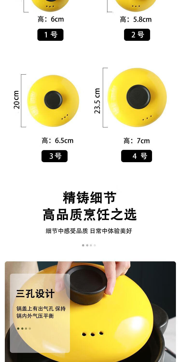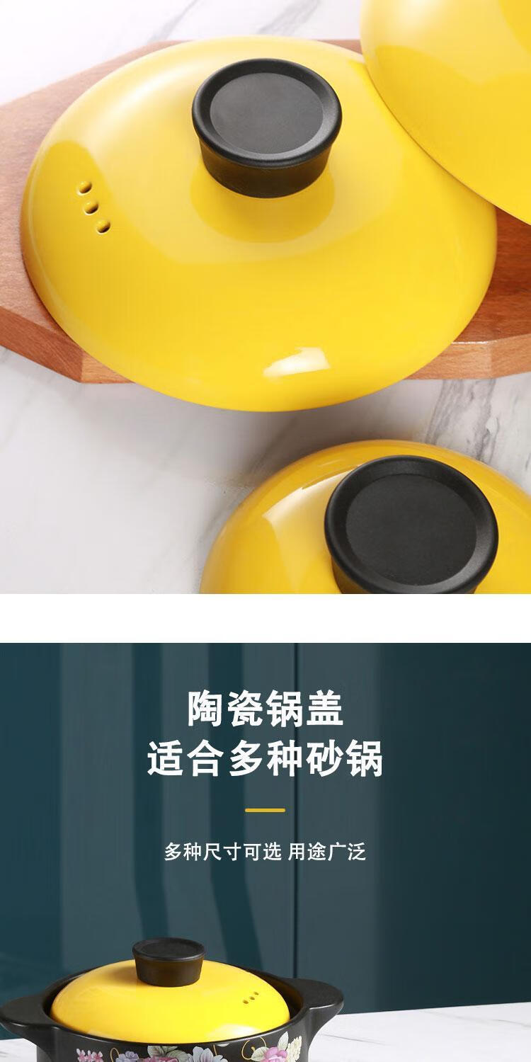 Raft core casserole lid single cover 23cm ceramic casserole lid accessories household thermal insulation anti-scalding lid soup pot lid milk pot stew pot pot Kangshu Japanese yellow lid outer diameter 15CM