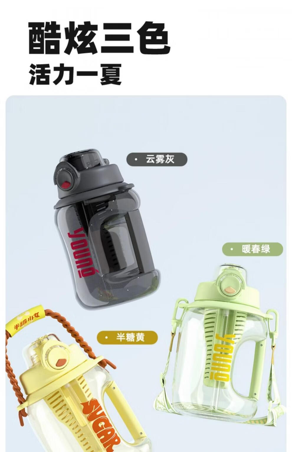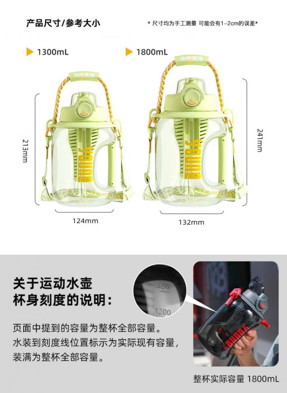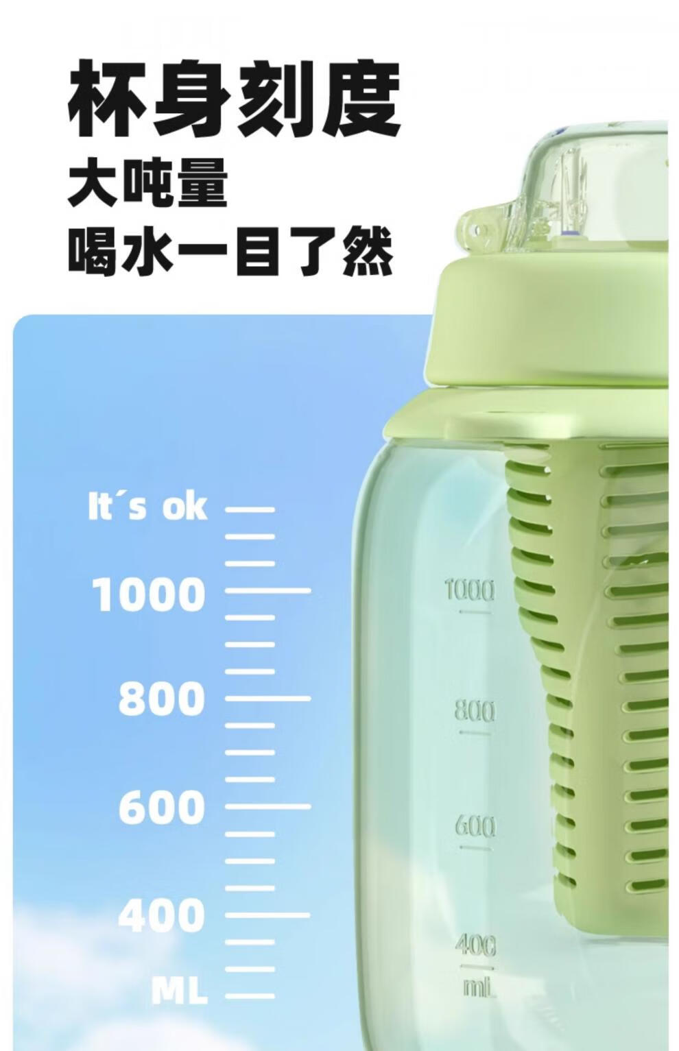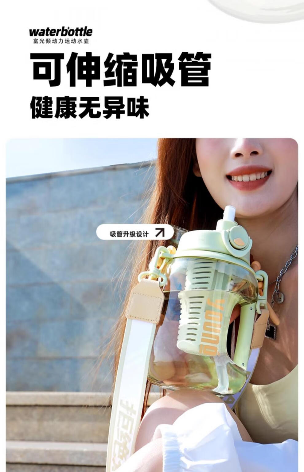 Fuguang water cup, good-looking cup with straw, large capacity, tritan bucket, sports water bottle for girls, warm spring green, reject banana green 1300ml