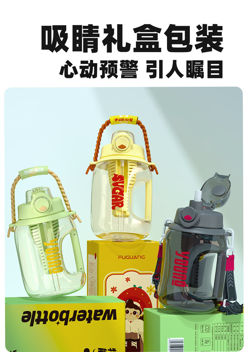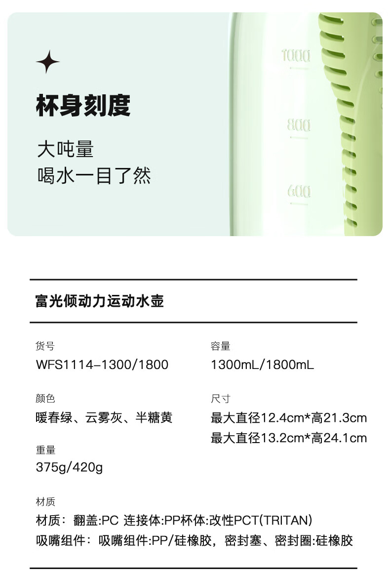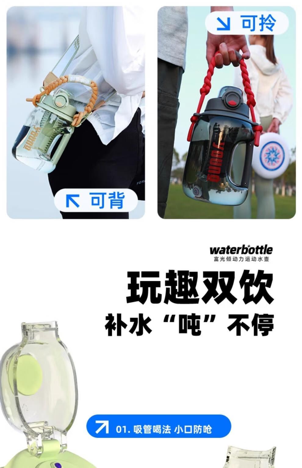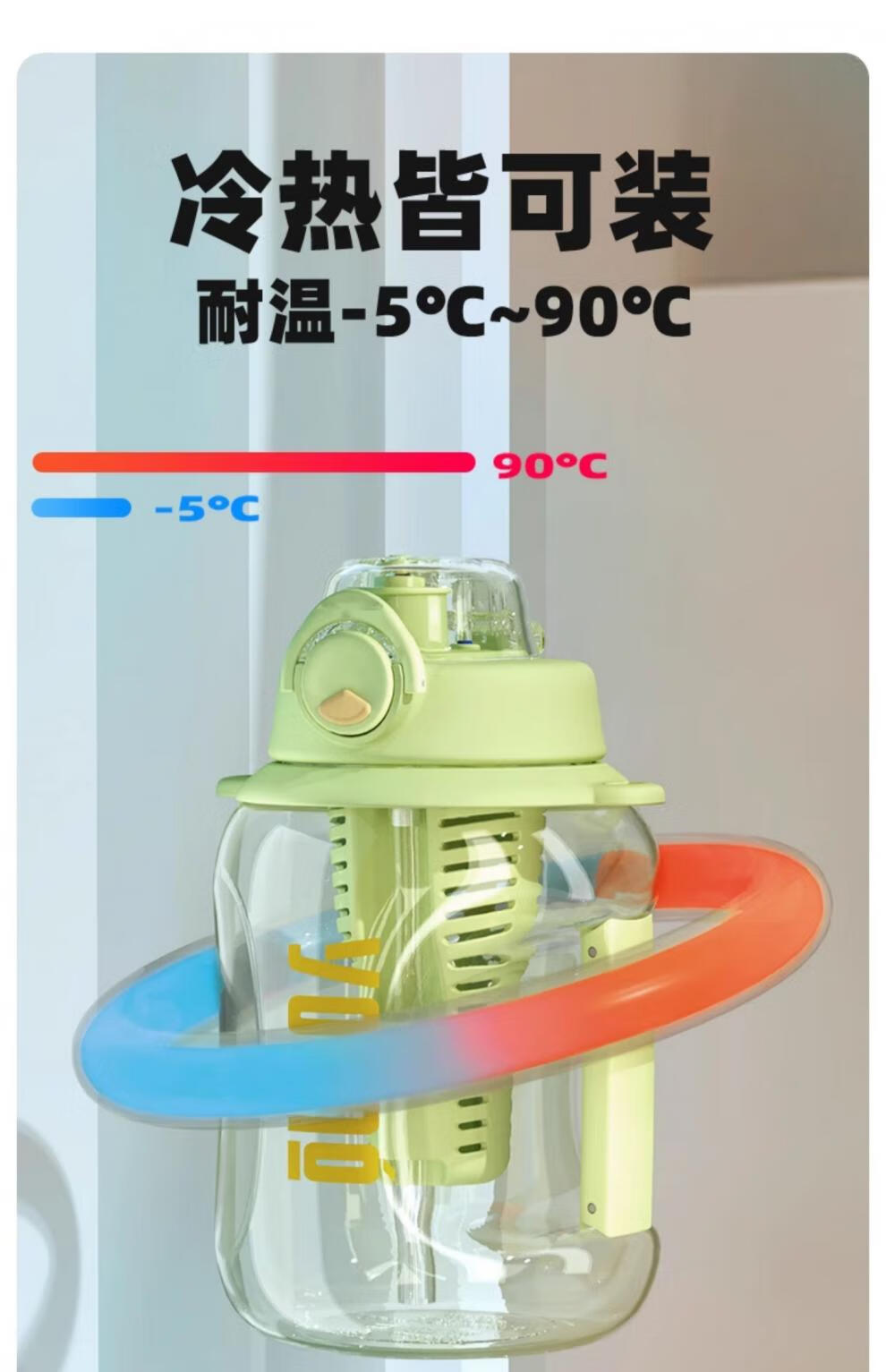 Fuguang water cup, good-looking cup with straw, large capacity, tritan bucket, sports water bottle for girls, warm spring green, reject banana green 1300ml