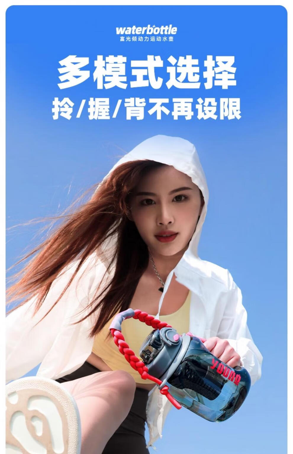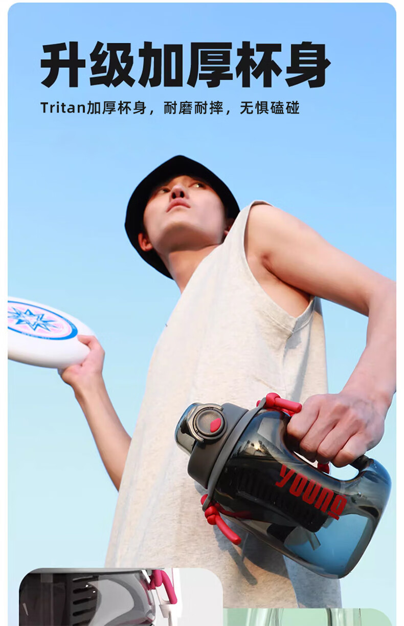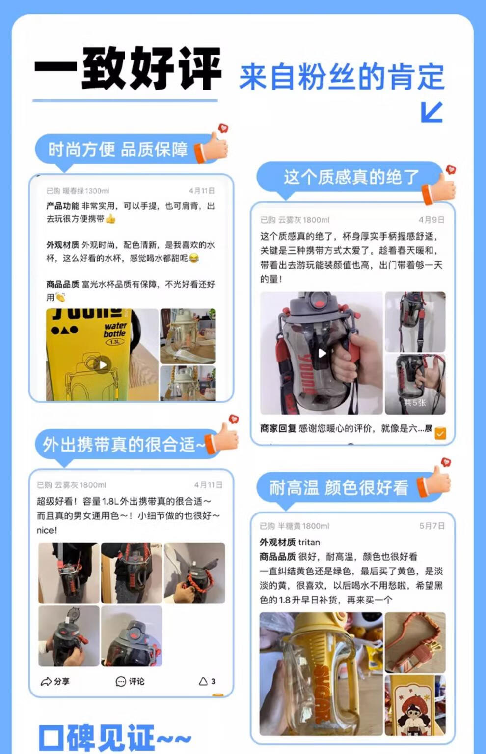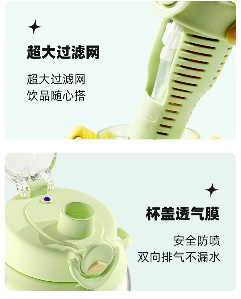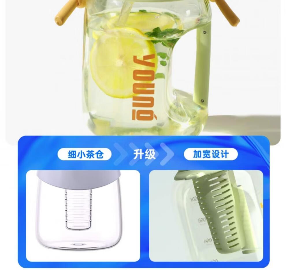 Fuguang water cup, good-looking cup with straw, large capacity, tritan bucket, sports water bottle for girls, warm spring green, reject banana green 1300ml