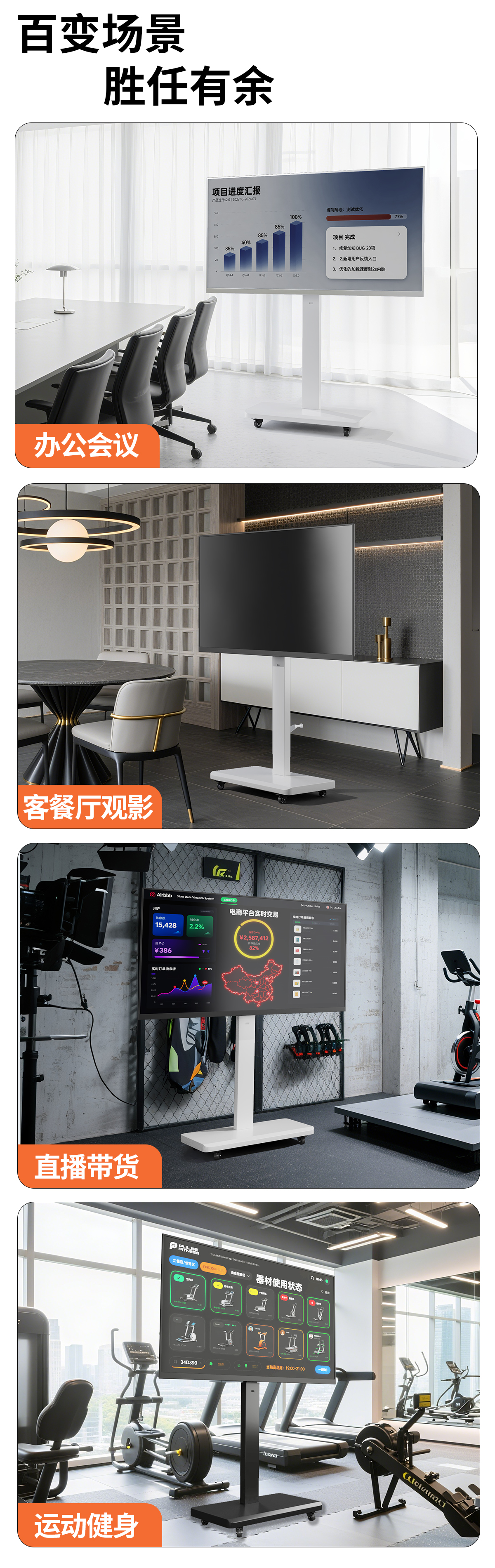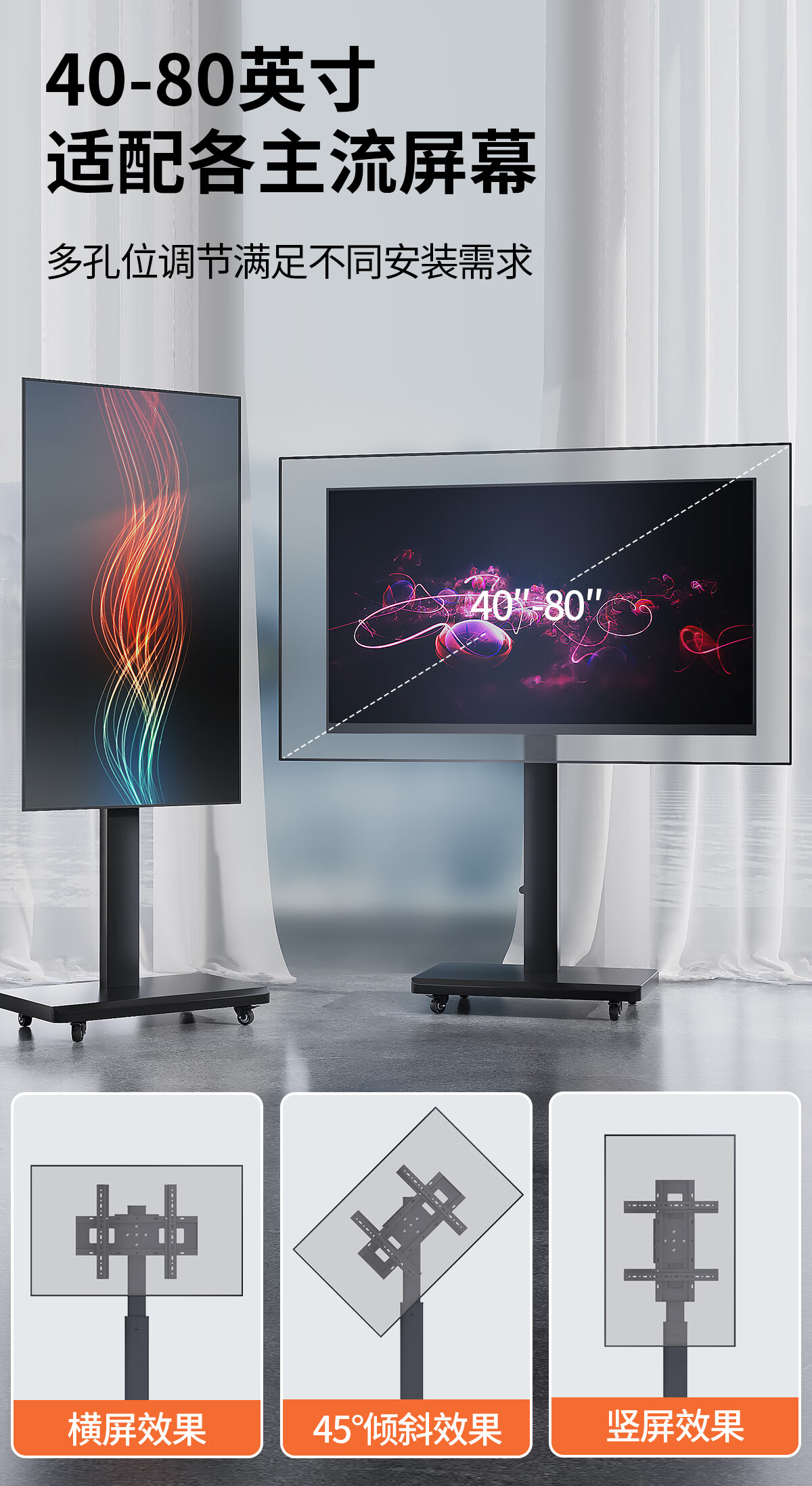 Xingkaishi TV stand removable floor-standing rotating cart display live broadcast conference universal TV hanger suitable for Cool Chuangwei JAV Hisense TCL and other shelves black 32-70 inches for home and business dual-use horizontal and vertical screen free rotation