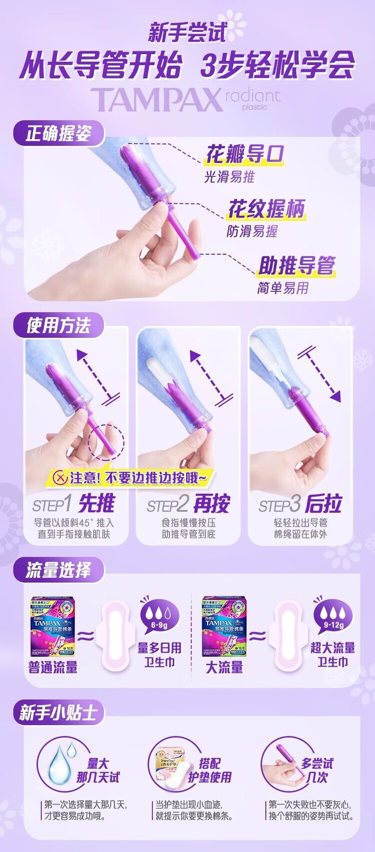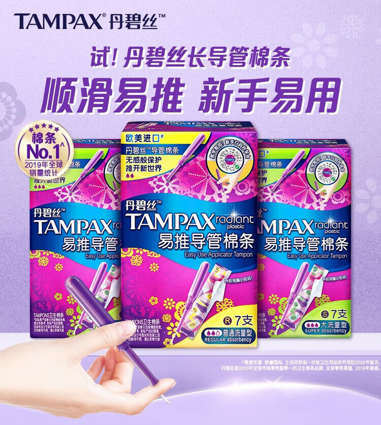 Danbis tampons high flow/normal flow menstrual swimming plug-in easy push catheter type sanitary napkin high flow 7 pieces * 1 box 7 pieces