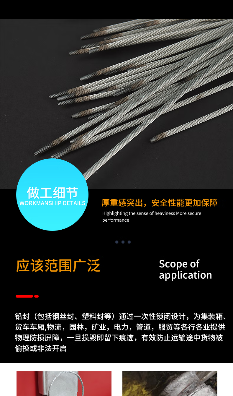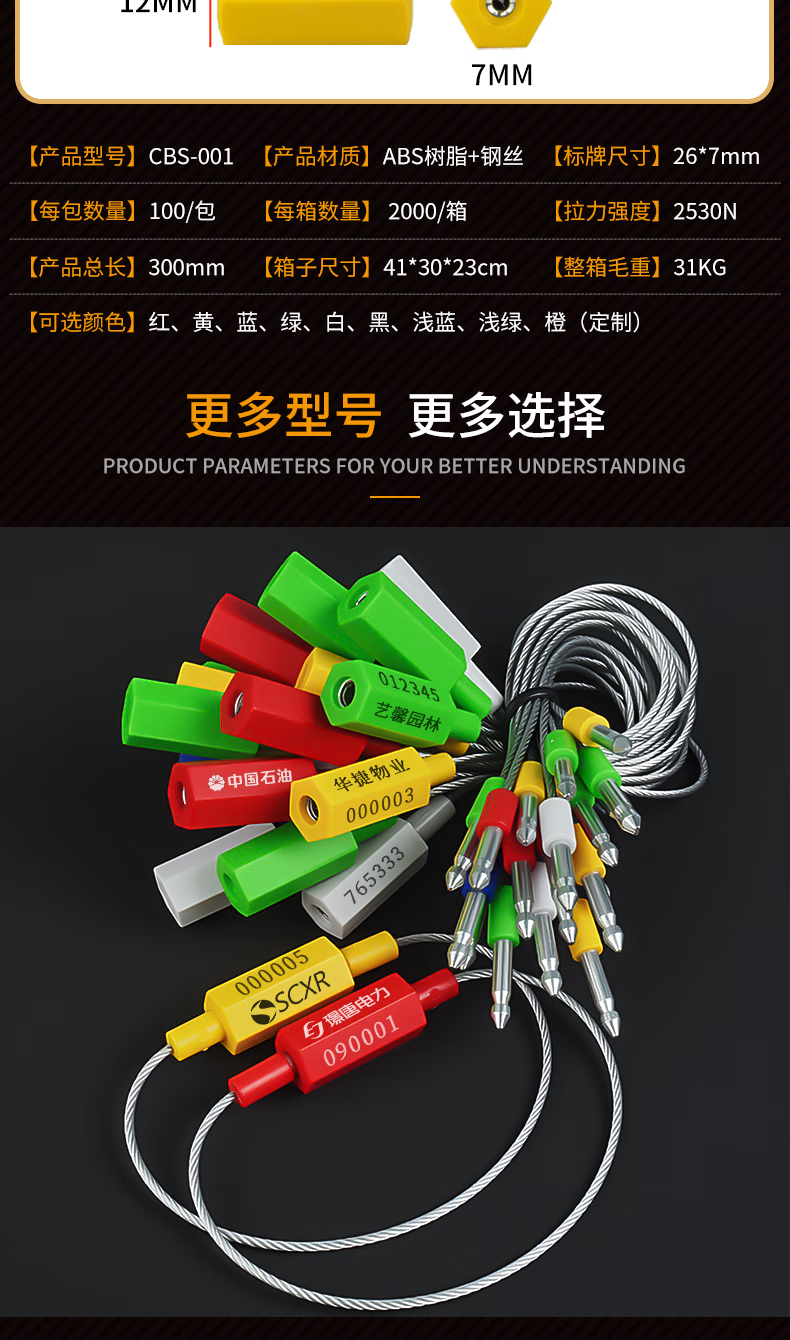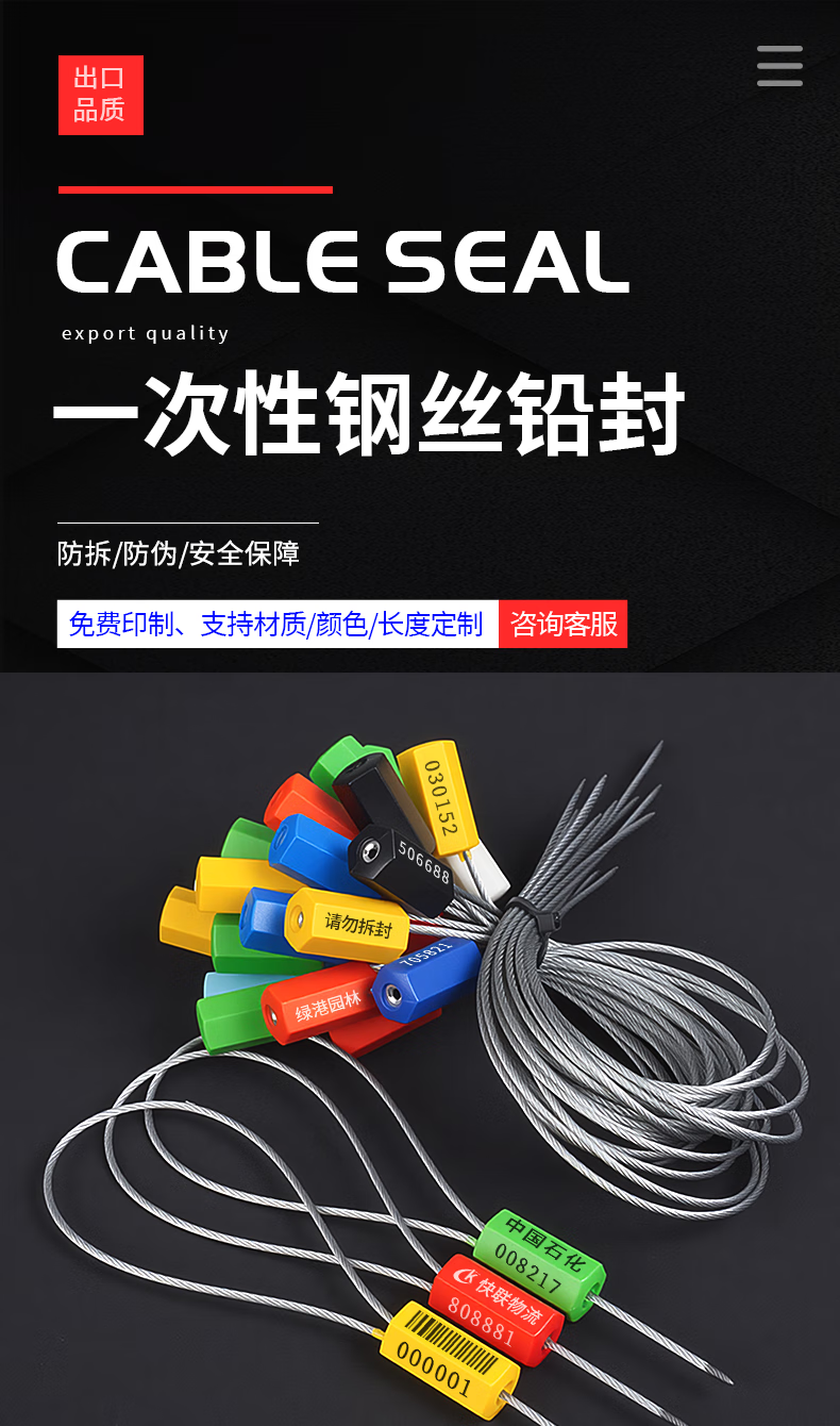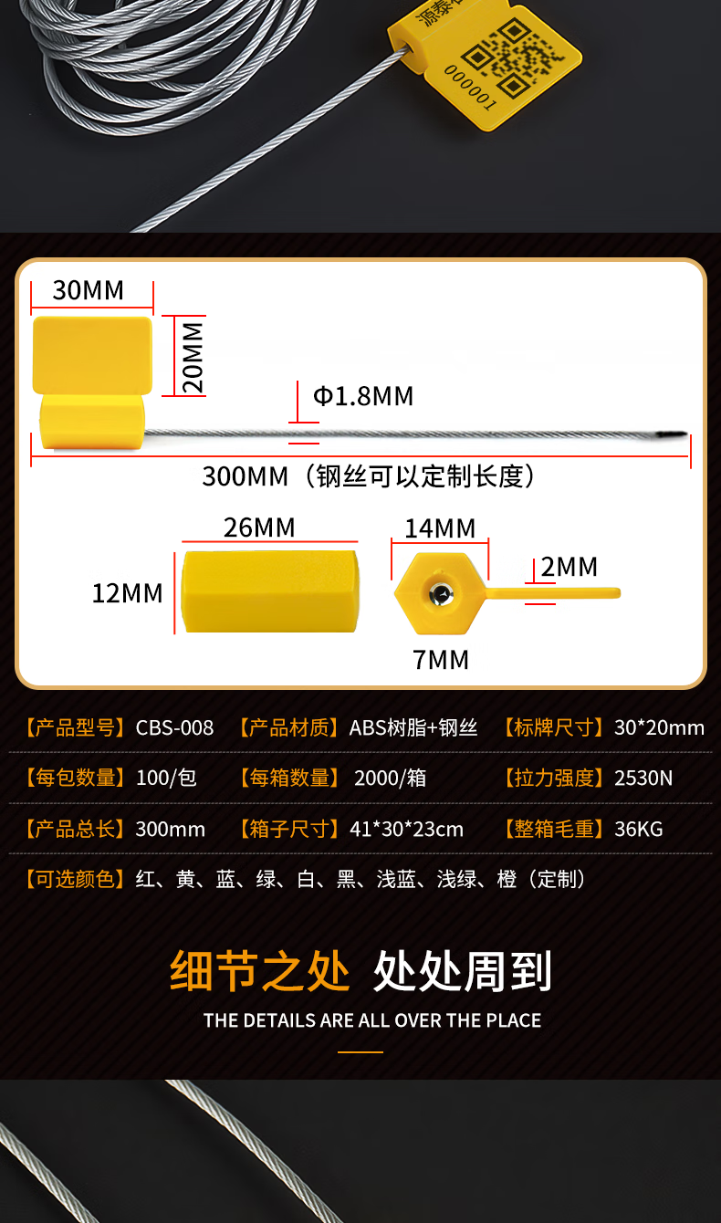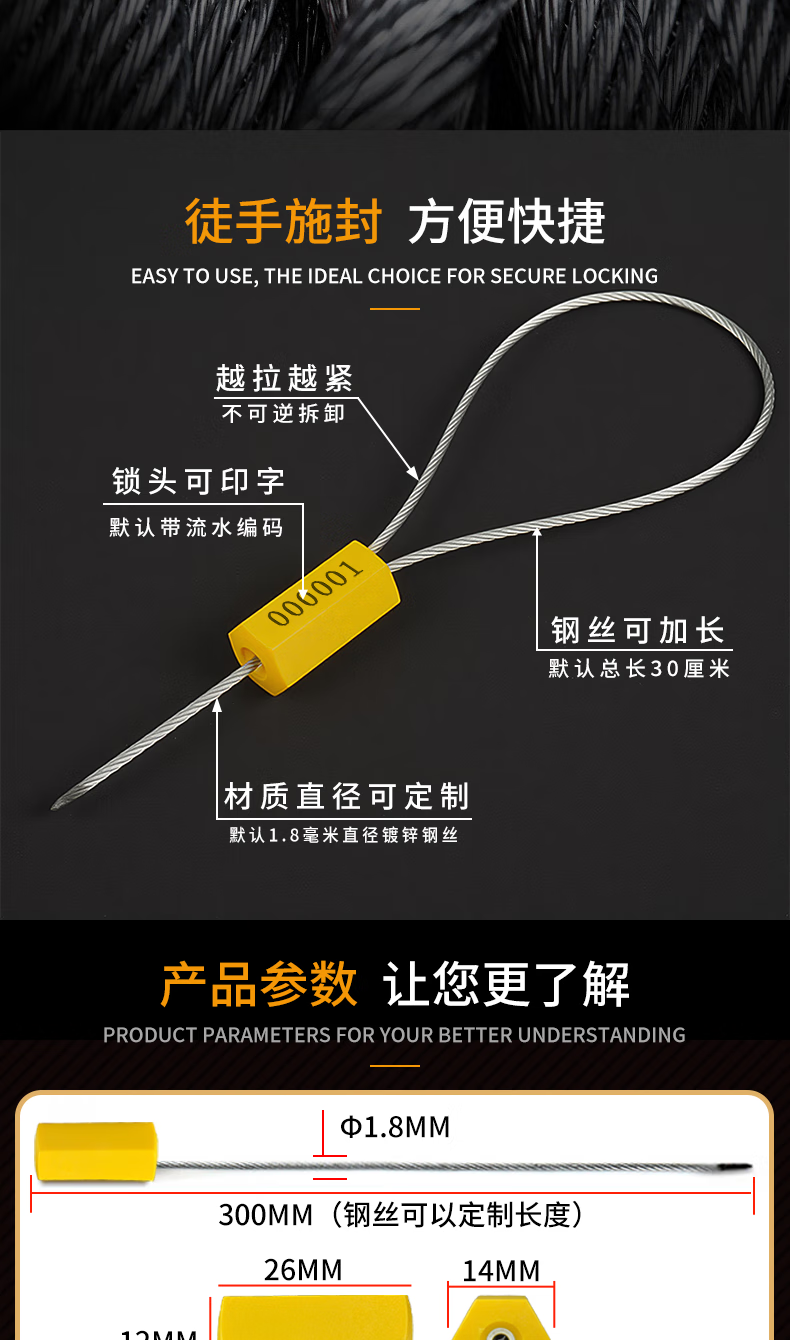 Tight disposable steel wire seal container logistics lead seal water and electricity meter seal oil tanker seal seal yellow 30cm 100 strip code