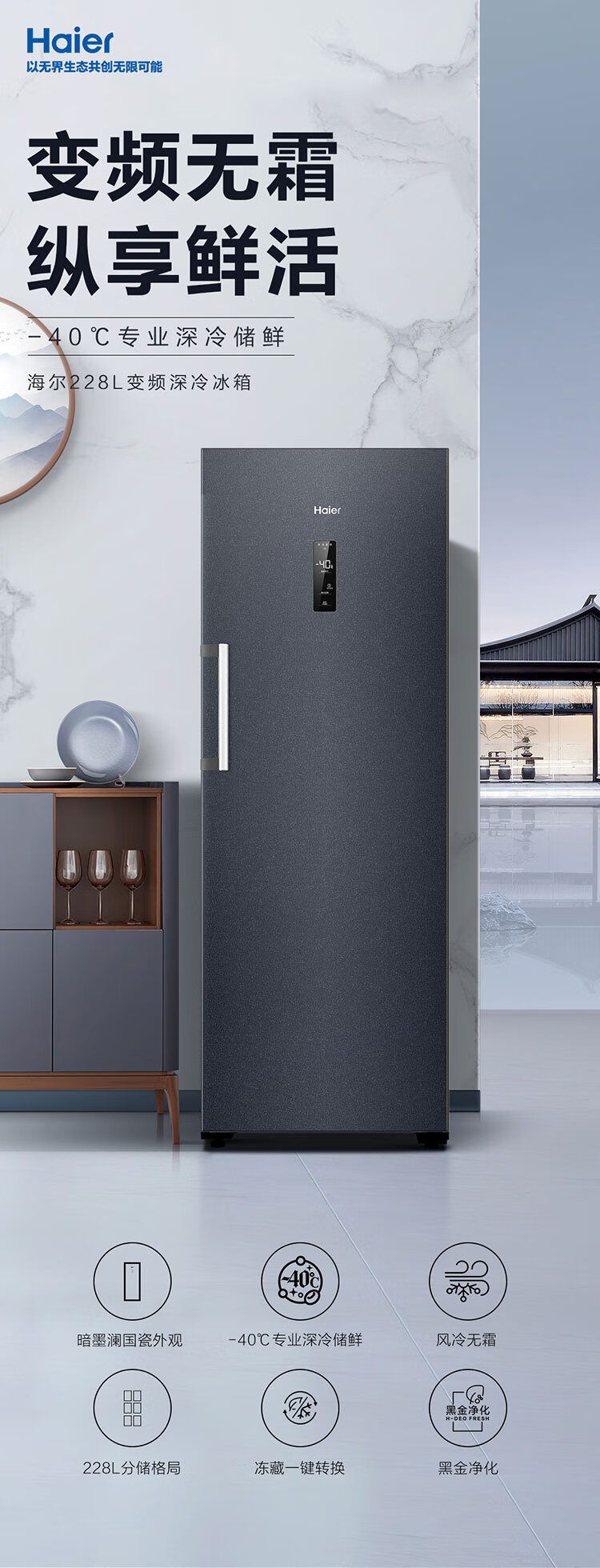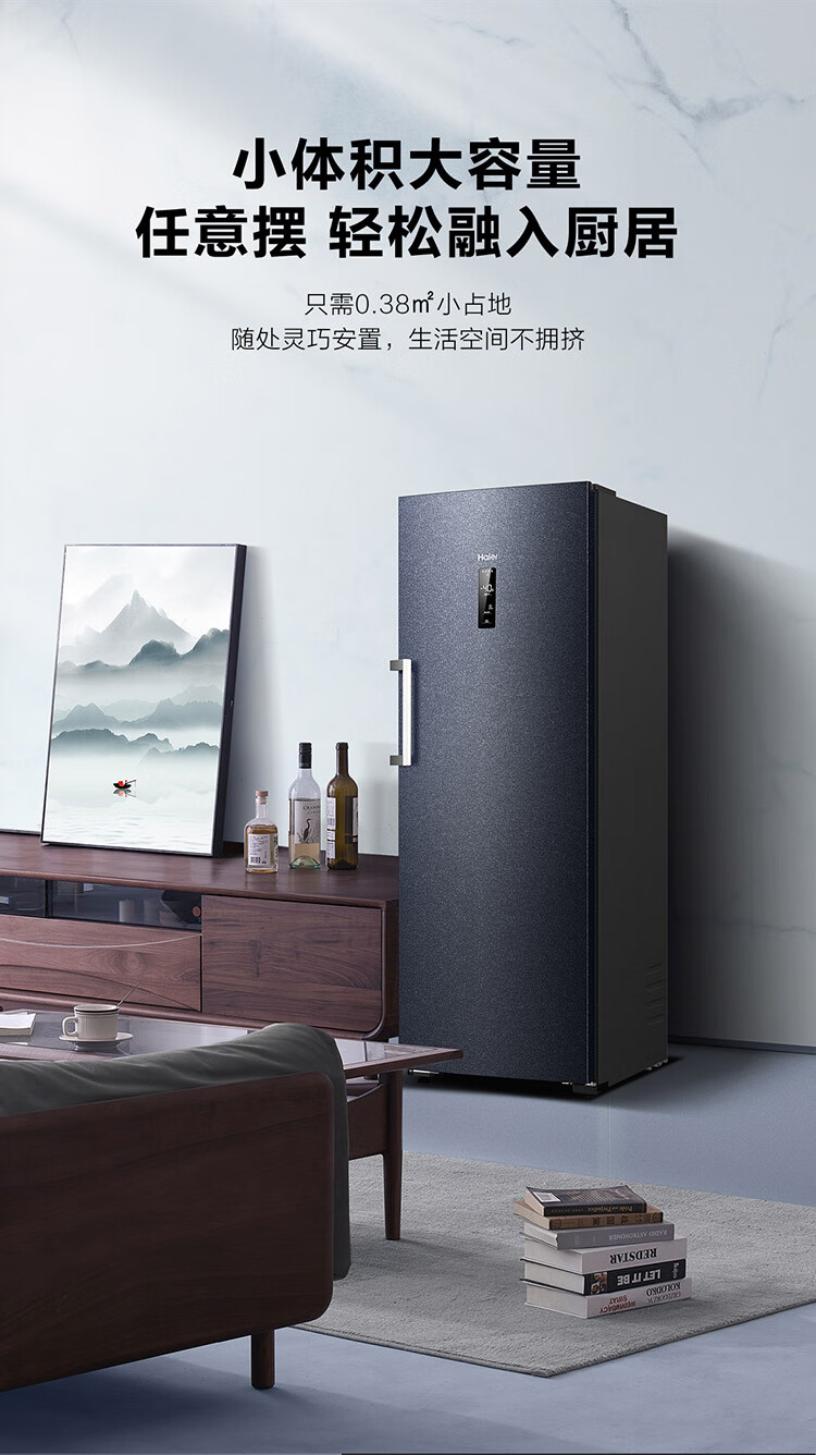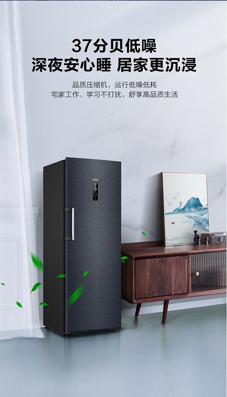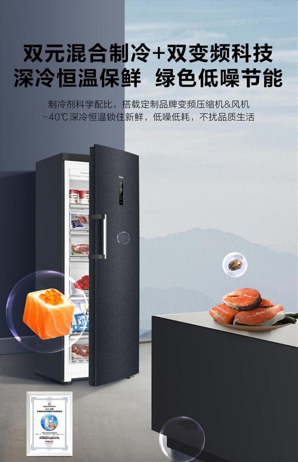 Haier 228-liter vertical freezer frost-free seafood deep-freezing quick-freezing refrigerator-40 household commercial frozen meat cabinet-40 degrees BD-228WGHS1U1 color crystal panel
